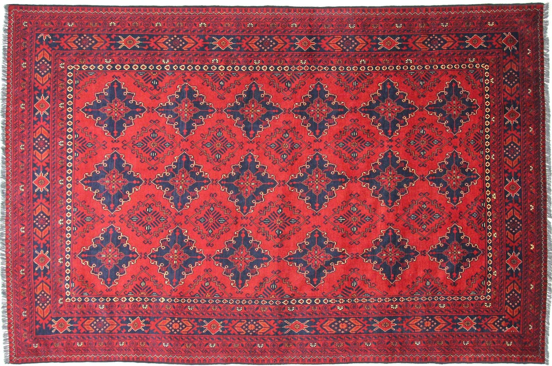 Like the Afghan Kunduz, Khal Mohammadi are hand knotted in the north of Afghanistan. However, they come from the north-western part of the country, which lies on the Turkmen border. Khal Mohammadi rugs are still often knotted today by Turkmen who have emigrated to Afghanistan and live not far from the border with their homeland. Khal Mohammadi rugs are probably among the highest quality Afghan rugs.