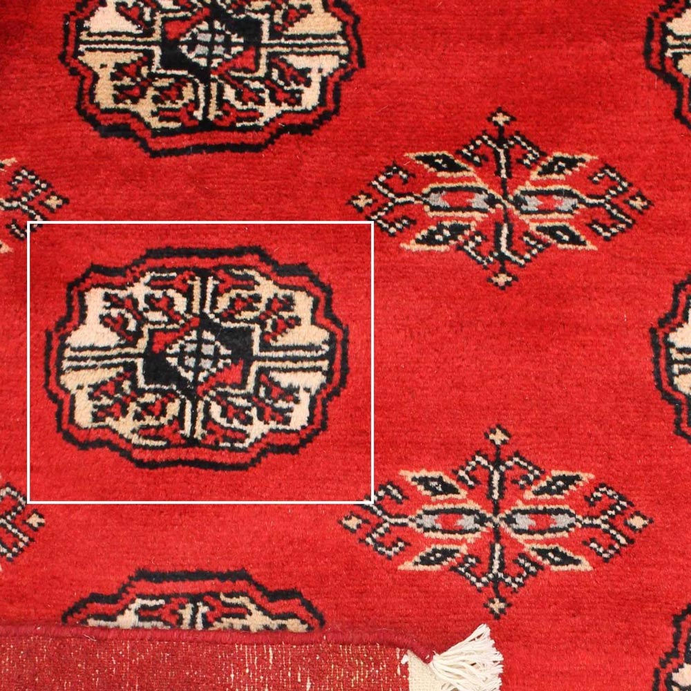 In addition, this carpet from Pakistan has an extremely thin pile compared to the rather thick and robust Bukhara carpets. This requires great skill and a high knotting quality.
