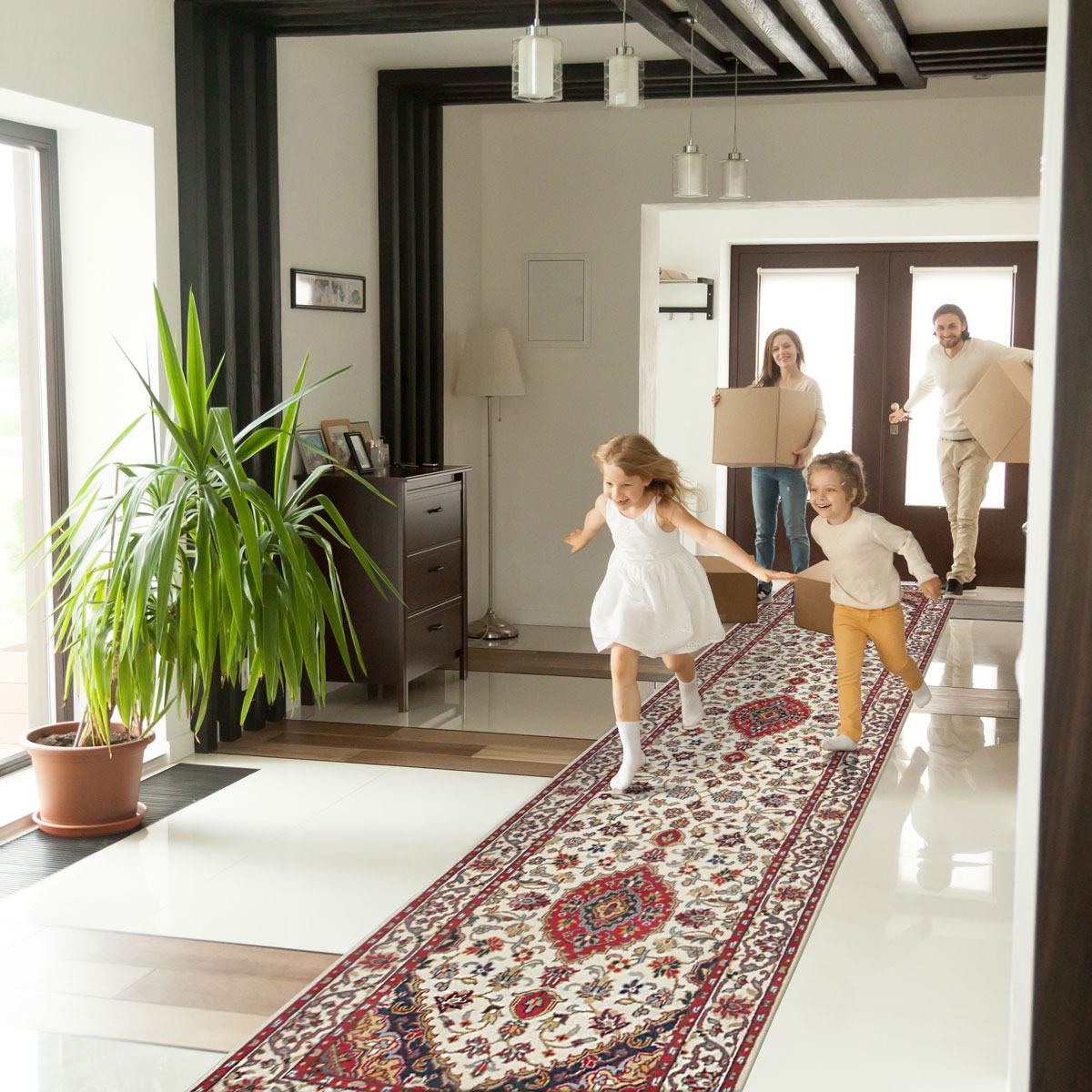 Thanks to the ingenuity of knotters there are oriental rug runners for every need. While these rugs were once woven by nomads and used for everyday purposes such as bed linen, today we mostly use rug runners in transit areas. The hallway is an excellent example of this. Hand-knotted runners have one thing in common: they are highly resilient thanks to their design. For example, kilim runners, flat-woven rugs whose front and back sides are the same, are popular. On the one hand this is due to the type of weaving, on the other hand it enables an even longer lifespan. If one side is dirty, the rug can be flipped over easily. In addition, a kilim is relatively flat and doors can be opened above the rug.