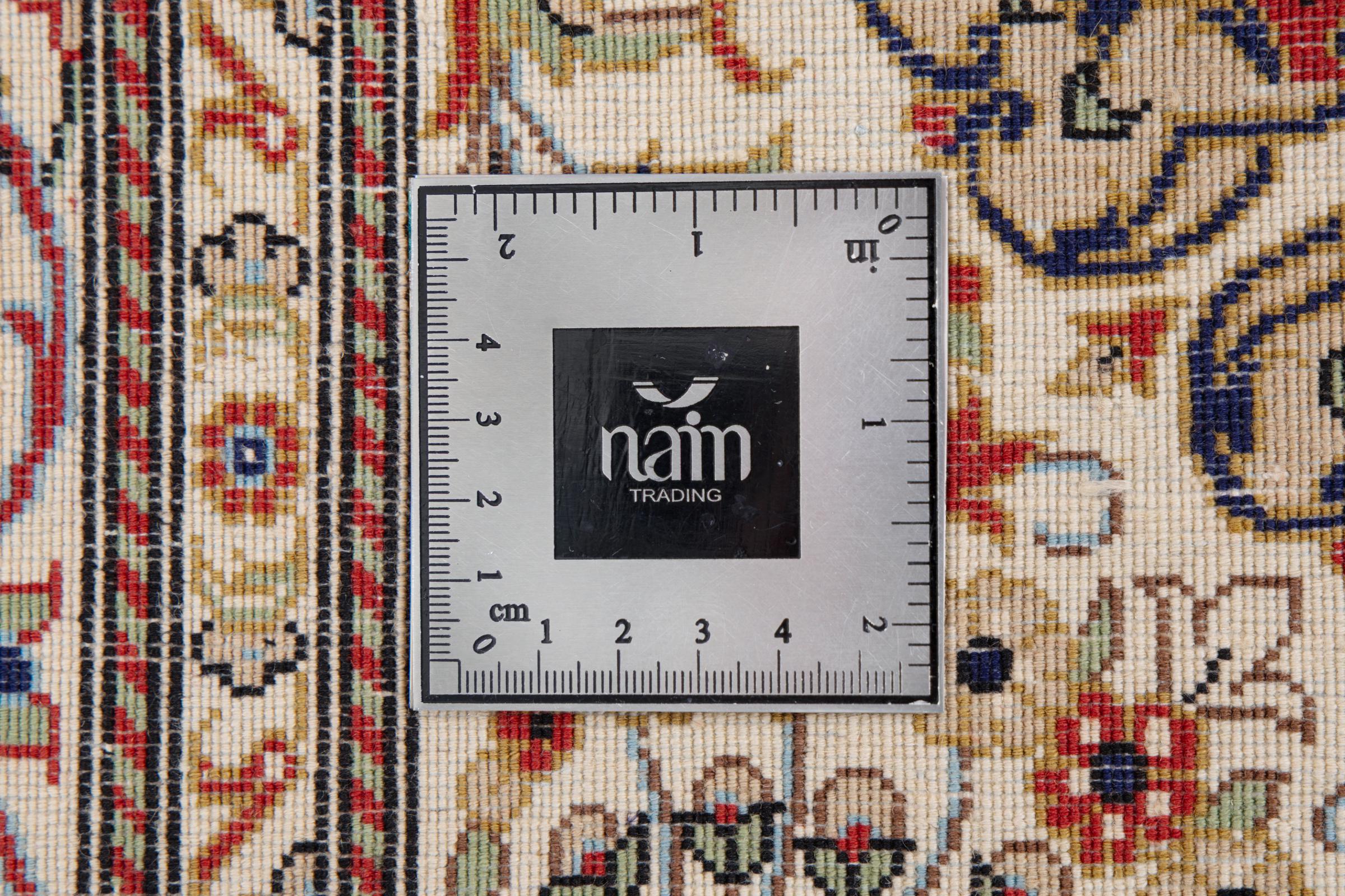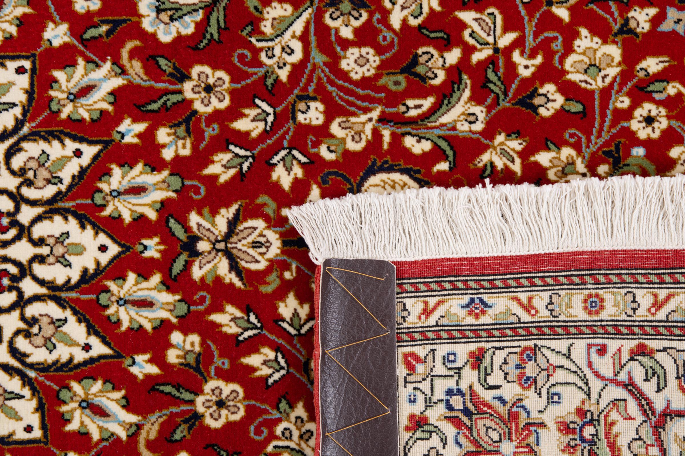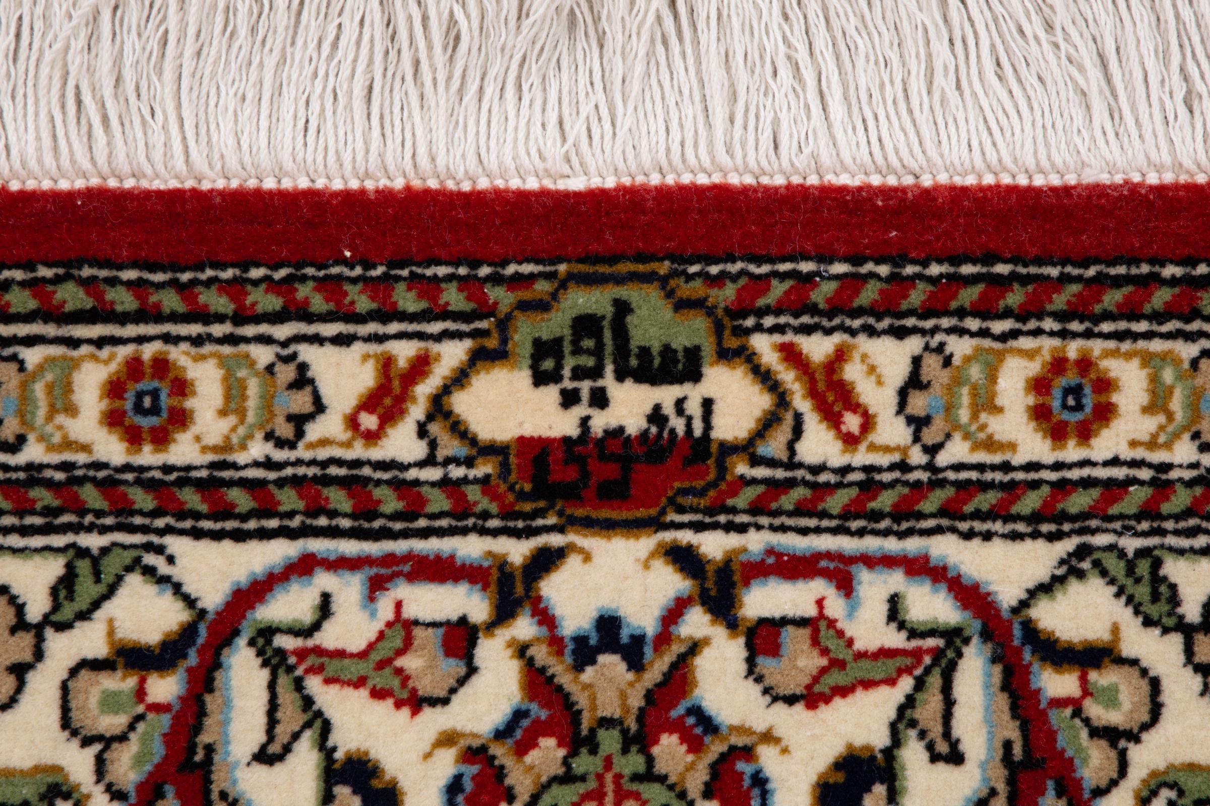 This Qum (also called: Qom) carpet is a piece of outstanding quality. Its wool originates exclusively from the neck section of sheep. It's exceptionally soft and consists of a high degree of natural fat, which makes the carpet even more resilient against day-to-day stress. Additionally, this genuine Persian carpet has been knotted by hand in the holy city Qum. Its fascinating ornaments and beautiful design are going to impress you and your guests.