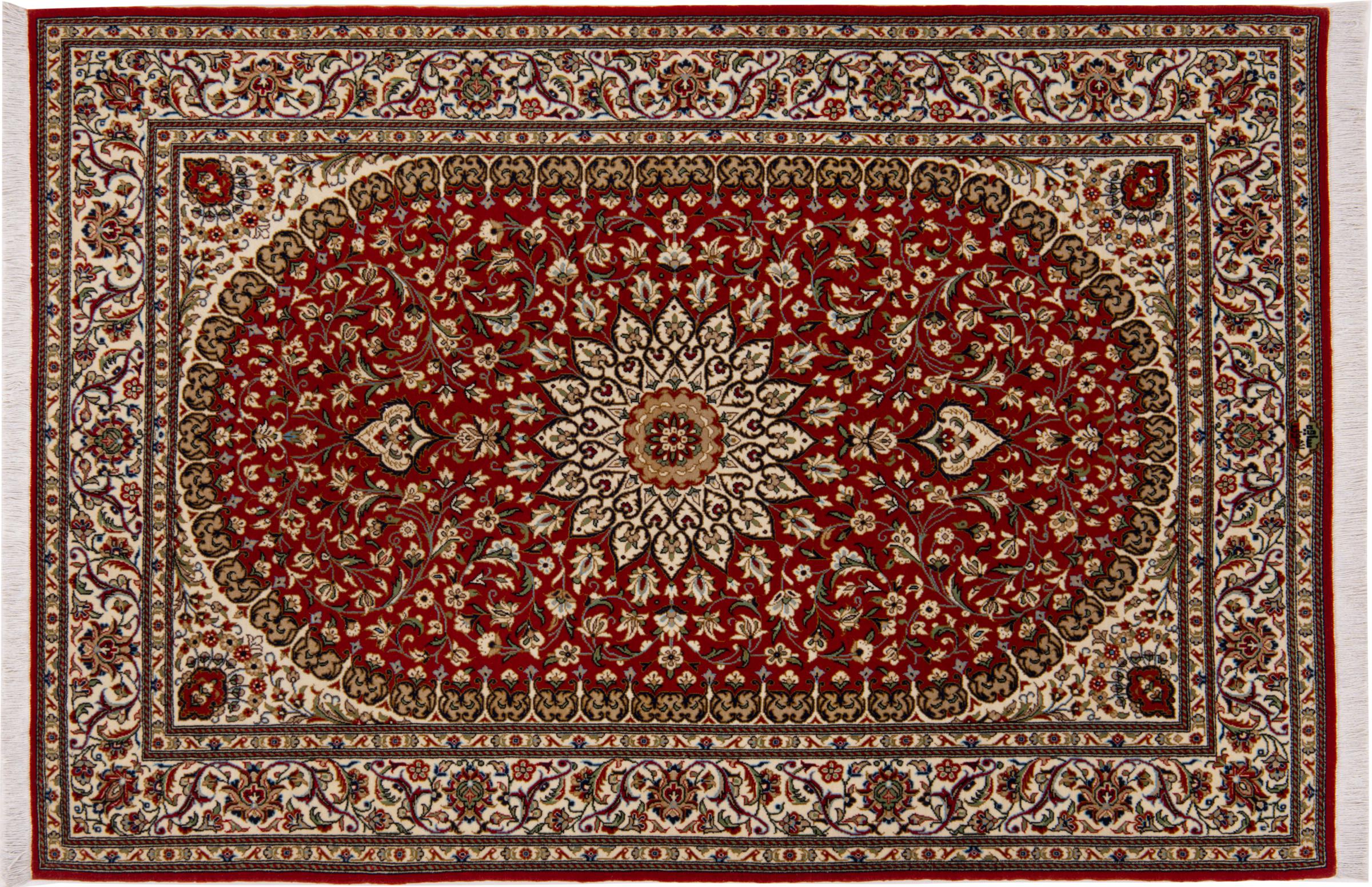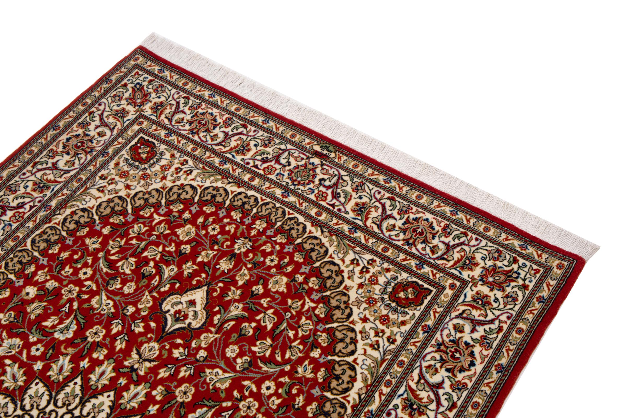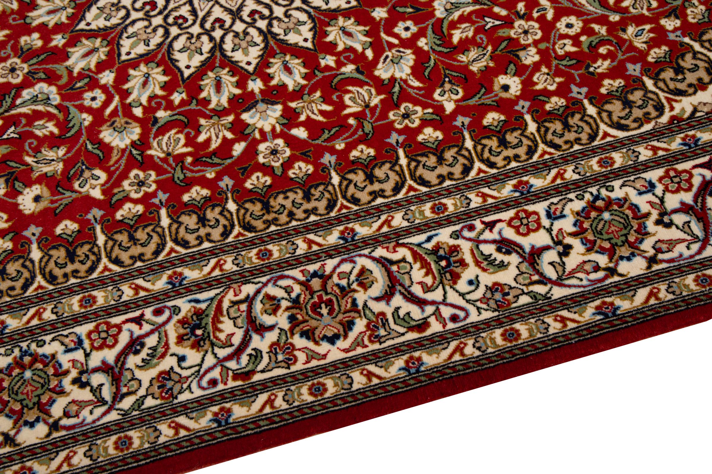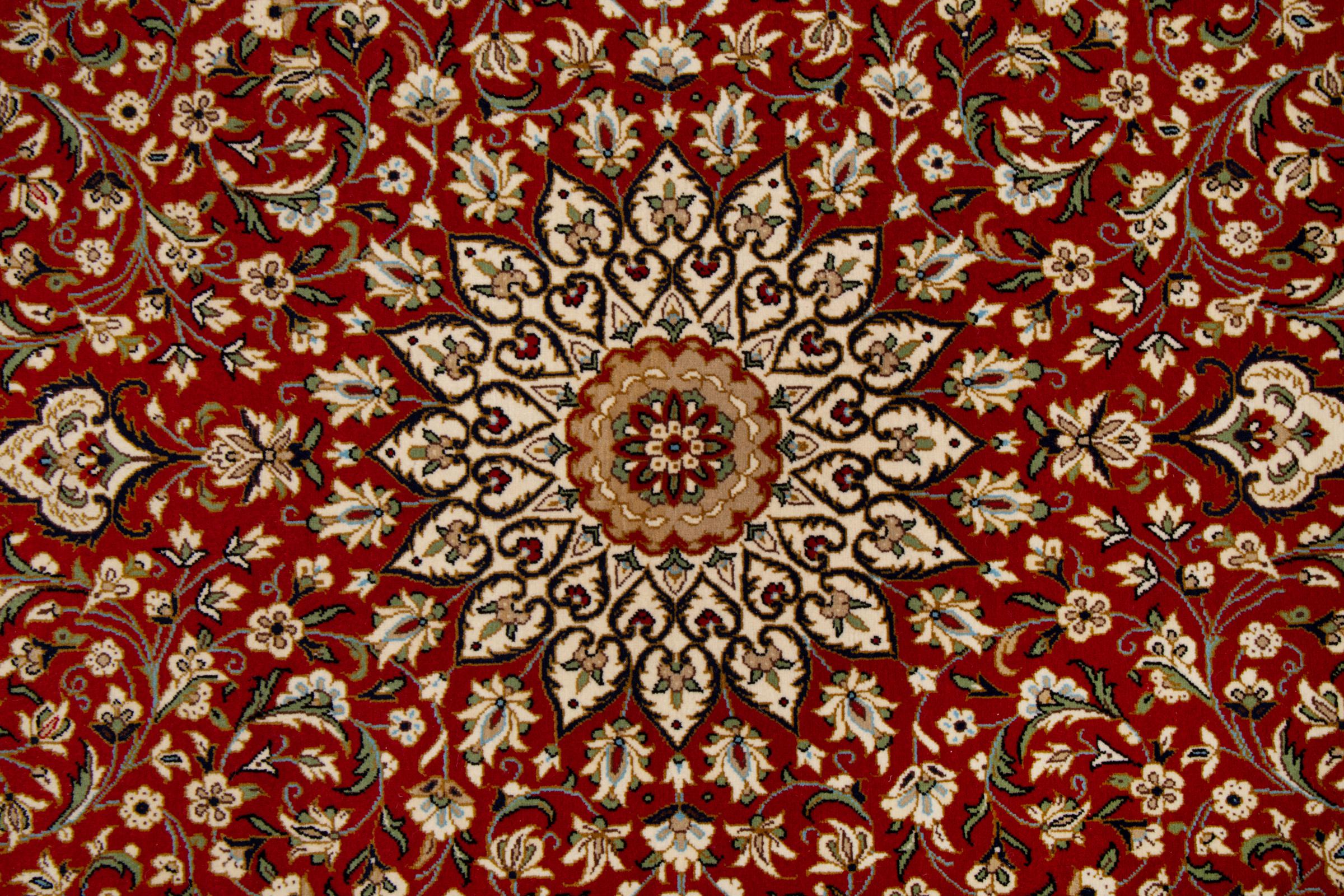 This Qum (also called: Qom) carpet is a piece of outstanding quality. Its wool originates exclusively from the neck section of sheep. It's exceptionally soft and consists of a high degree of natural fat, which makes the carpet even more resilient against day-to-day stress. Additionally, this genuine Persian carpet has been knotted by hand in the holy city Qum. Its fascinating ornaments and beautiful design are going to impress you and your guests.