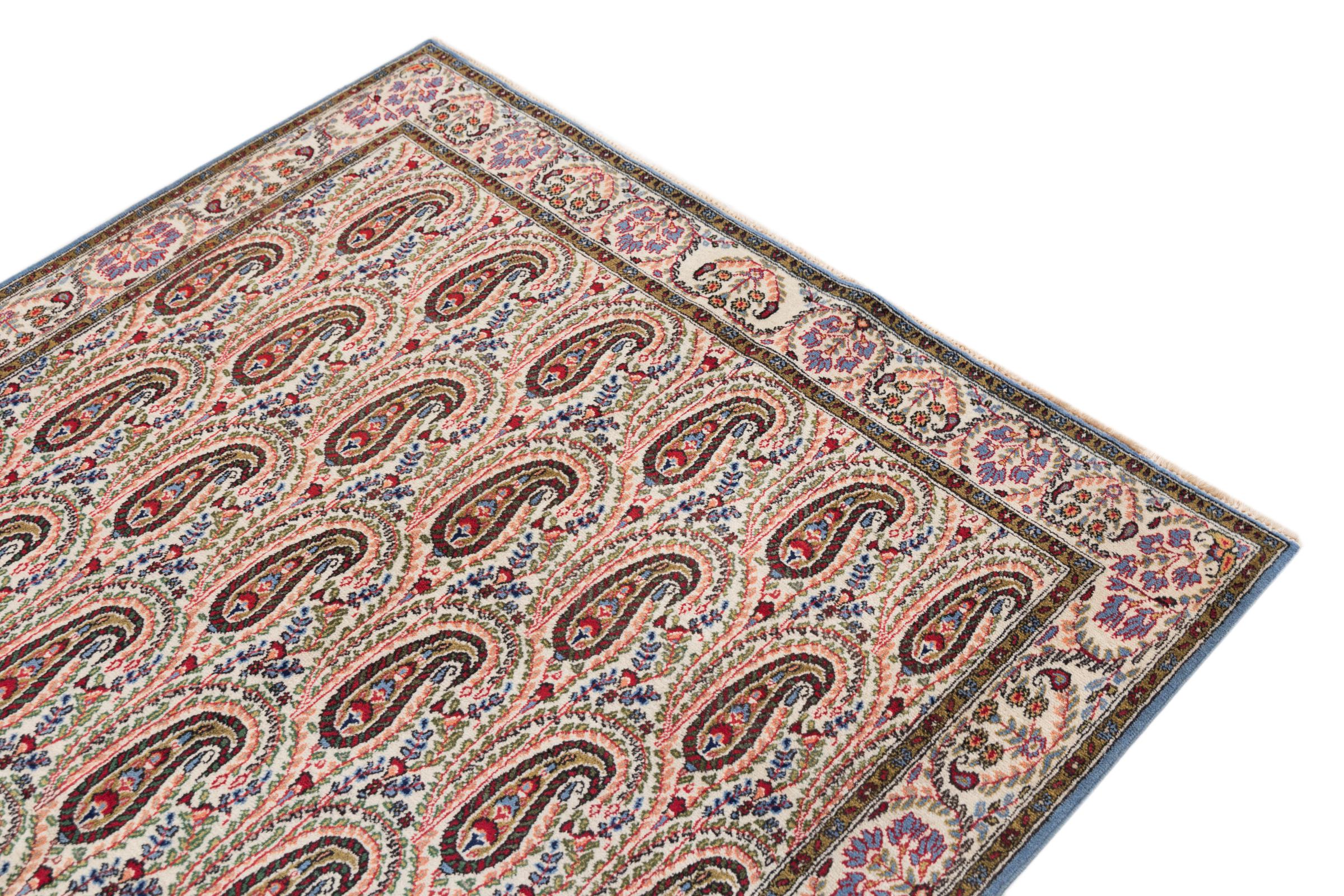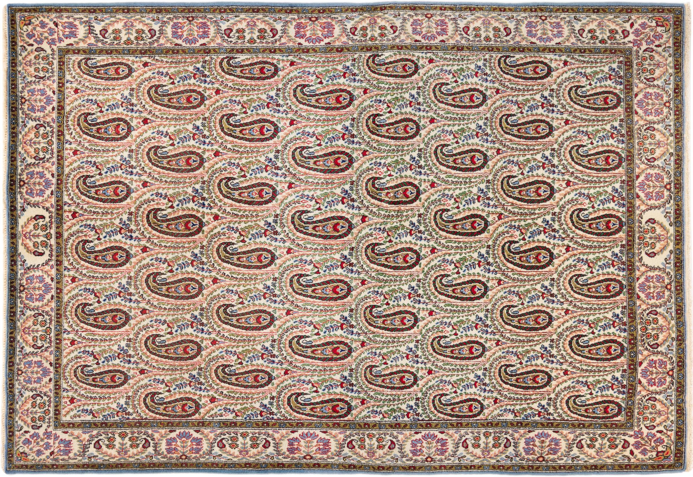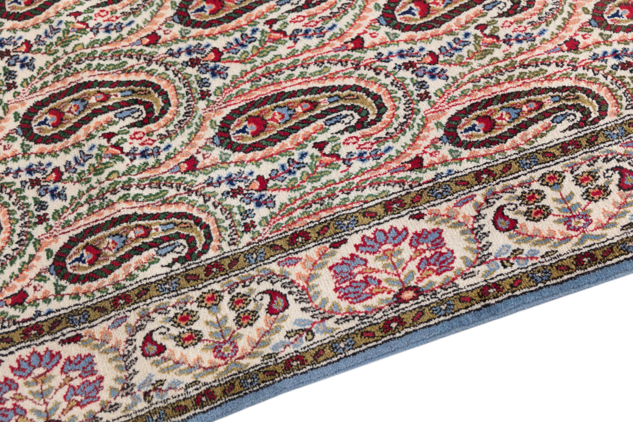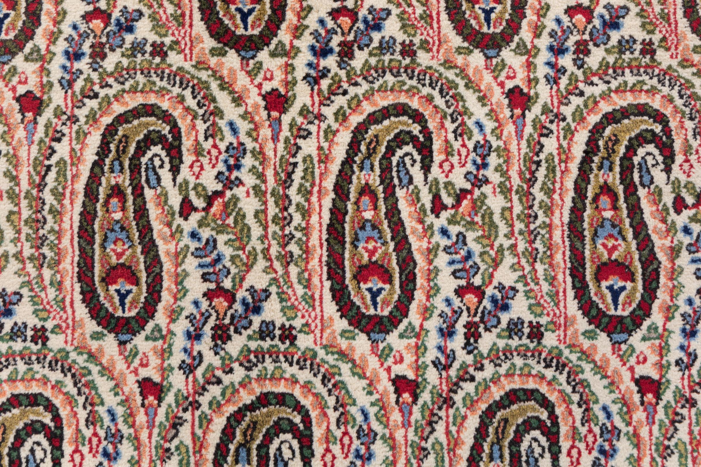This Qum (also called: Qom) carpet is a piece of outstanding quality. Its wool originates exclusively from the neck section of sheep. It's exceptionally soft and consists of a high degree of natural fat, which makes the carpet even more resilient against day-to-day stress. Additionally, this genuine Persian carpet has been knotted by hand in the holy city Qum. Its fascinating ornaments and beautiful design are going to impress you and your guests.