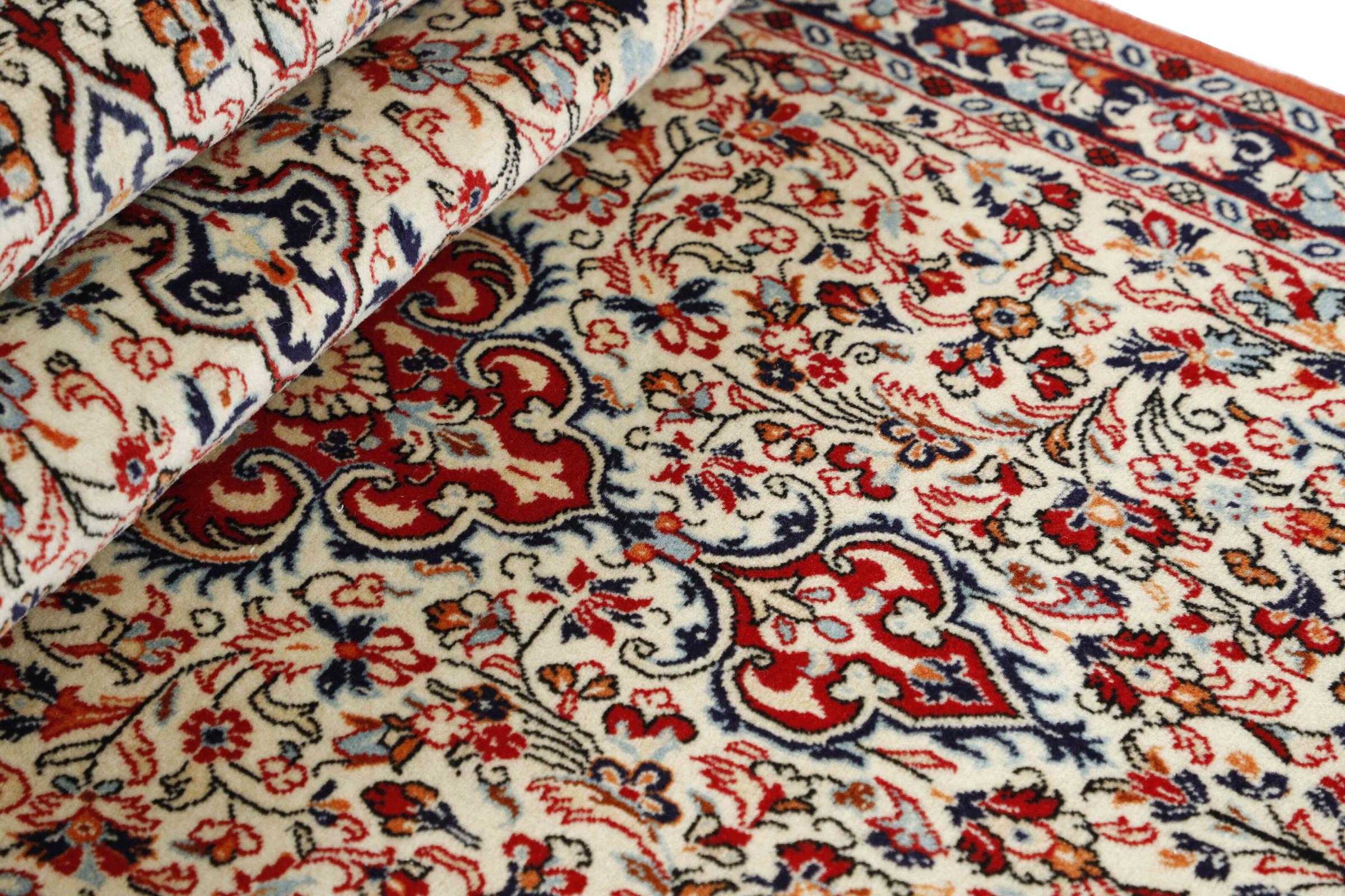 This Qum (also called: Qom) carpet is a piece of outstanding quality. Its wool originates exclusively from the neck section of sheep. It's exceptionally soft and consists of a high degree of natural fat, which makes the carpet even more resilient against day-to-day stress. Additionally, this genuine Persian carpet has been knotted by hand in the holy city Qum. Its fascinating ornaments and beautiful design are going to impress you and your guests.