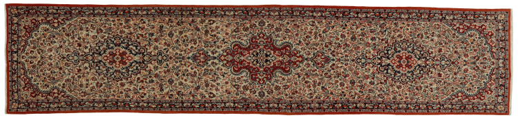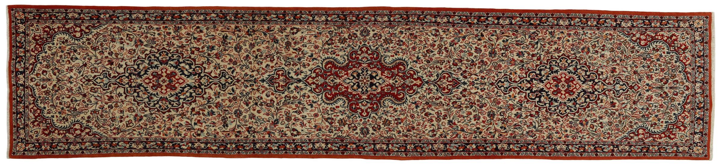 Carpet ID: 251494005278164 Size: 377x76 cm Thickness: ap. 10 mm Knot density: 410 000 - 450 000 / m² Manufacturing: Knotted by hand Pile: Handspun wool Warp: Cotton Origin: Persia Age: New Weight: ap. 10 kg In stock: Unique - Only 1 in stock