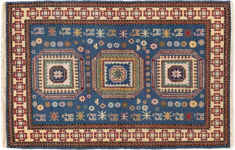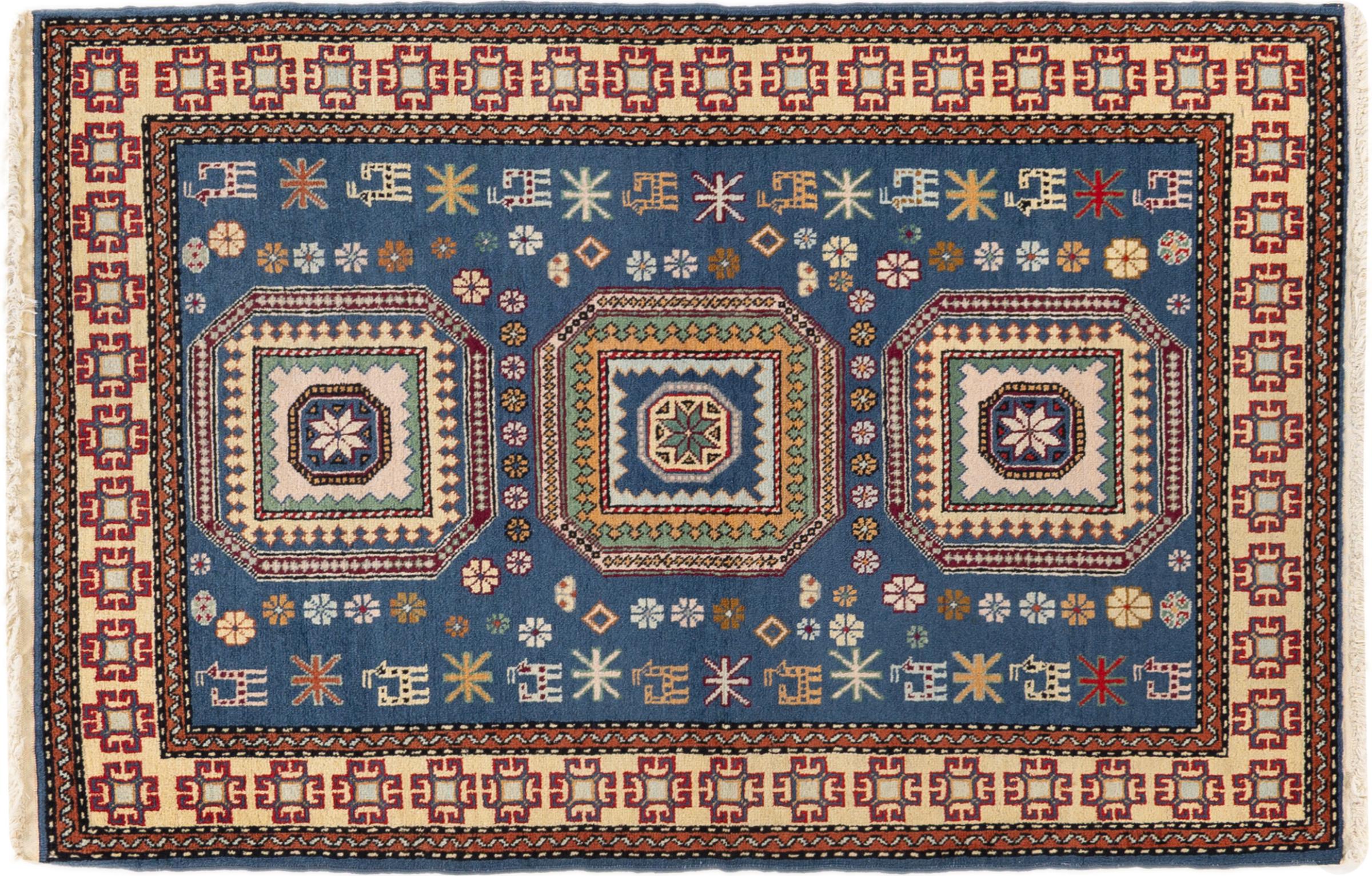 Carpet ID: 295878008865 Size: 117x77 cm Thickness: ap. 12 mm Knot density: 200 000 - 250 000 / m² Manufacturing: Knotted by hand Pile: Handspun wool Warp: Cotton Origin: Afghanistan Age: New Weight: ap. 3 kg Also know as Afghan Shirvan, Kaukasisch In stock: Unique - Only 1 in stock