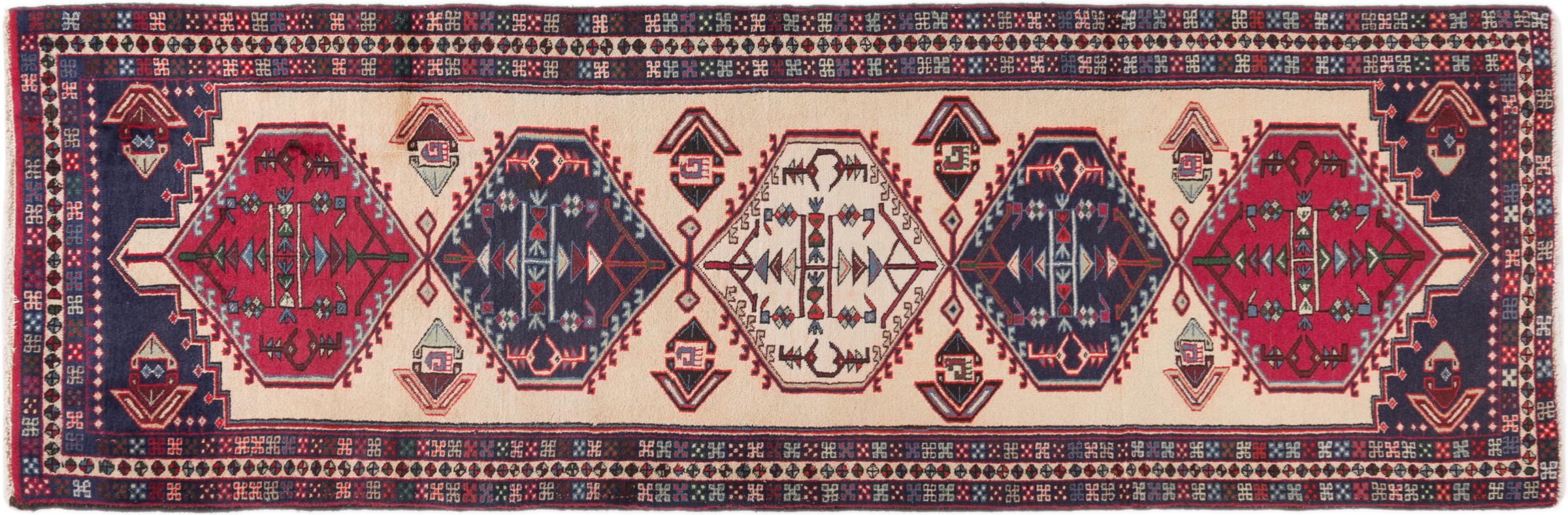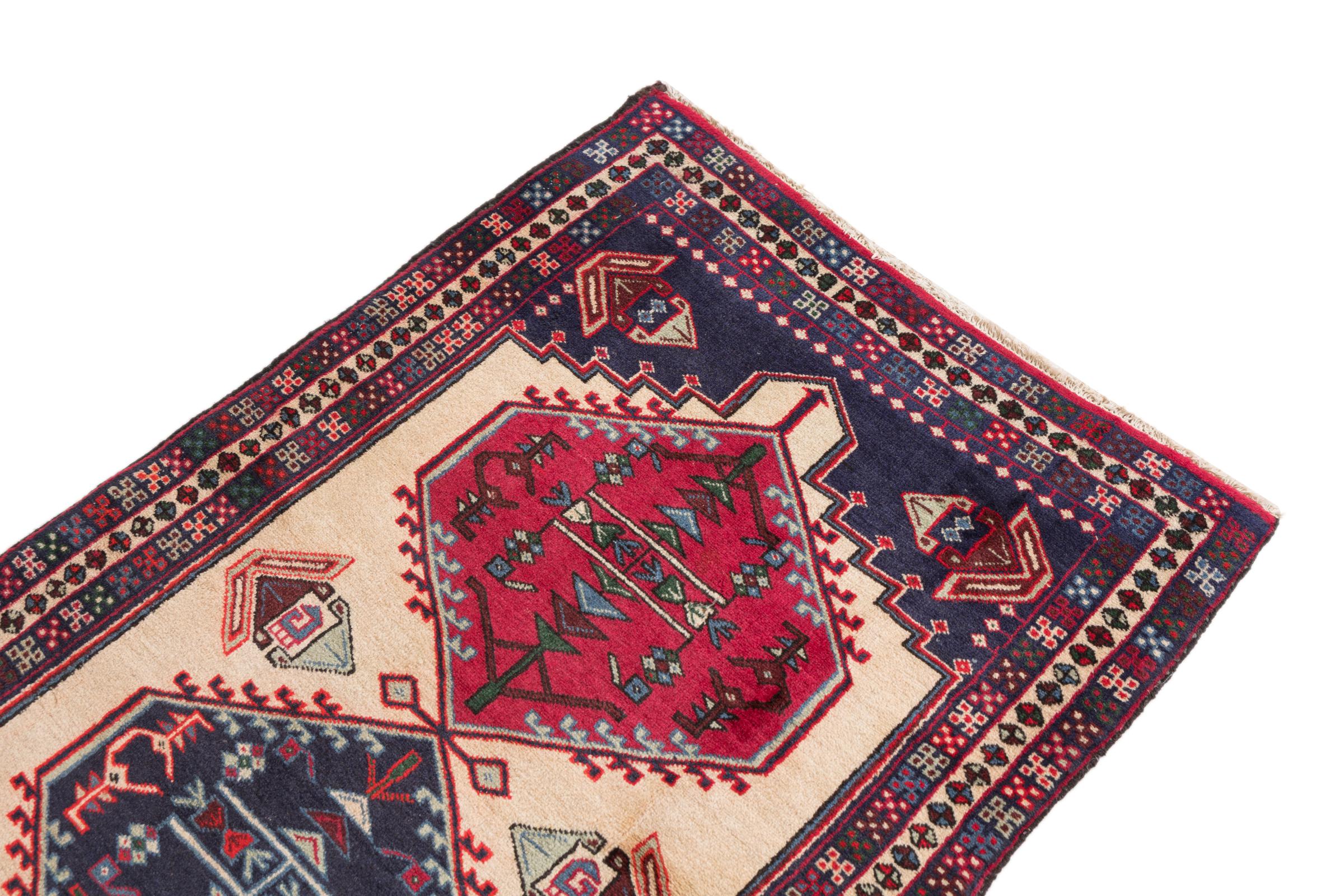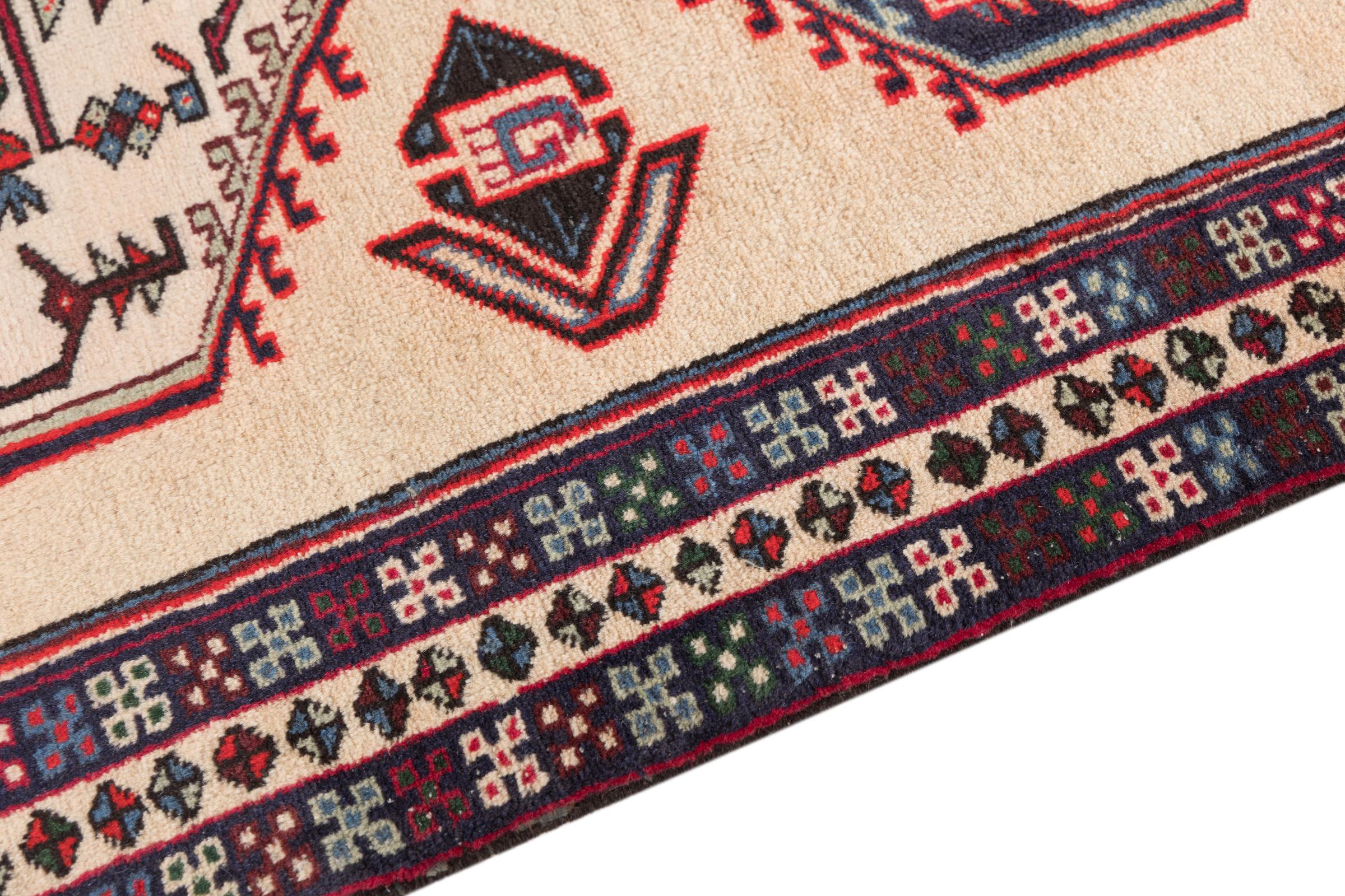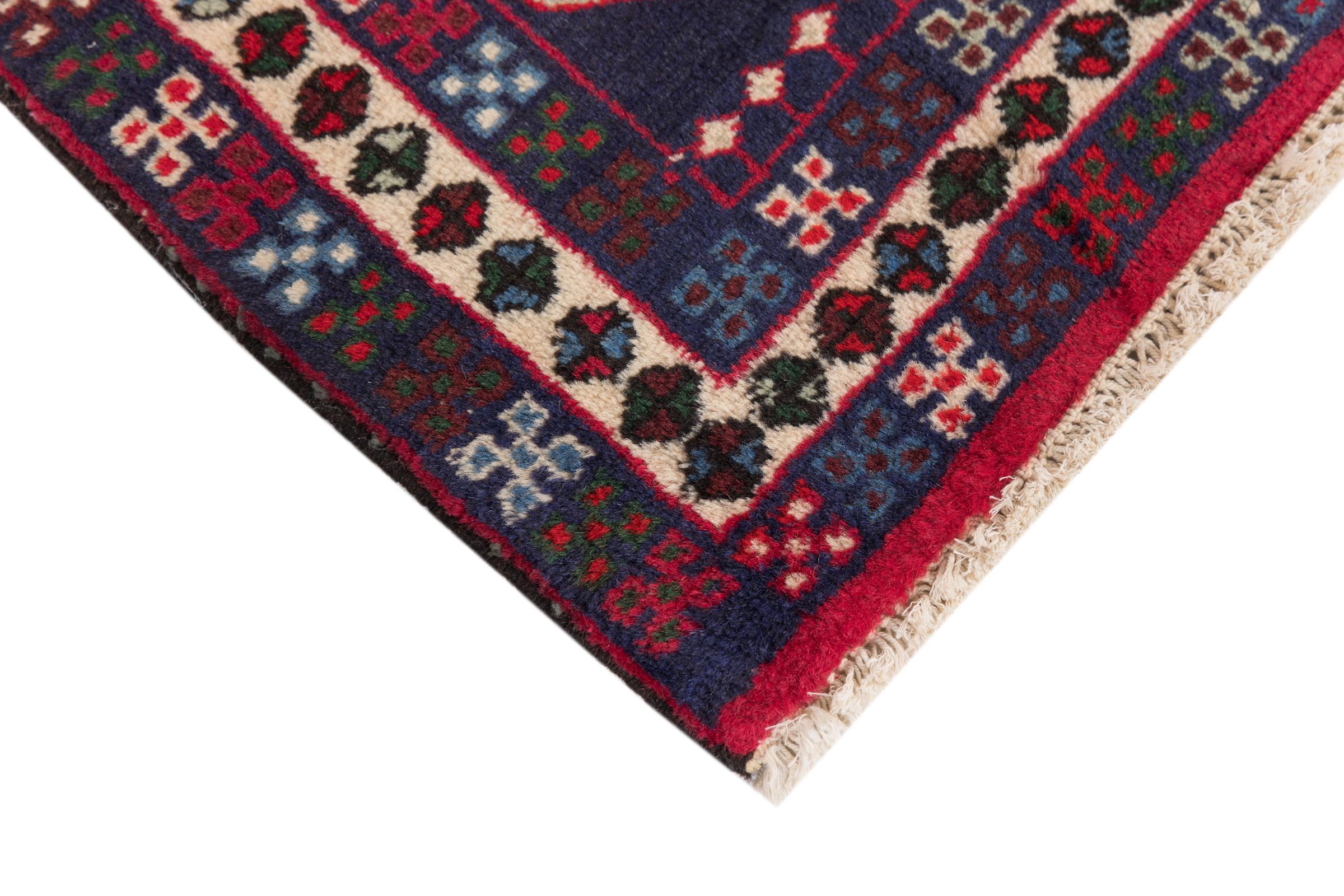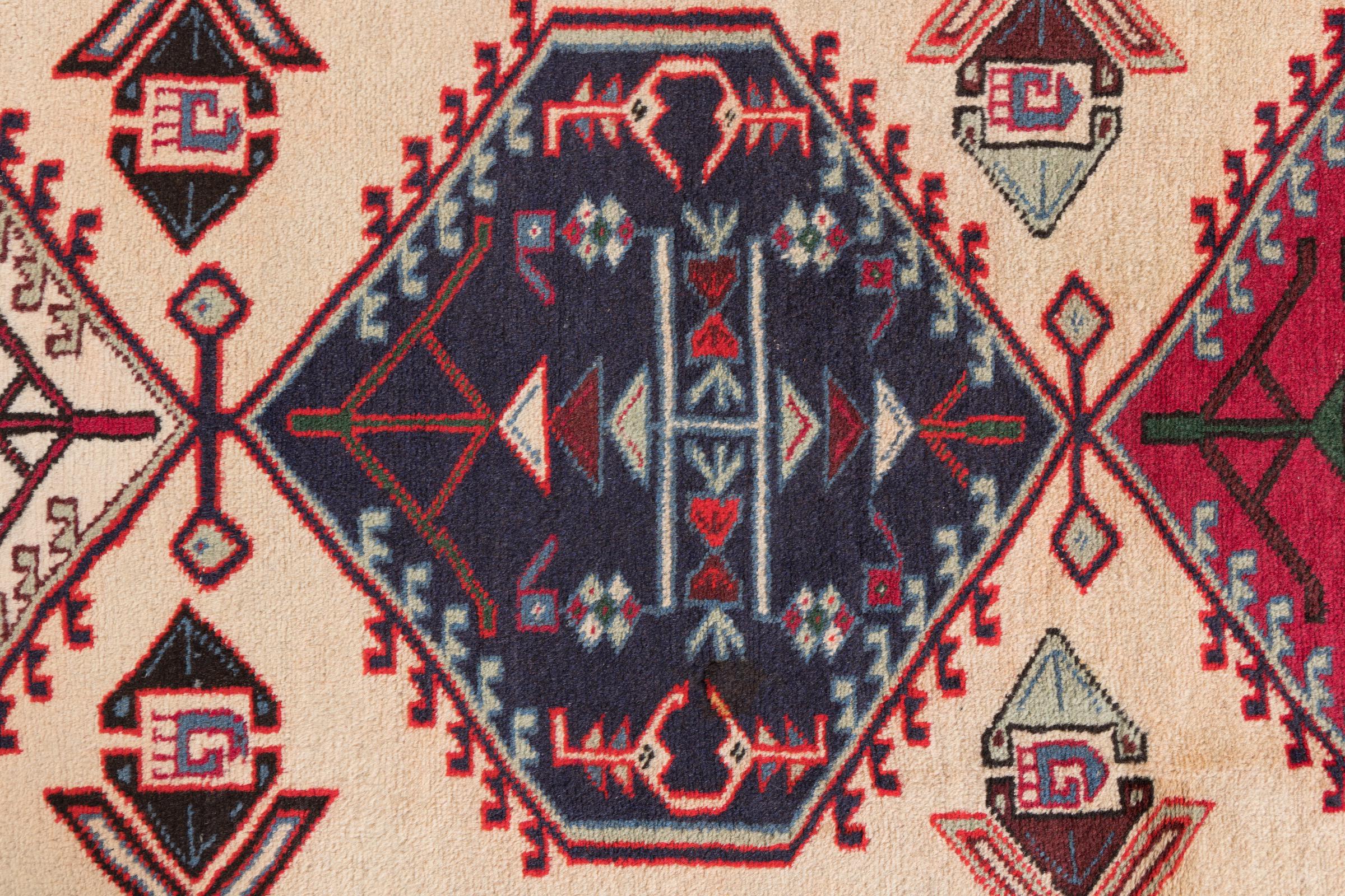 This rug belongs to village and nomadic rugs from Iran, formerly Persia. This type of rug is knotted by hand in smaller towns and villages in old tradition. Even nomads still knot Persian rugs in the open air. The rugs are knotted without a draft and completely from the mind. They are characterized by classical ornaments, which are arranged in straight and geometrical patterns. Thanks to their cultural-traditional origin, these rugs have a unique character that embodies ancient Persia.