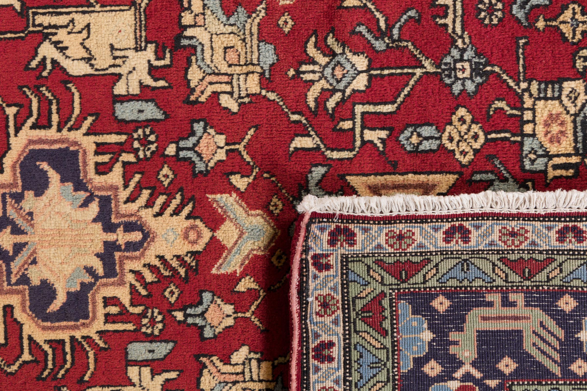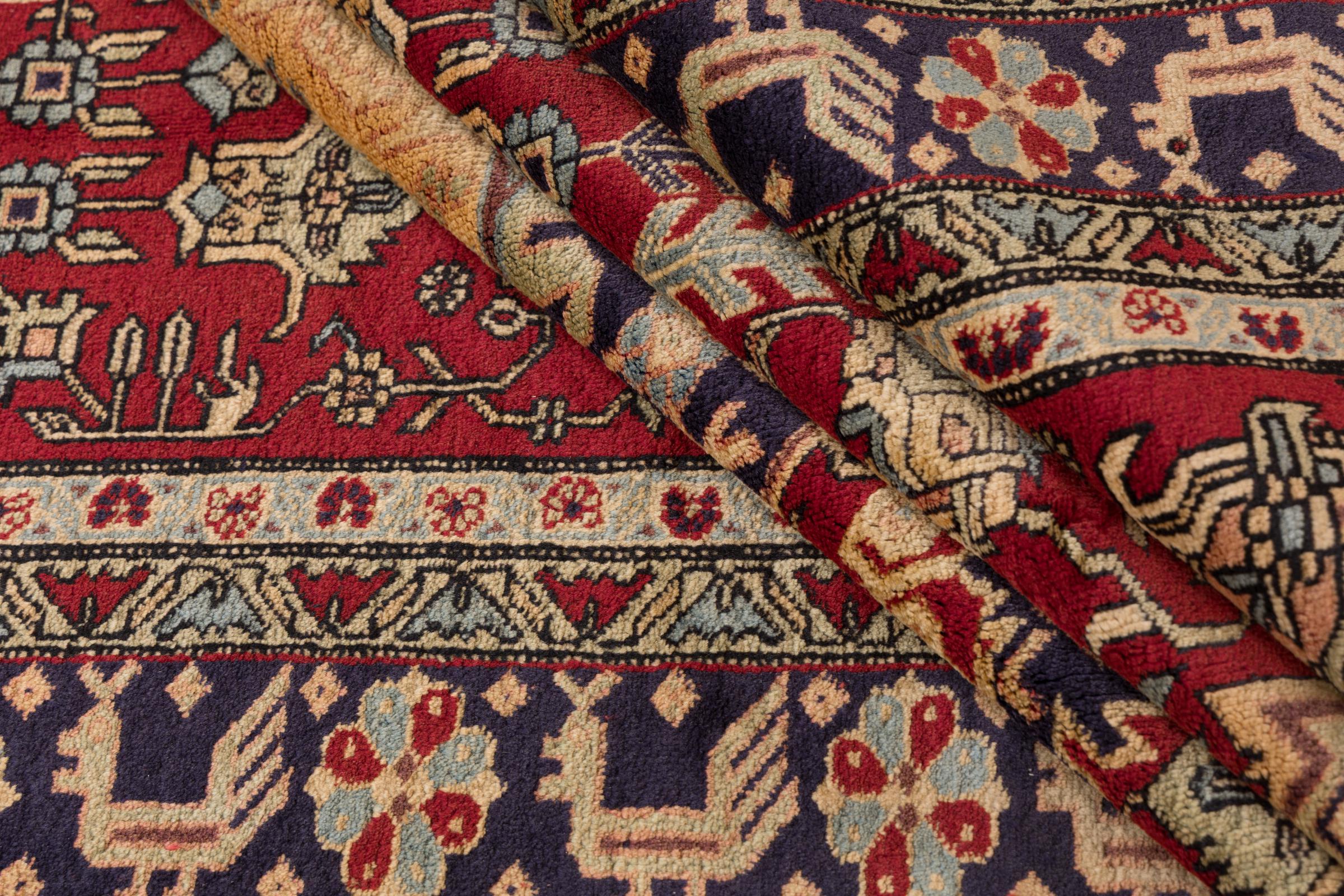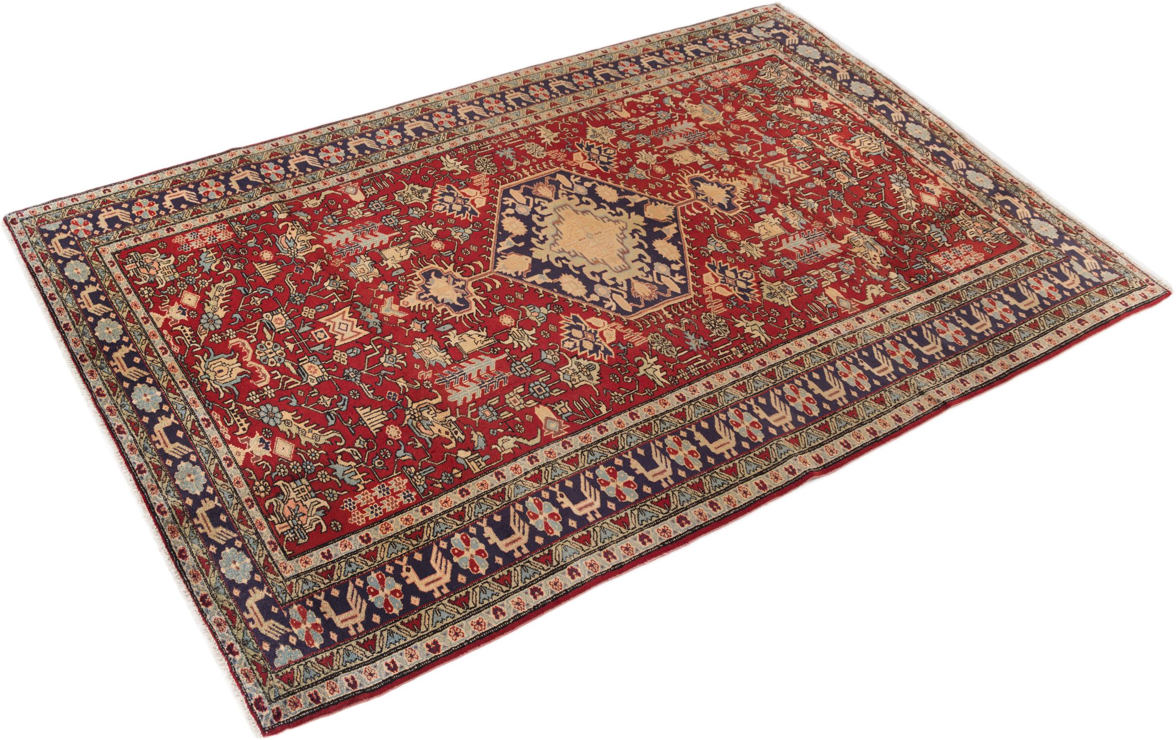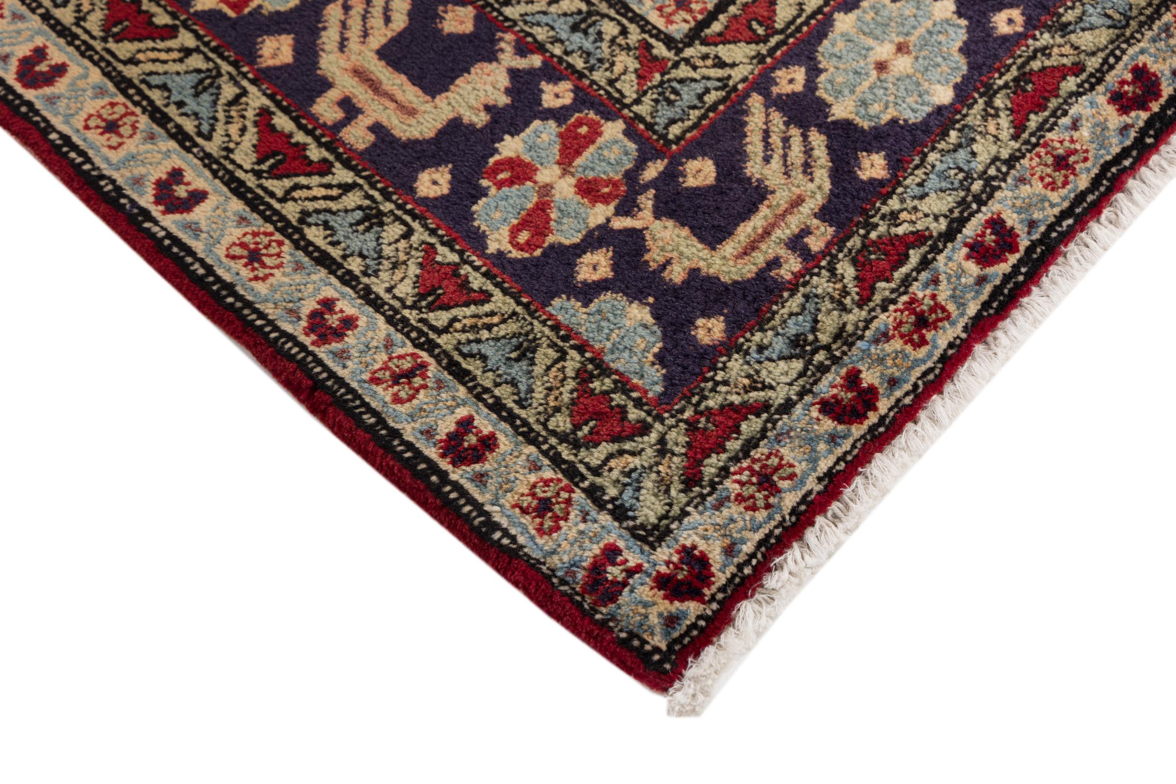 This Heriz carpet is a beautiful example of Persian carpet craftsmanship. Its rustic design is a testament to its durability. It was hand-knotted in the city of Heriz, which is located near Tabriz in north-west Iran. Anyone looking for a Persian rug that will give pleasure for a long time and is highly modern will love this Heriz. The ornaments of Heriz rugs are extremely popular today and are seen as very modern. You will never give up a rug like this again.