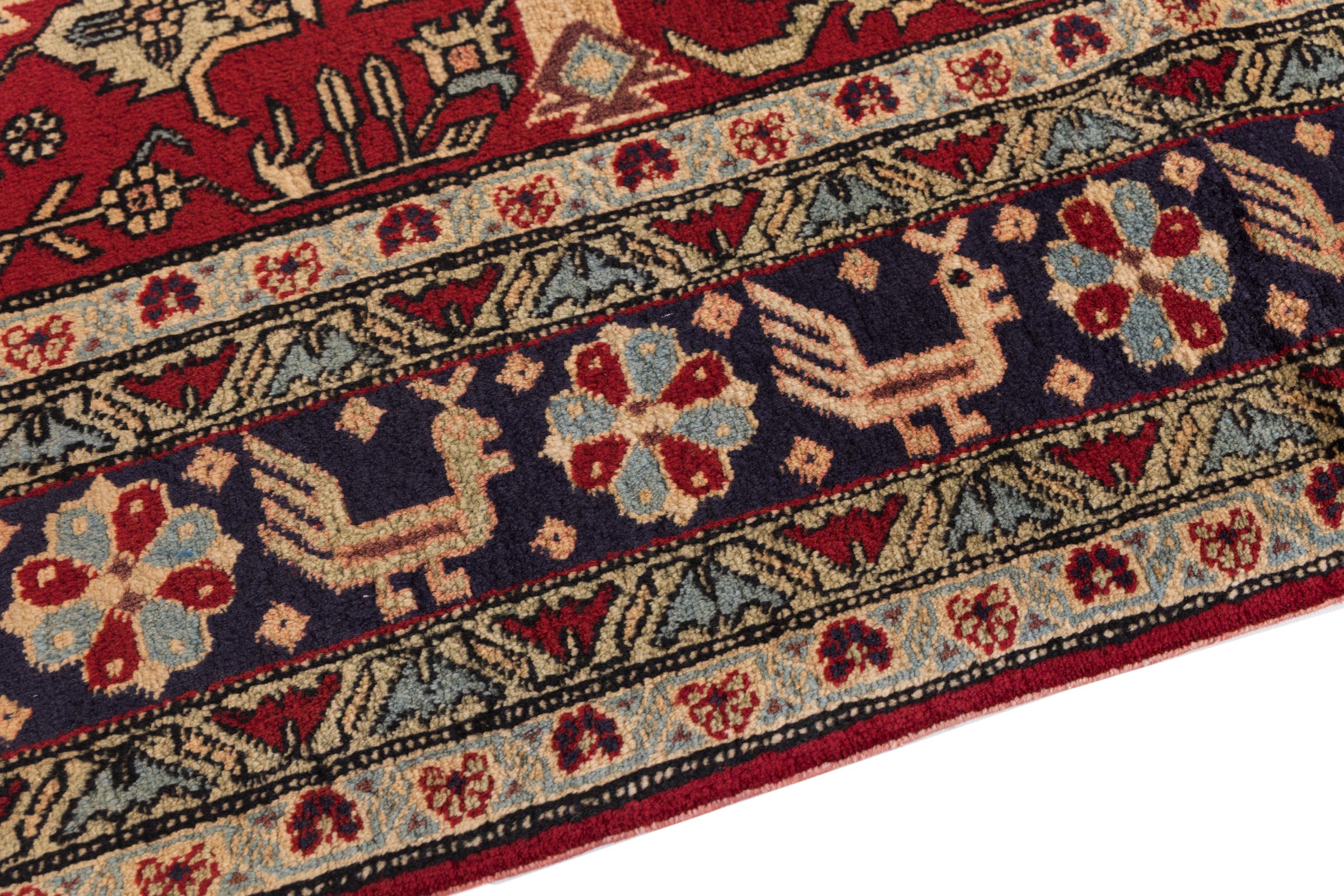 This rug belongs to village and nomadic rugs from Iran, formerly Persia. This type of rug is knotted by hand in smaller towns and villages in old tradition. Even nomads still knot Persian rugs in the open air. The rugs are knotted without a draft and completely from the mind. They are characterized by classical ornaments, which are arranged in straight and geometrical patterns. Thanks to their cultural-traditional origin, these rugs have a unique character that embodies ancient Persia.