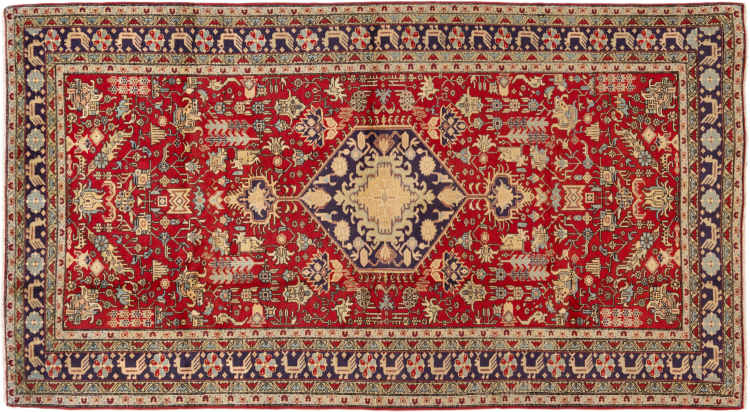 This rug is made of hand spun sheep wool of the highest quality. Especially in Iran (former Persia), Afghanistan and Pakistan wool is still spun by hand before the actual knotting of the rug begins. Wool has proven itself as a natural and extremely hard-wearing material over centuries. Among other things, it has dirt-repellent and heat-insulating properties. At the same time, wool is incomparably soft and has a natural shine.