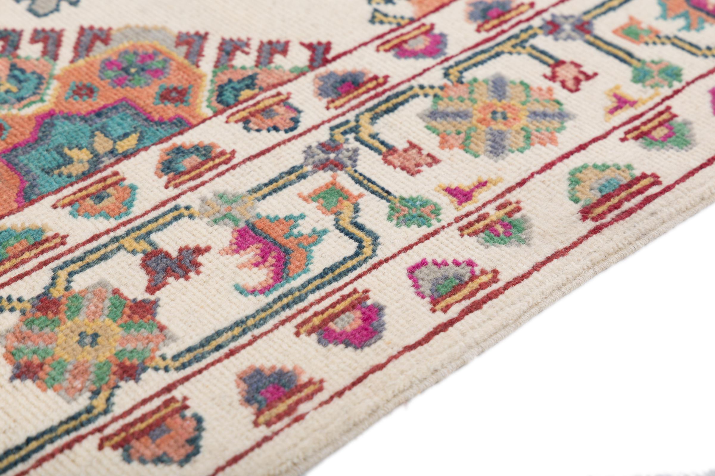 This rug is made of hand spun sheep wool of the highest quality. Especially in Iran (former Persia), Afghanistan and Pakistan wool is still spun by hand before the actual knotting of the rug begins. Wool has proven itself as a natural and extremely hard-wearing material over centuries. Among other things, it has dirt-repellent and heat-insulating properties. At the same time, wool is incomparably soft and has a natural shine.