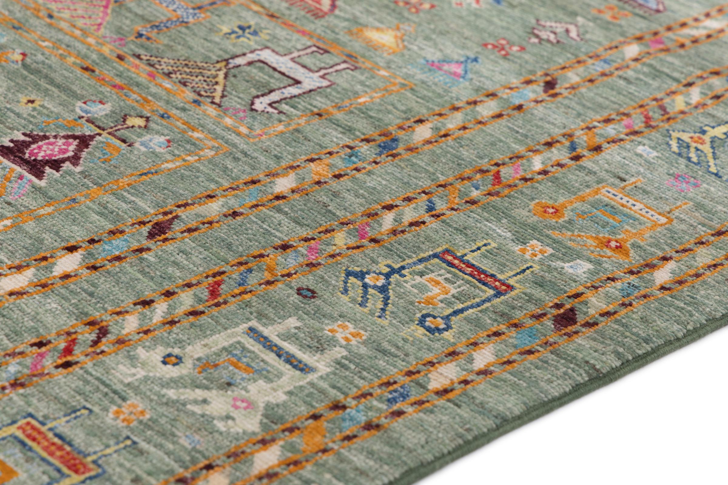 This rug is made of hand spun sheep wool of the highest quality. Especially in Iran (former Persia), Afghanistan and Pakistan wool is still spun by hand before the actual knotting of the rug begins. Wool has proven itself as a natural and extremely hard-wearing material over centuries. Among other things, it has dirt-repellent and heat-insulating properties. At the same time, wool is incomparably soft and has a natural shine.