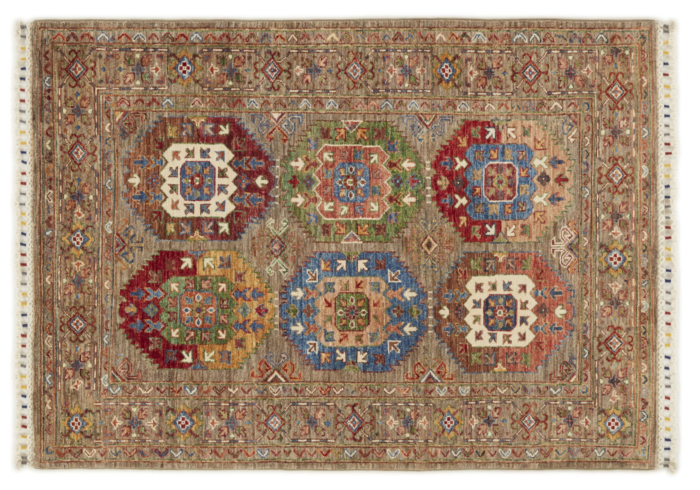 Carpet ID: 291860001594866 Size: 143x104 cm Thickness: ap. 5 mm Knot density: 160 000 - 200 000 / m² Manufacturing: Knotted by hand Pile: Handspun wool Warp: Cotton Origin: Afghanistan Age: New Weight: ap. 5 kg In stock: Unique - Only 1 in stock