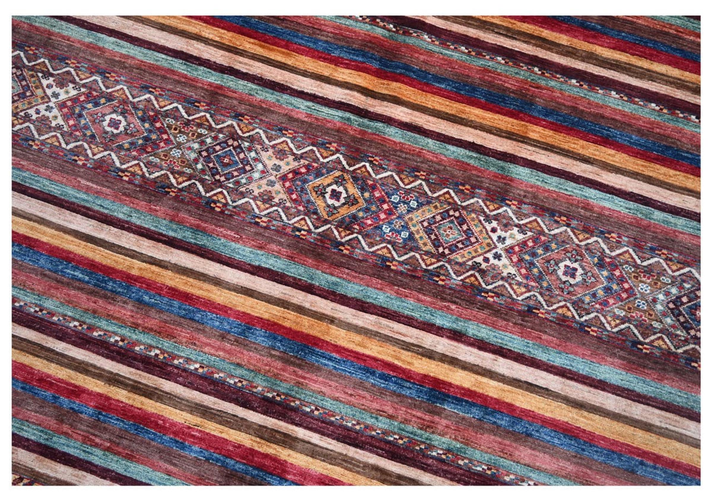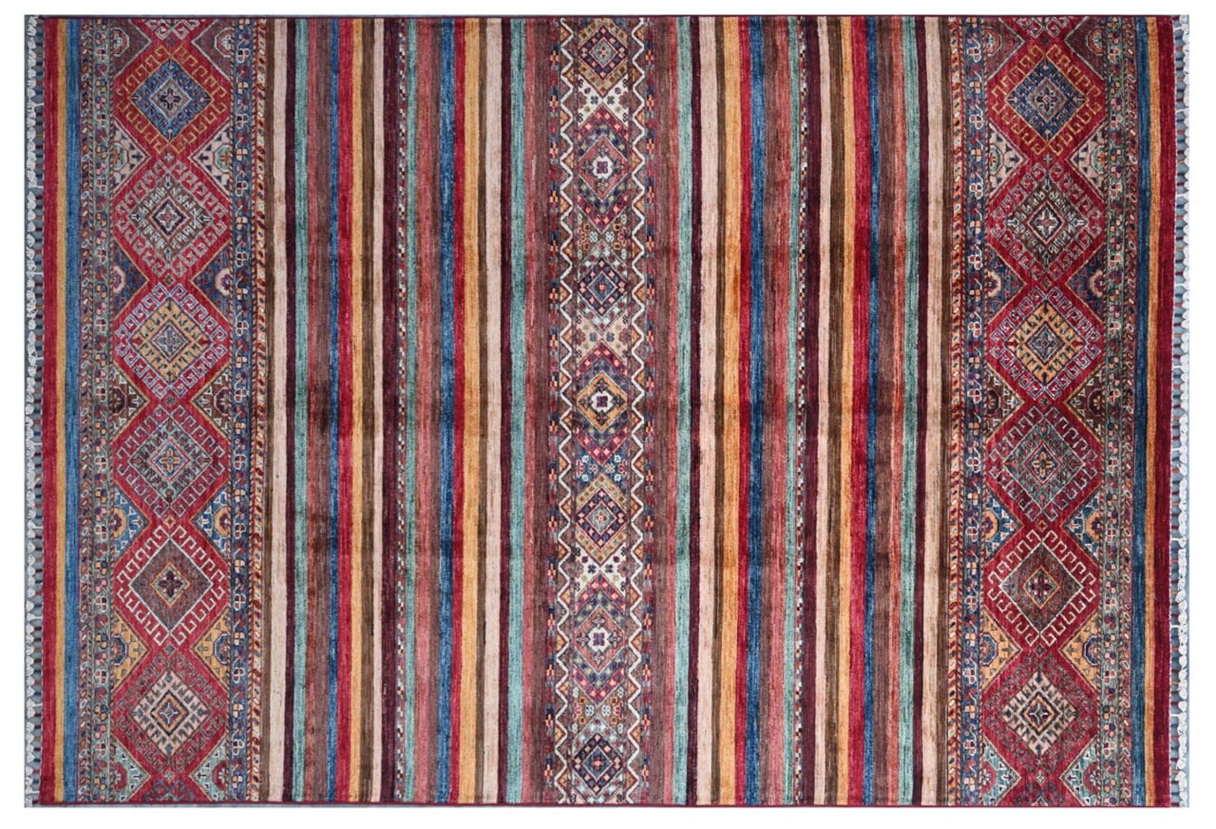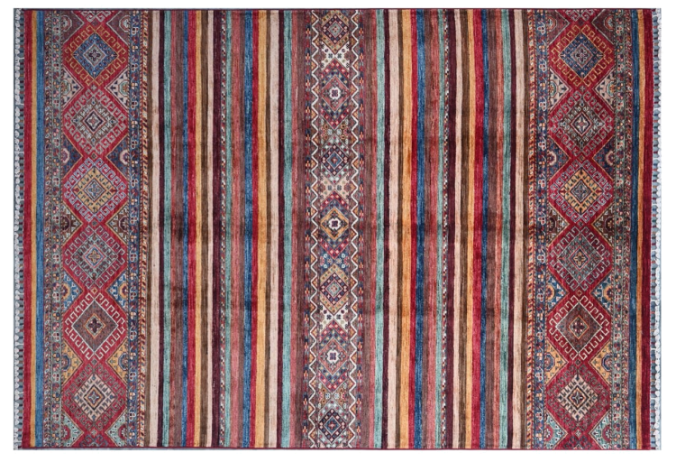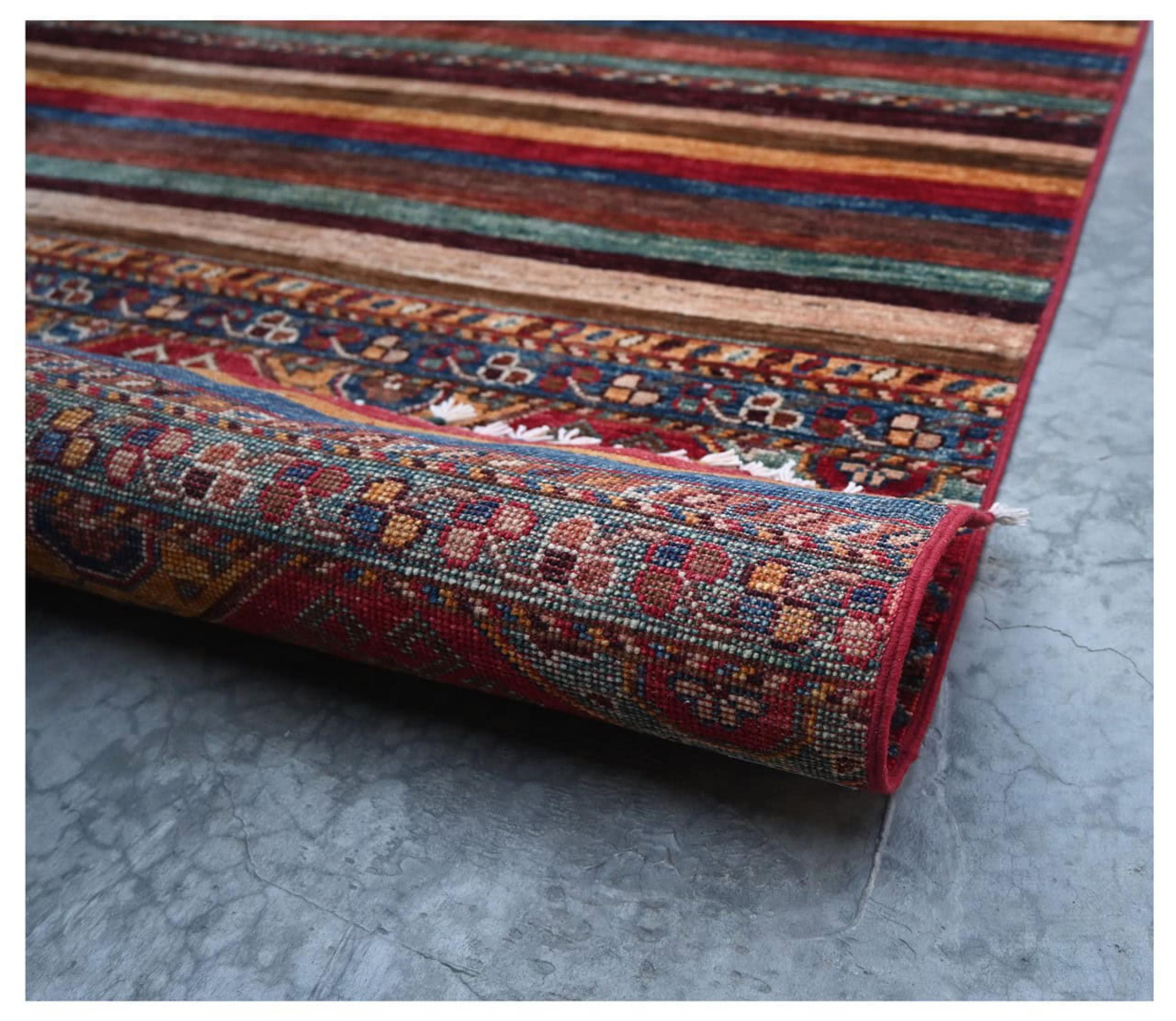 This Arijana Shaal carpet was knotted by hand in Pakistan. It promises a very high quality and thus offers long lasting pleasure. The pattern in stripes is varied and exciting. It was inspired by the well-known Moharamati design. If you find monochrome carpets too boring, you will certainly be delighted with this Arijana Shaal.