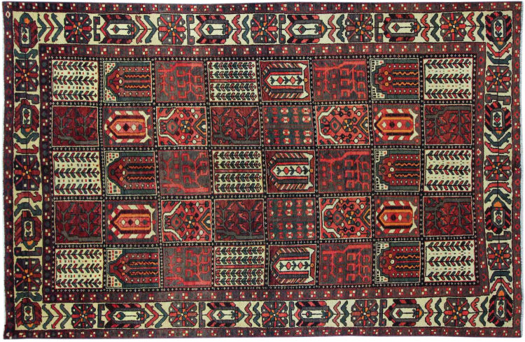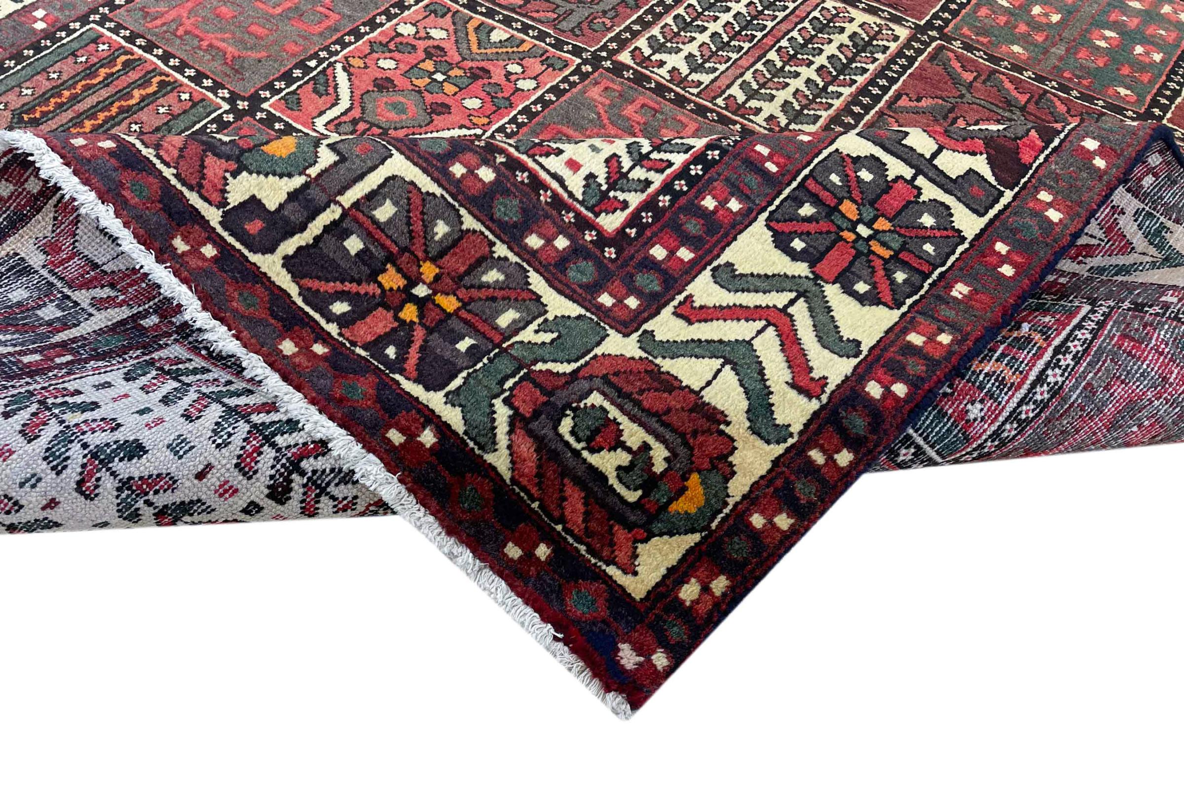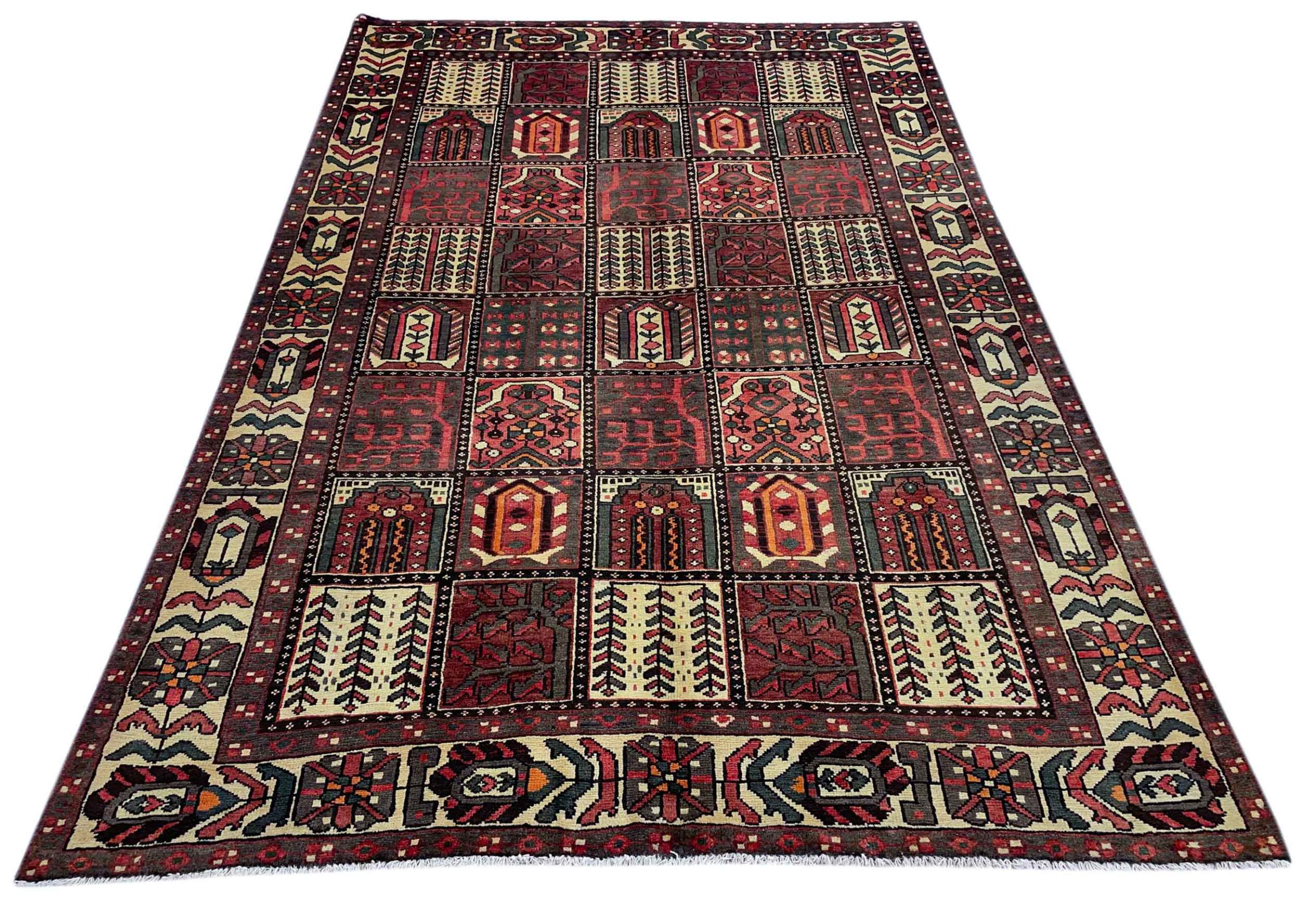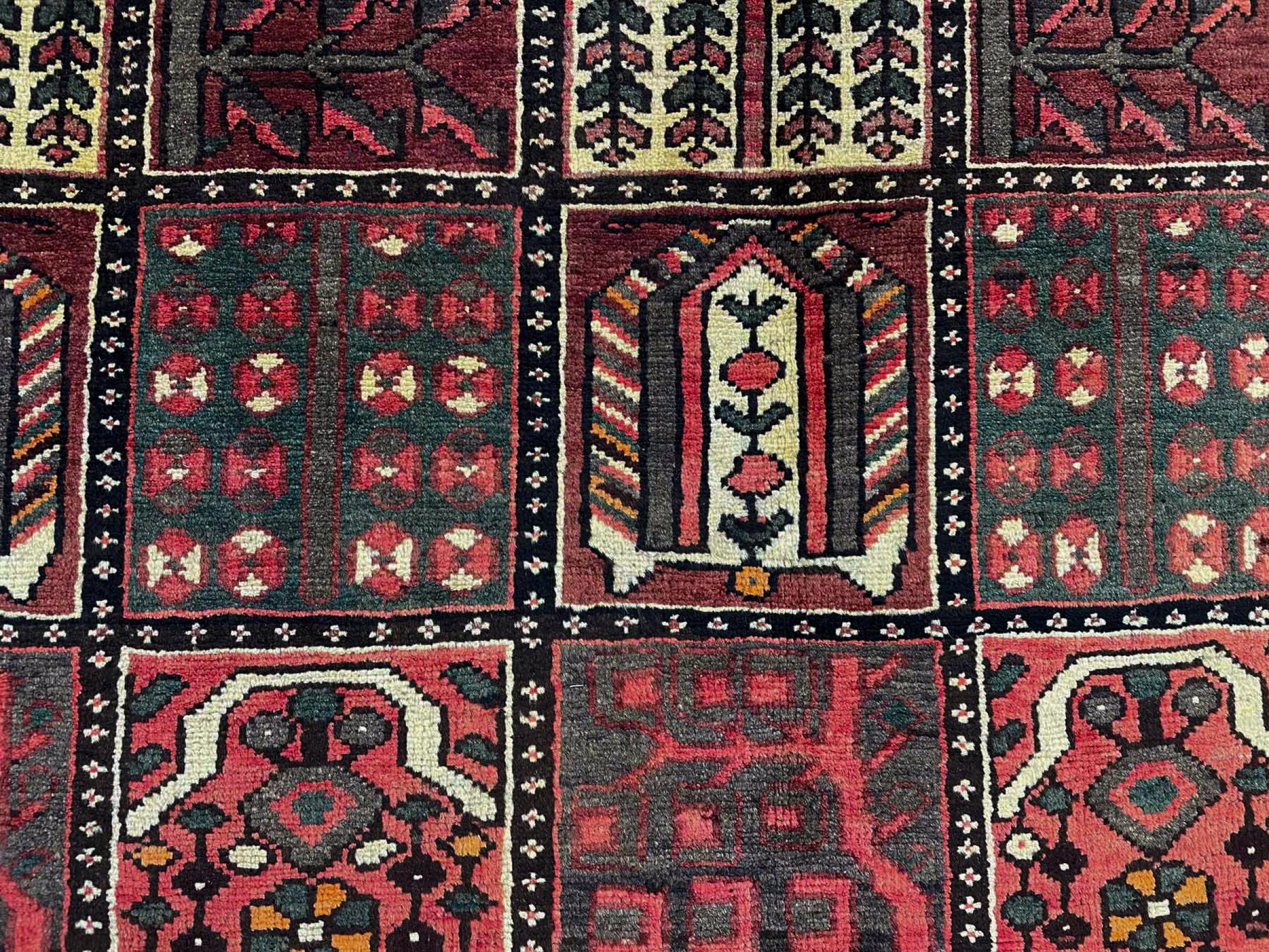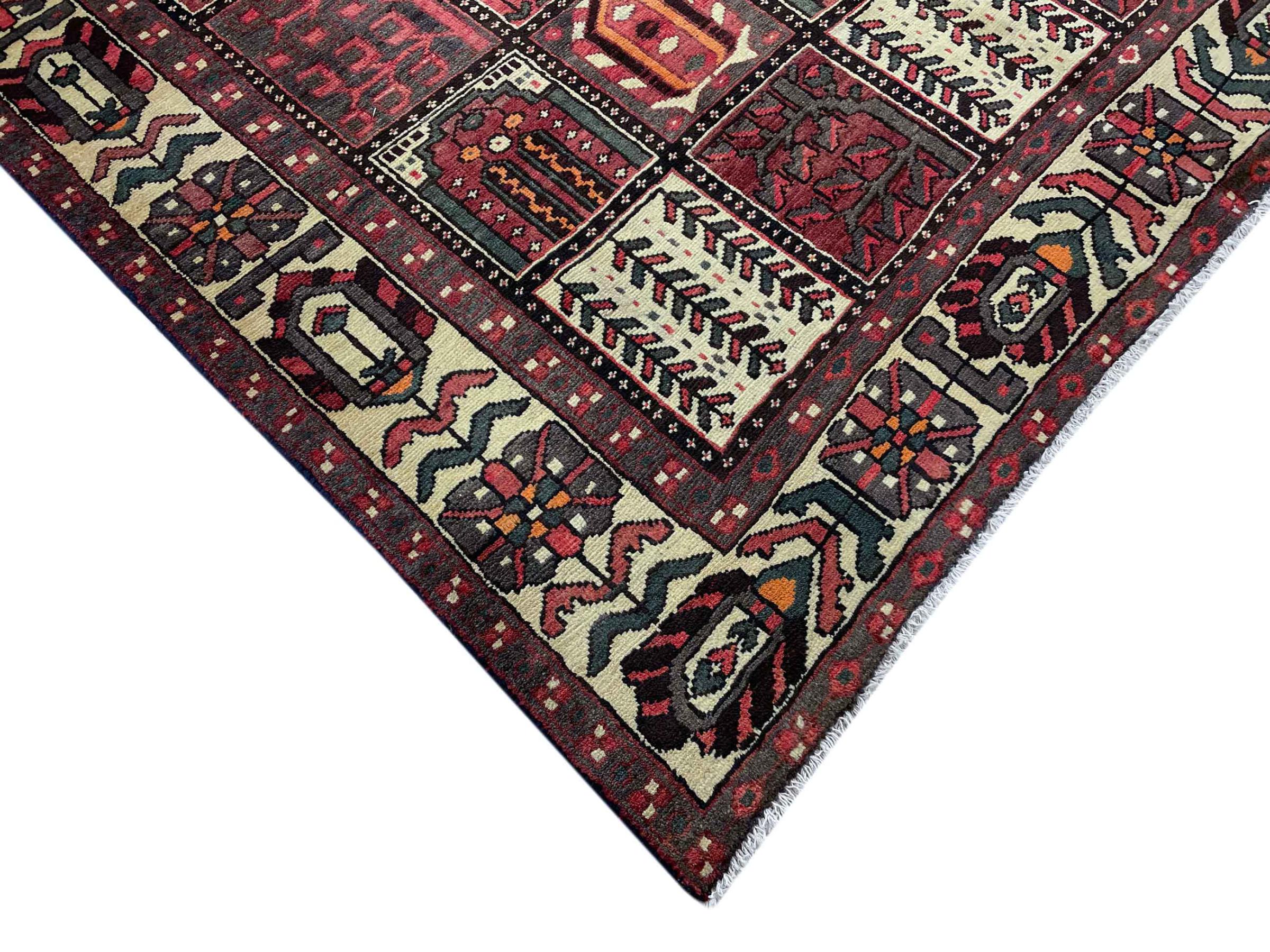 This Persian Bakhtiari was hand-knotted by nomads of the Bakhtiari tribe. This Persian carpet plays with the colours of the Orient in the most beautiful patterns. The design of its ornaments is inspired by Persian gardens. Over the years, the so-called traditional garden design has gained great popularity in the western world. Its high knotting density in combination with the strong yarn promises a long-lasting pleasure of Persian carpet art.