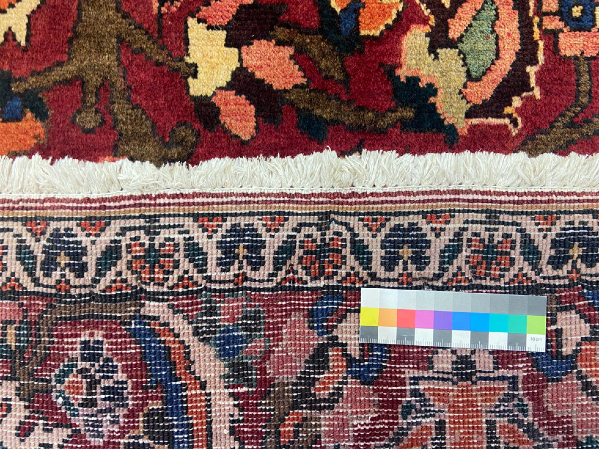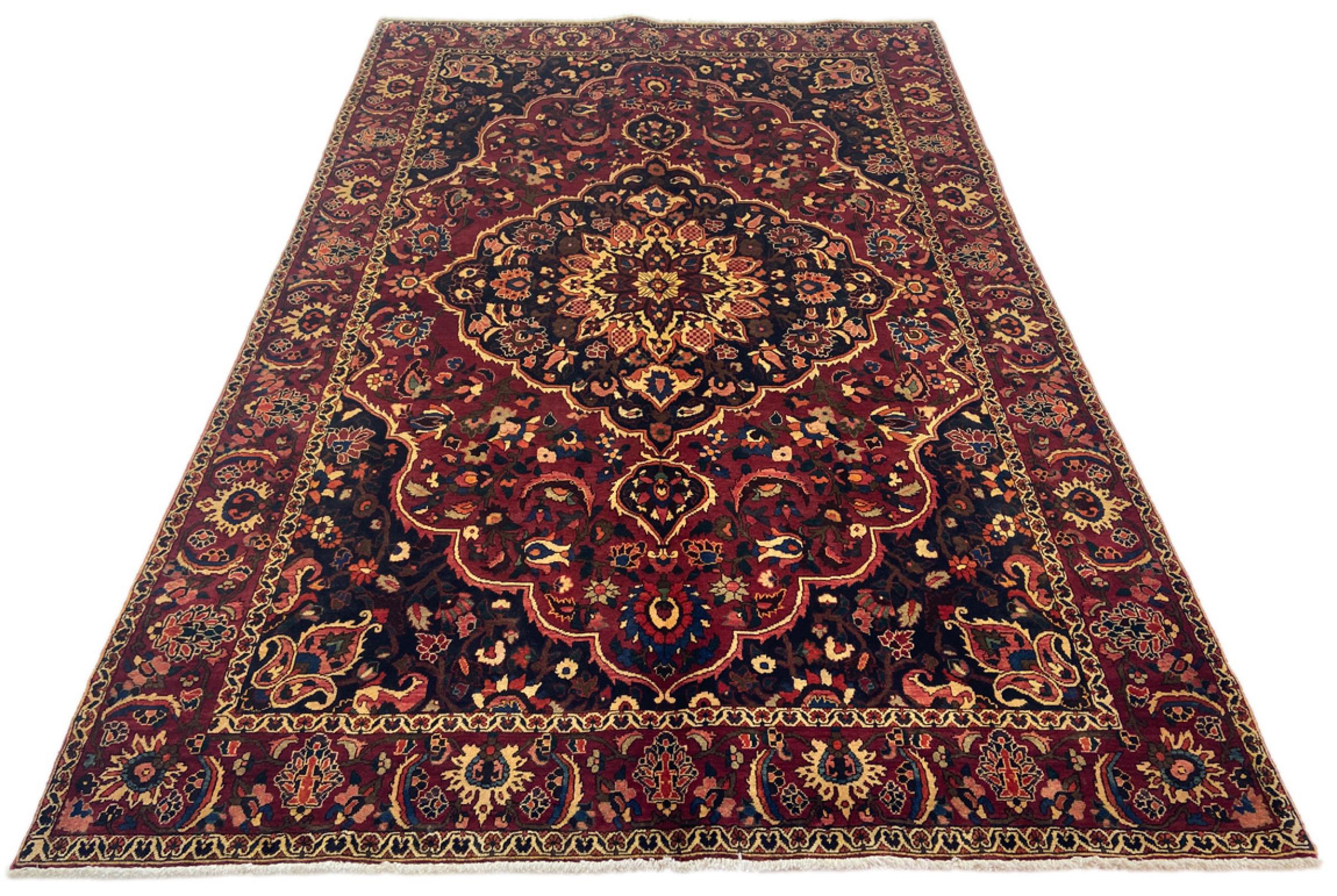 This Persian Bakhtiari was hand-knotted by nomads of the Bakhtiari tribe. This Persian carpet plays with the colours of the Orient in the most beautiful patterns. The design of its ornaments is inspired by Persian gardens. Over the years, the so-called traditional garden design has gained great popularity in the western world. Its high knotting density in combination with the strong yarn promises a long-lasting pleasure of Persian carpet art.