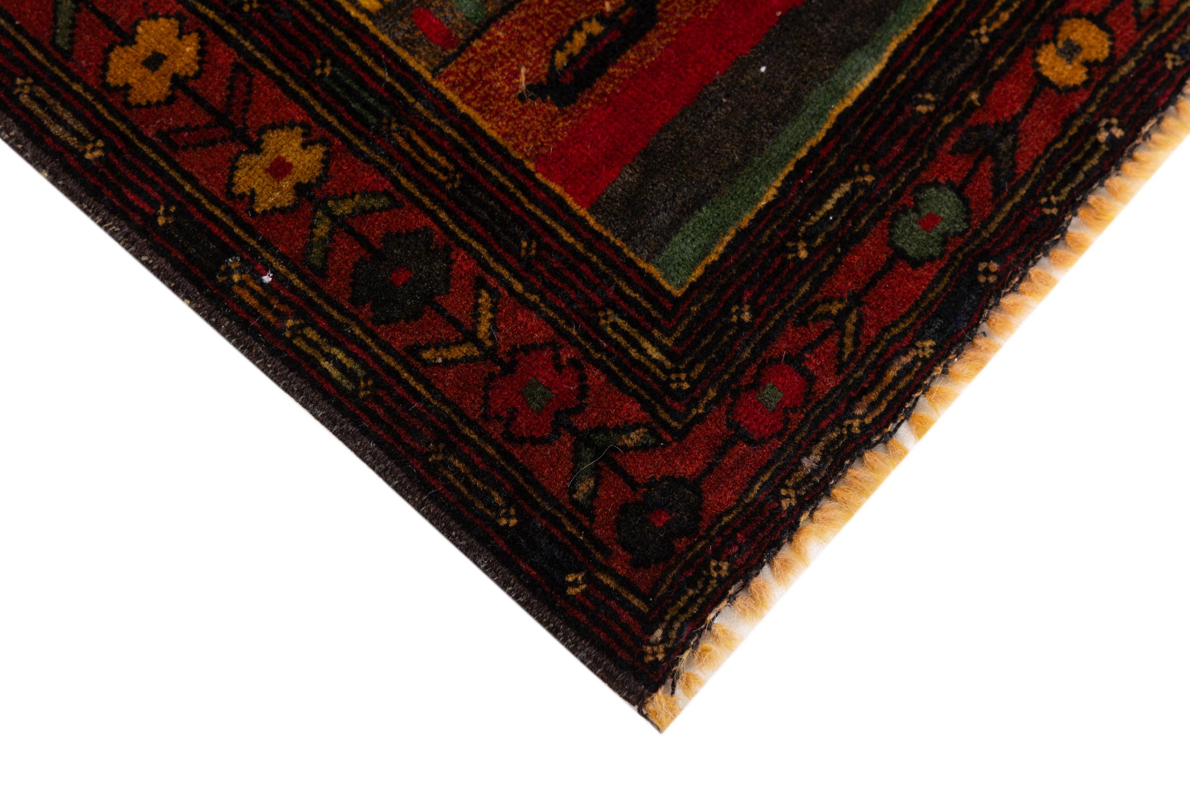 This Baluch carpet is a wonderful example of true nomadic art. The Persian carpet, made in the Iranian-Afghan border region, is convincing thanks to its dense, asymmetrical knotting. Lively patterns make it a real feast for the eyes. Typical are rather dark shades that spread a pleasant warmth. Its beautiful natural yarn conveys quality and makes it extremely durable. Typical for this carpet are the straight-lined patterns that make it an unmistakable nomadic carpet.