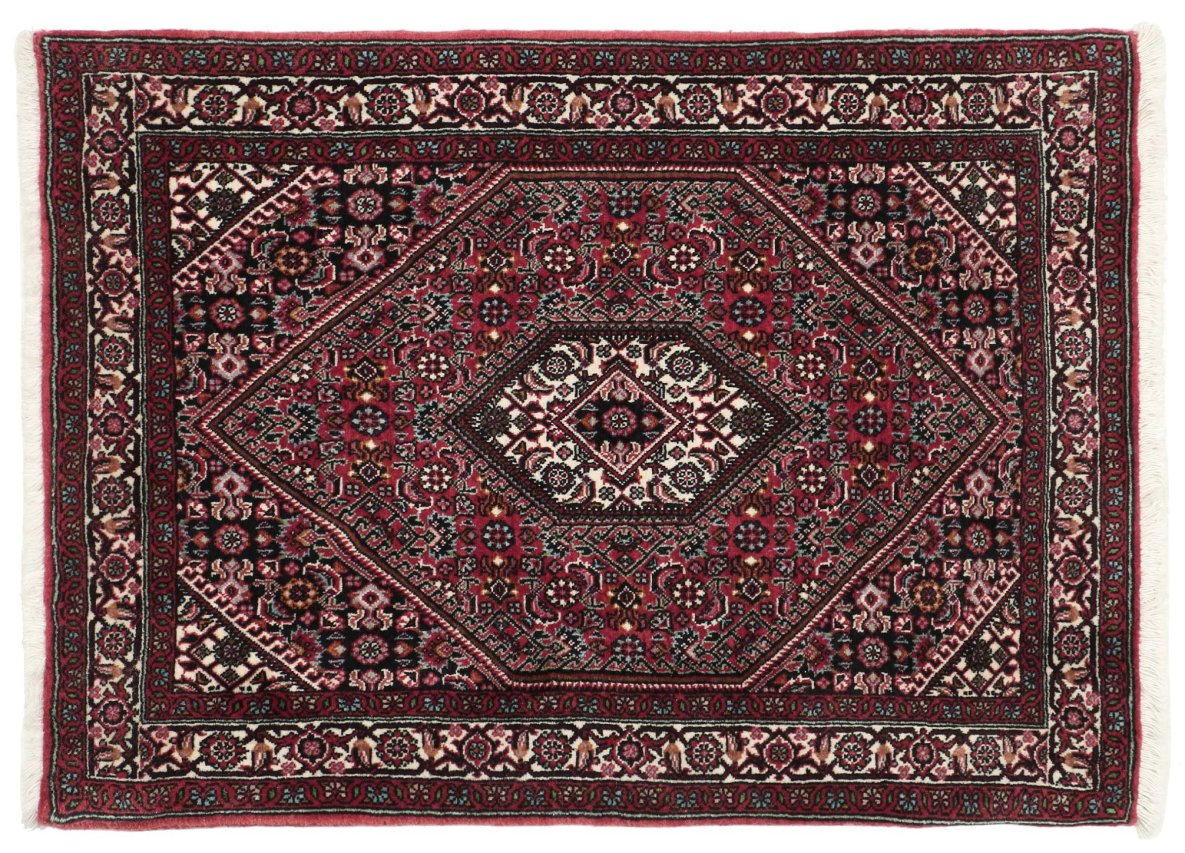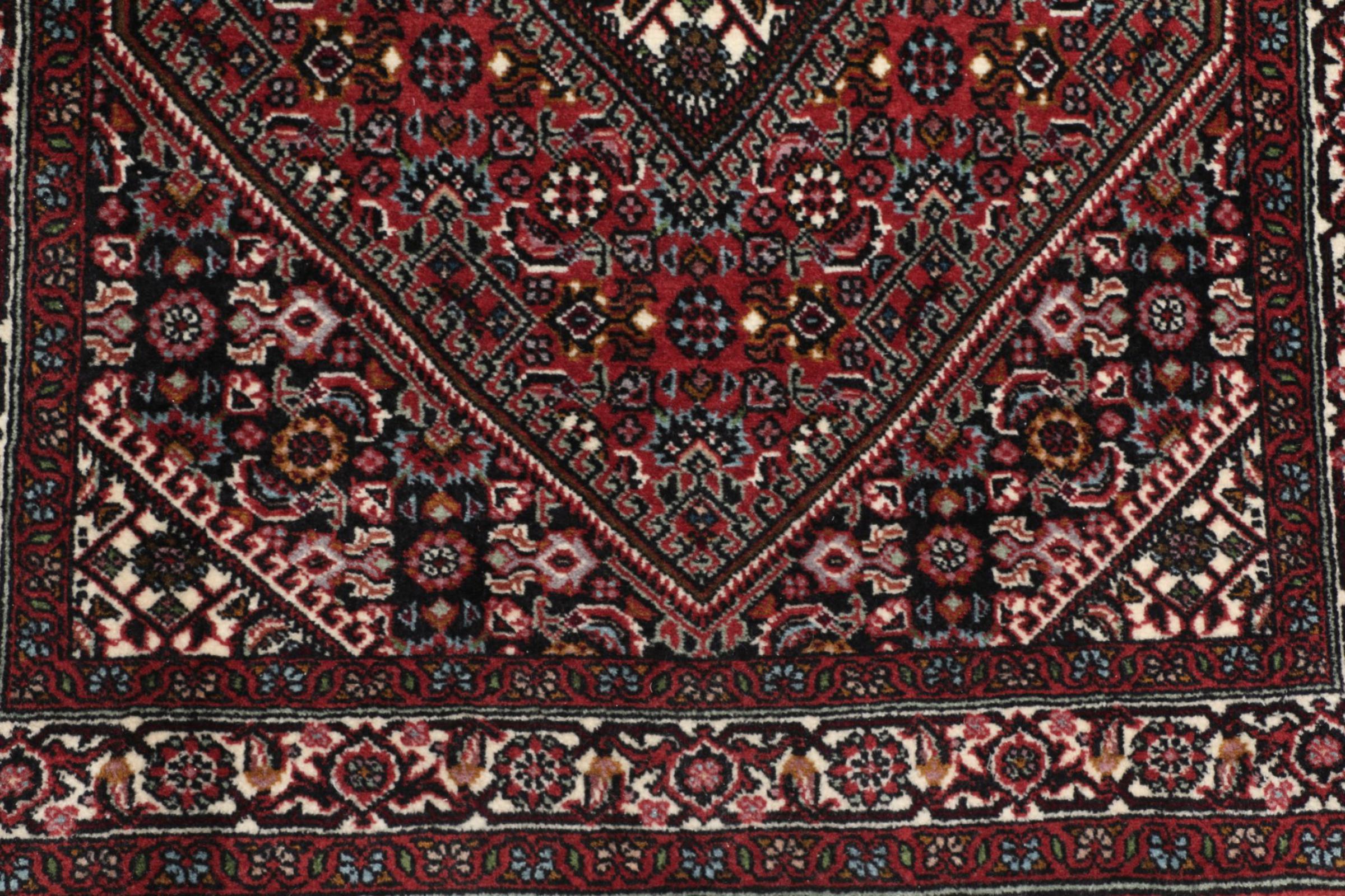 This Persian carpet has been crafted in a small Kurdish town in Western Persia. Bidjar carpets stand for high quality and contemporary design. With geometric patterns and ornaments it is highly popular even for modern interior concepts. Additionally, its compact pile is popular due to its resilience and robustness. This Persian rug made by a Kurdish minority is a great and long-lasting choice you wouldn't want to miss anymore.
