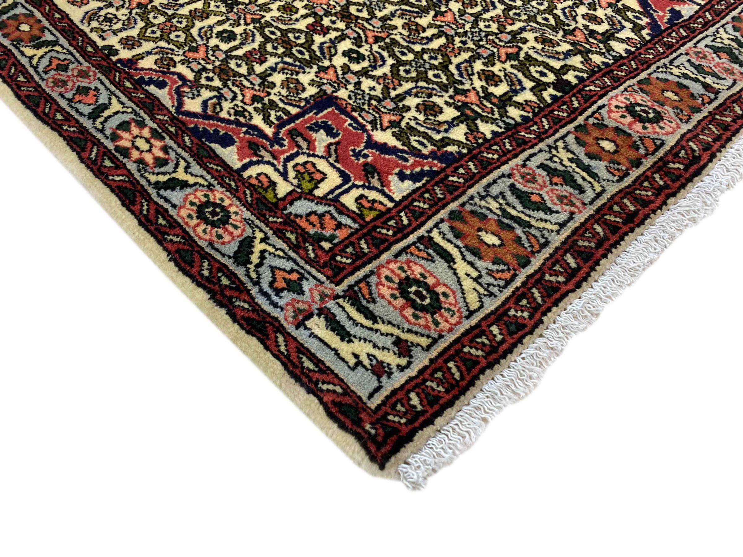 This Persian carpet has been crafted in a small Kurdish town in Western Persia. Bidjar carpets stand for high quality and contemporary design. With geometric patterns and ornaments it is highly popular even for modern interior concepts. Additionally, its compact pile is popular due to its resilience and robustness. This Persian rug made by a Kurdish minority is a great and long-lasting choice you wouldn't want to miss anymore.