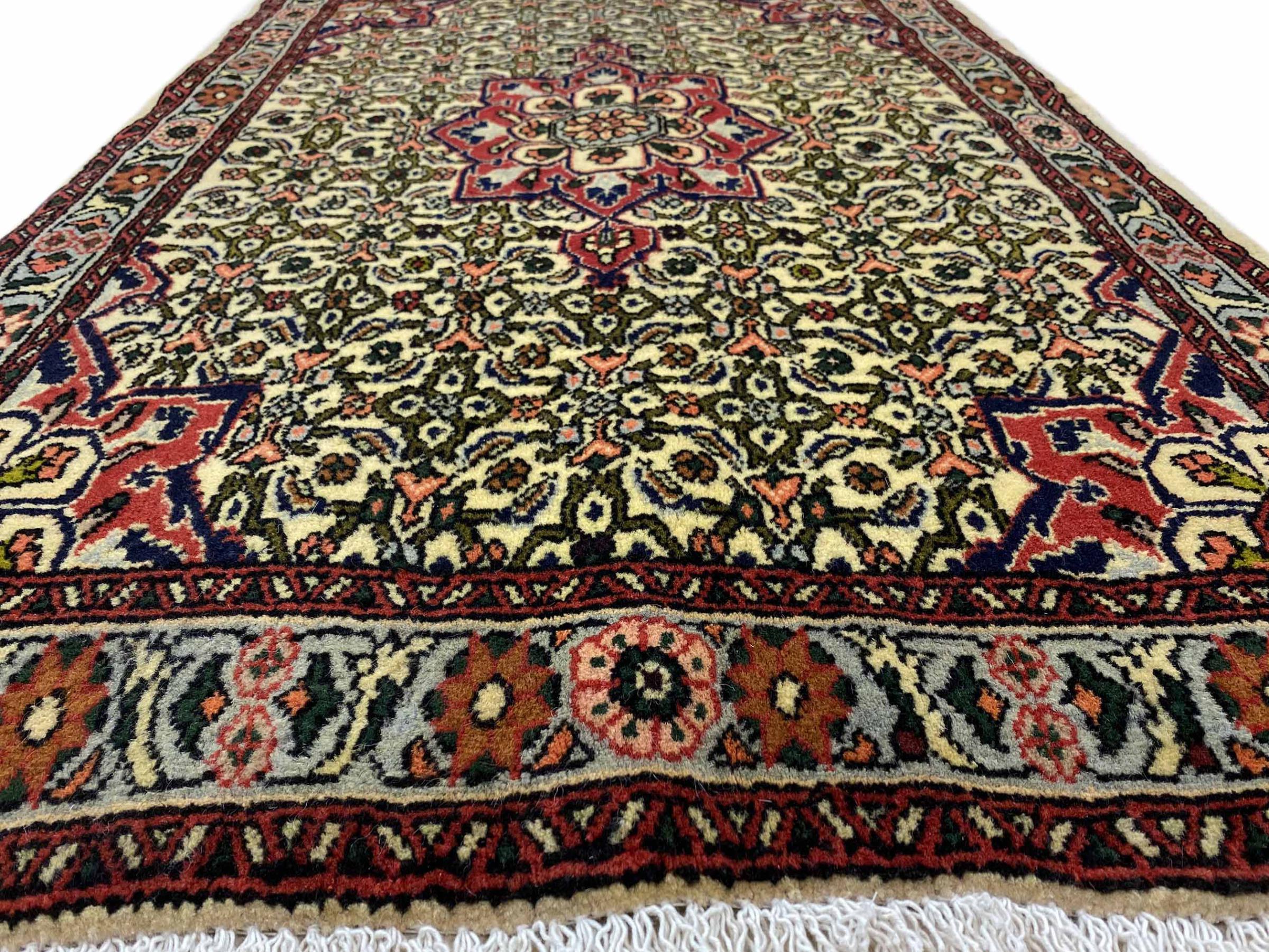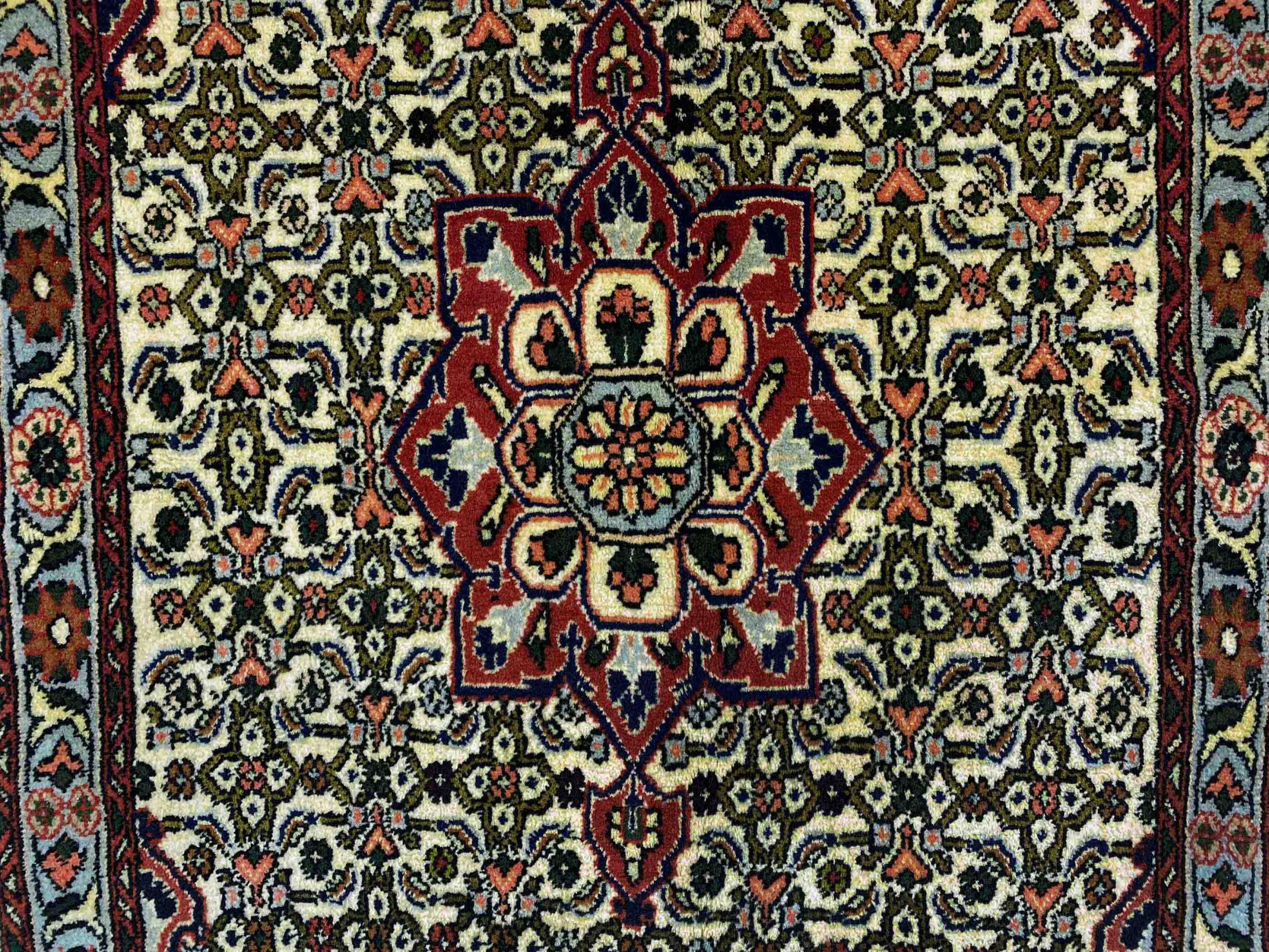 These rugs come from the Kurdish minority living in Iran. The city of Bijar is known for its strong and high quality Persian rugs. The pile of these carpets is tightly compressed with a comb when knotted. This way, dirt particles can hardly penetrate. At the same time Bijar rugs are relatively heavy and thick. Bijar rugs usually have a medallion in the centre and come in the so-called Herati pattern. Bijar rugs usually have a medallion in the centre and come in the so-called Herati pattern.