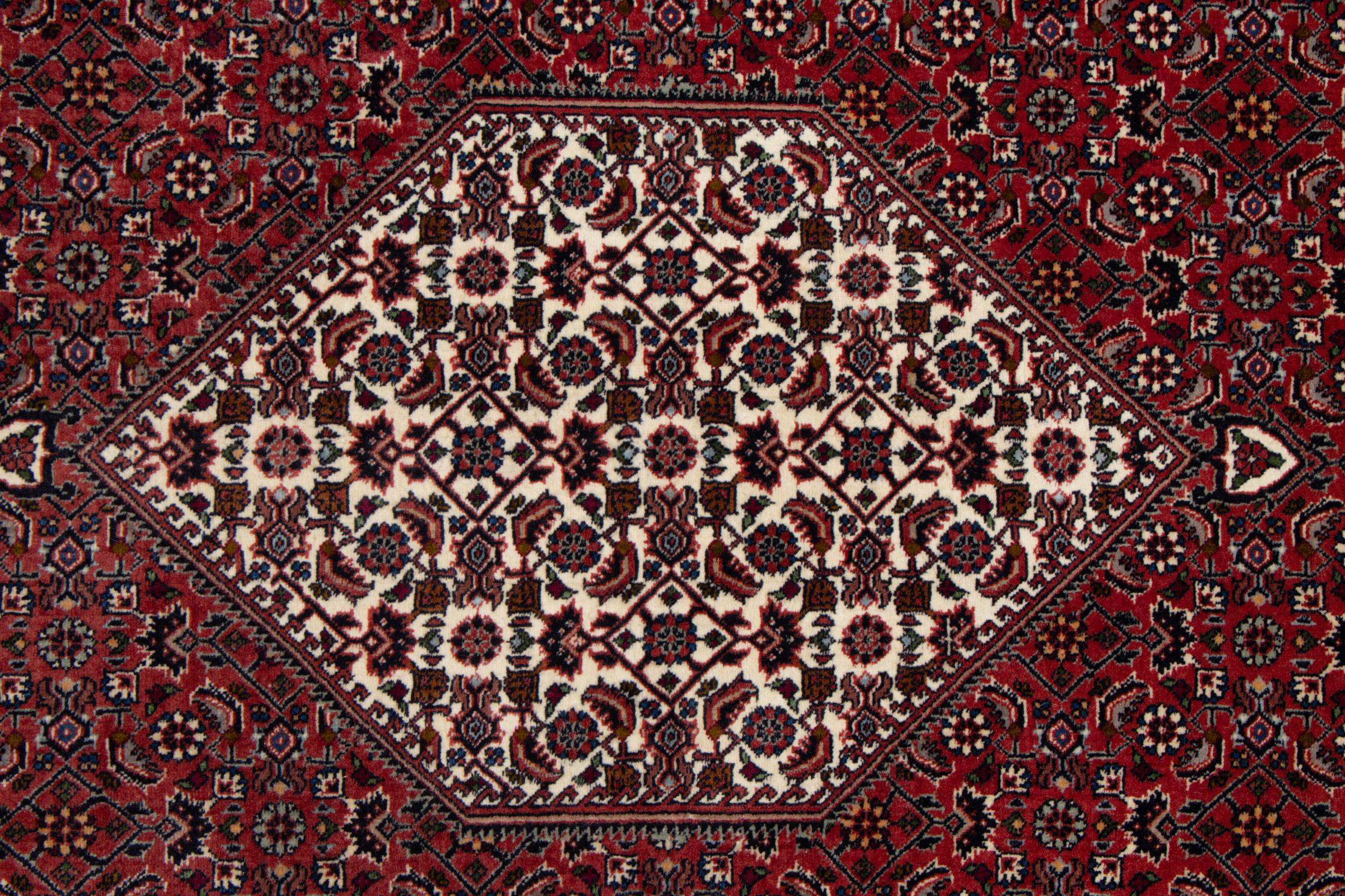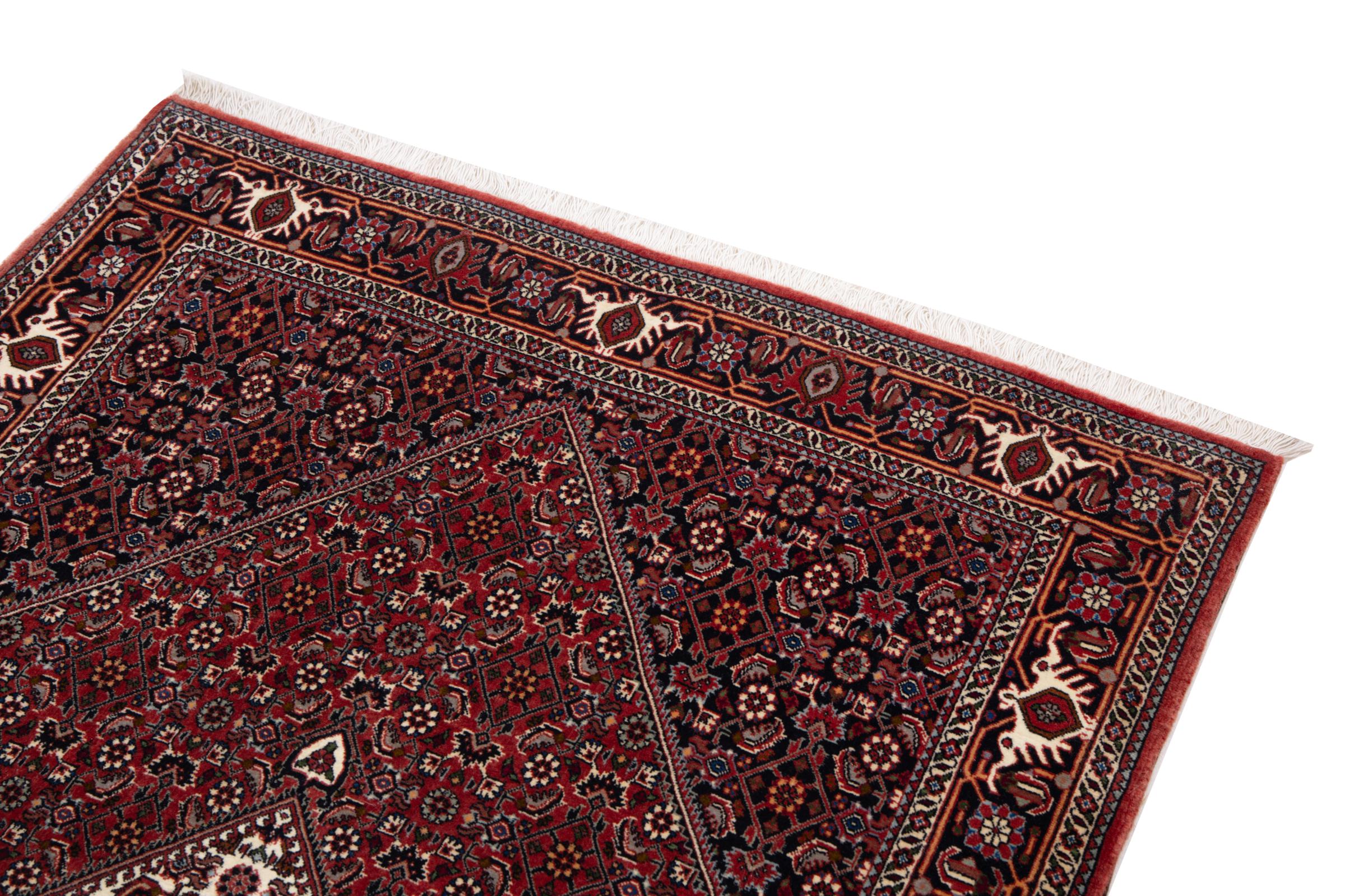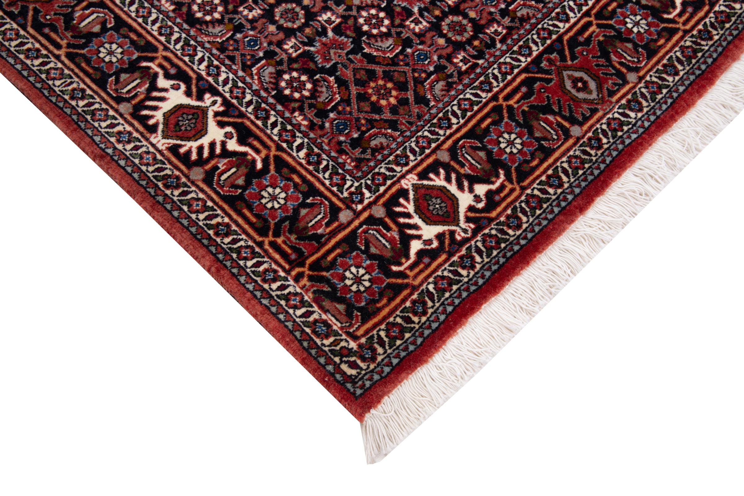 This Persian carpet has been crafted in a small Kurdish town in Western Persia. Bidjar carpets stand for high quality and contemporary design. With geometric patterns and ornaments it is highly popular even for modern interior concepts. Additionally, its compact pile is popular due to its resilience and robustness. This Persian rug made by a Kurdish minority is a great and long-lasting choice you wouldn't want to miss anymore.