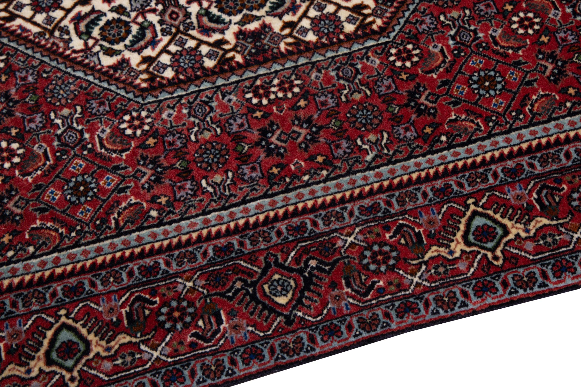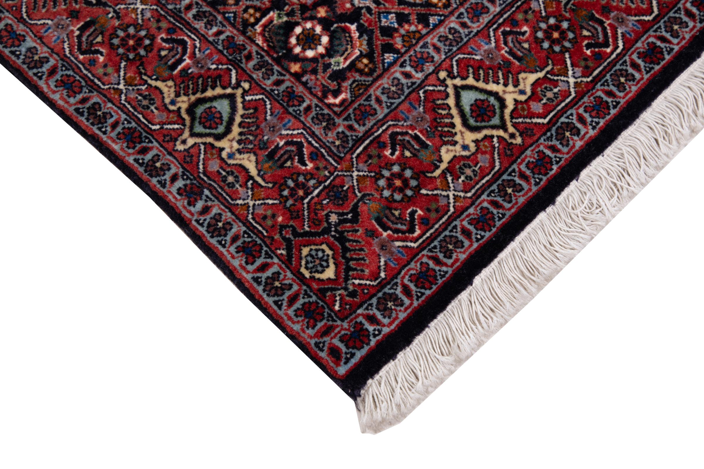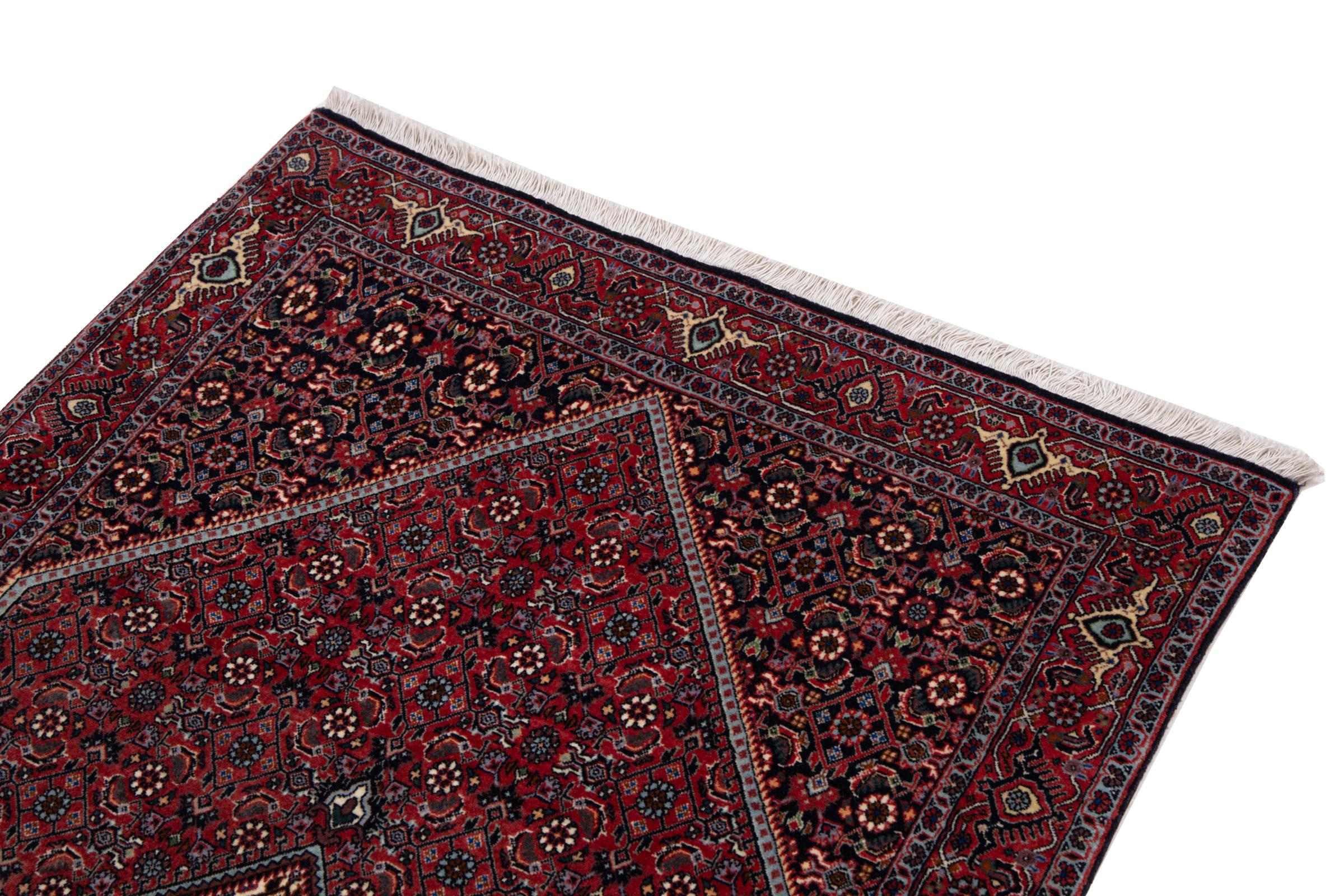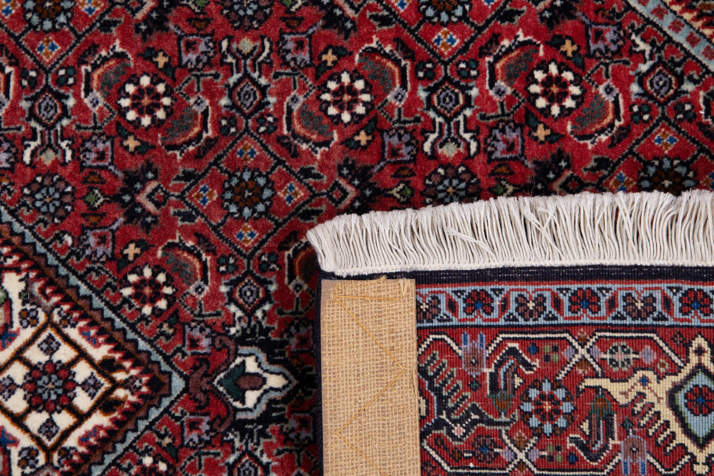 This Persian carpet has been crafted in a small Kurdish town in Western Persia. Bidjar carpets stand for high quality and contemporary design. With geometric patterns and ornaments it is highly popular even for modern interior concepts. Additionally, its compact pile is popular due to its resilience and robustness. This Persian rug made by a Kurdish minority is a great and long-lasting choice you wouldn't want to miss anymore.