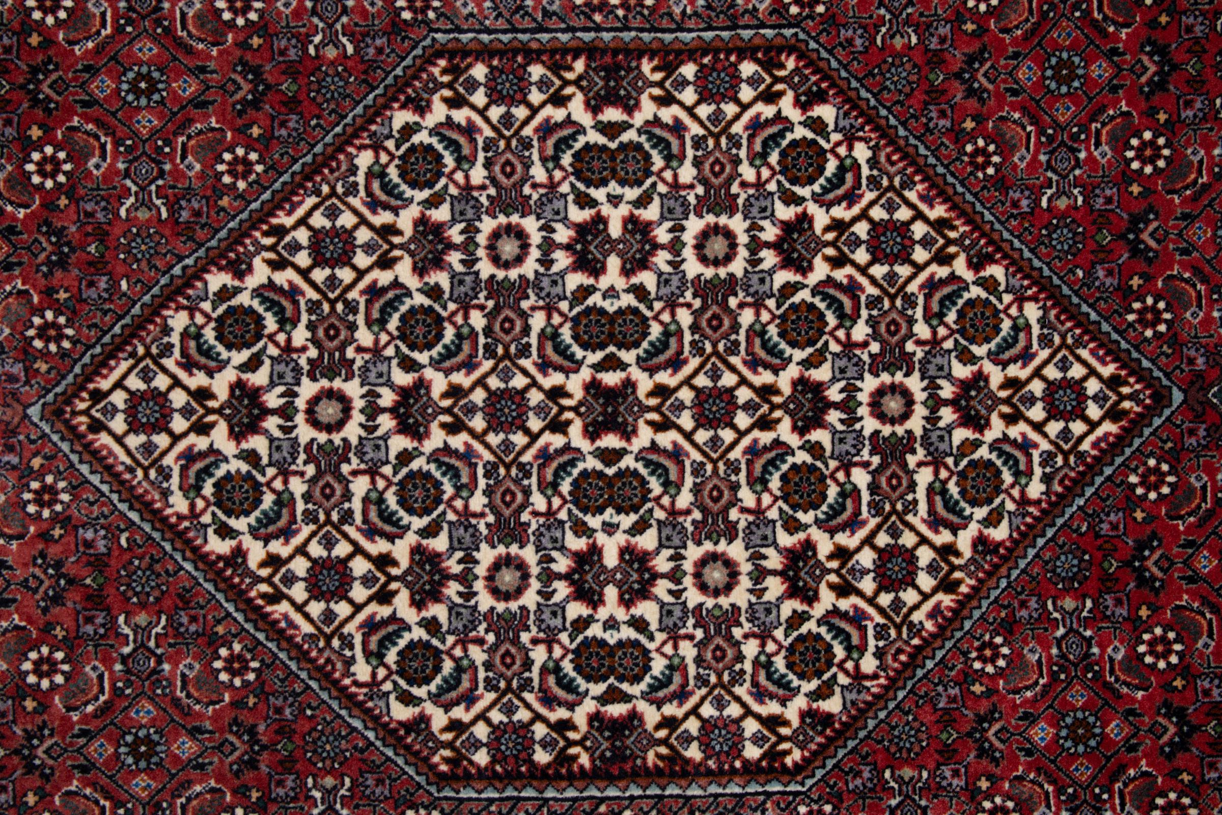 These rugs come from the Kurdish minority living in Iran. The city of Bijar is known for its strong and high quality Persian rugs. The pile of these carpets is tightly compressed with a comb when knotted. This way, dirt particles can hardly penetrate. At the same time Bijar rugs are relatively heavy and thick. Bijar rugs usually have a medallion in the centre and come in the so-called Herati pattern. Bijar rugs usually have a medallion in the centre and come in the so-called Herati pattern.