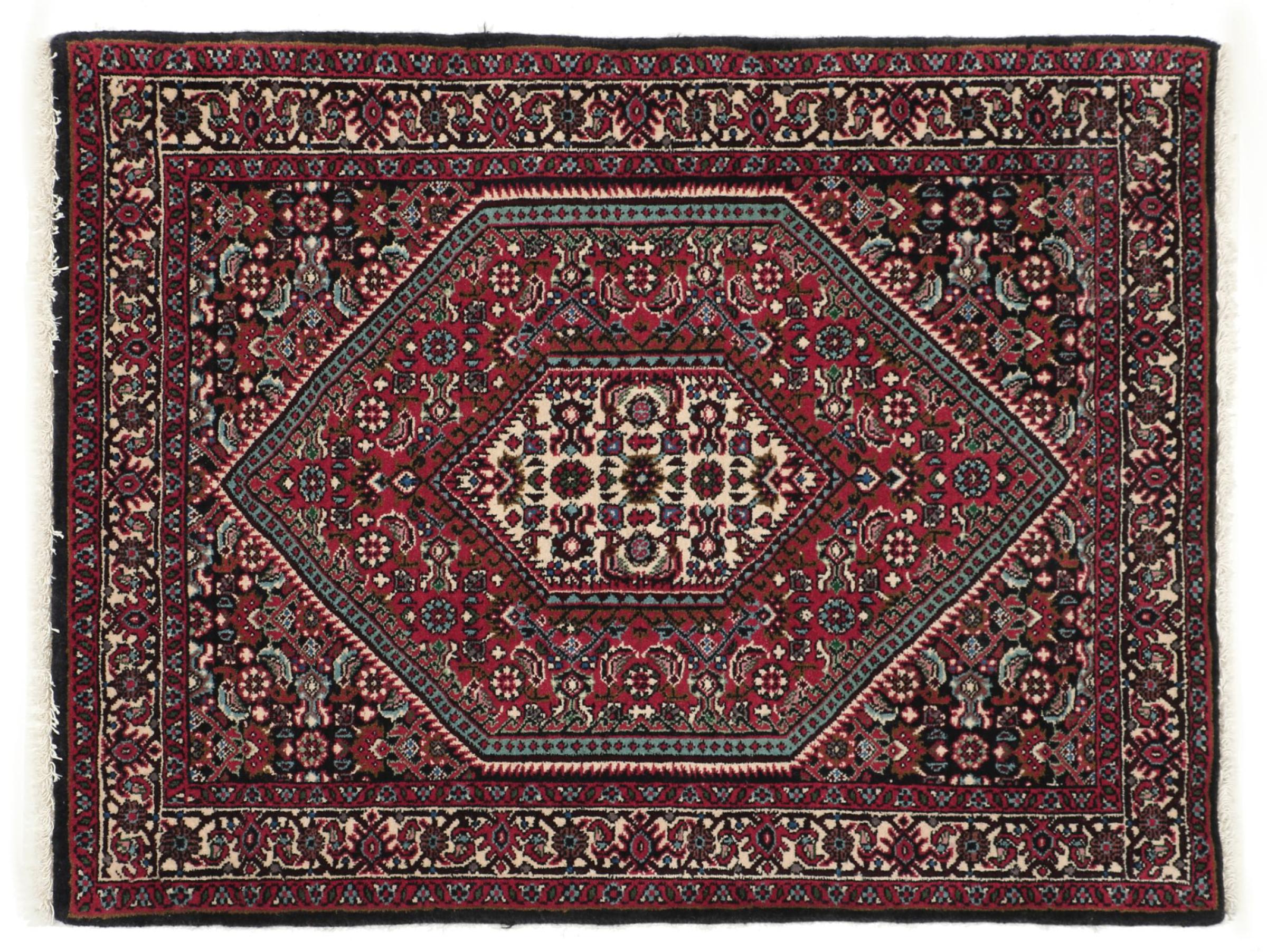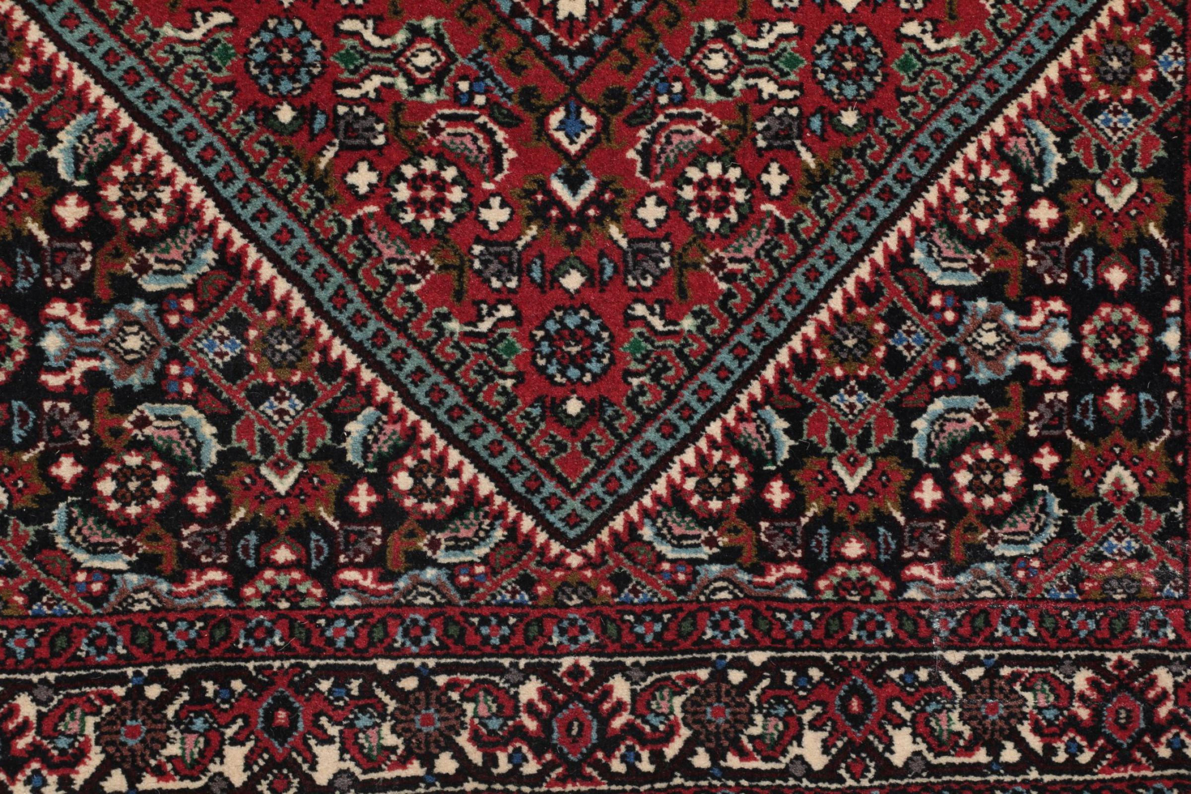 This Persian carpet has been crafted in a small Kurdish town in Western Persia. Bidjar carpets stand for high quality and contemporary design. With geometric patterns and ornaments it is highly popular even for modern interior concepts. Additionally, its compact pile is popular due to its resilience and robustness. This Persian rug made by a Kurdish minority is a great and long-lasting choice you wouldn't want to miss anymore.