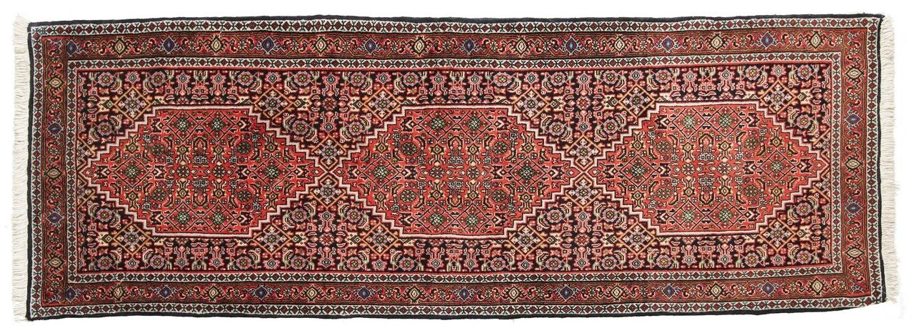 This Persian carpet has been crafted in a small Kurdish town in Western Persia. Bidjar carpets stand for high quality and contemporary design. With geometric patterns and ornaments it is highly popular even for modern interior concepts. Additionally, its compact pile is popular due to its resilience and robustness. This Persian rug made by a Kurdish minority is a great and long-lasting choice you wouldn't want to miss anymore.