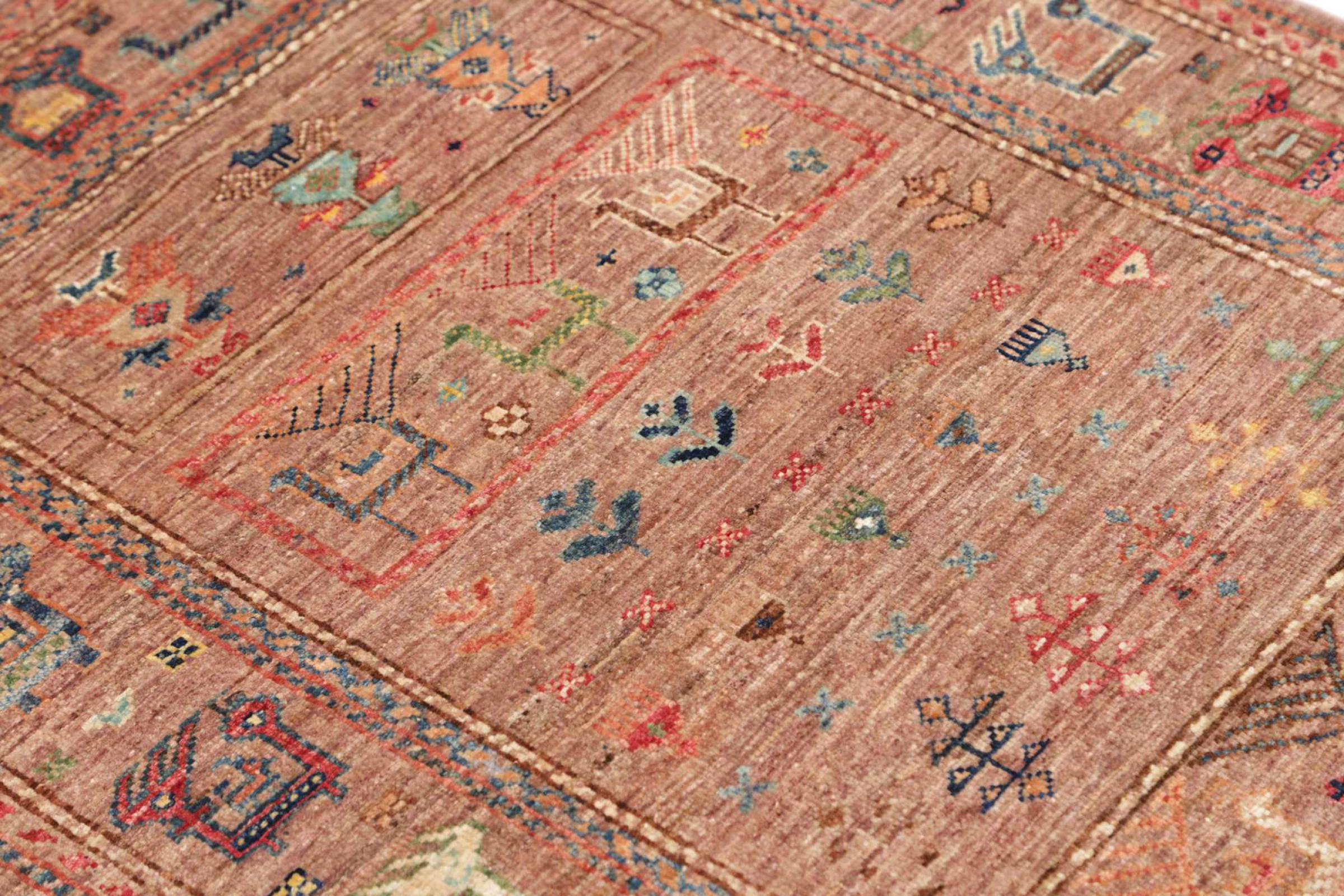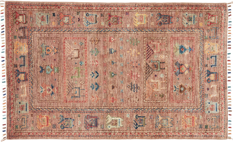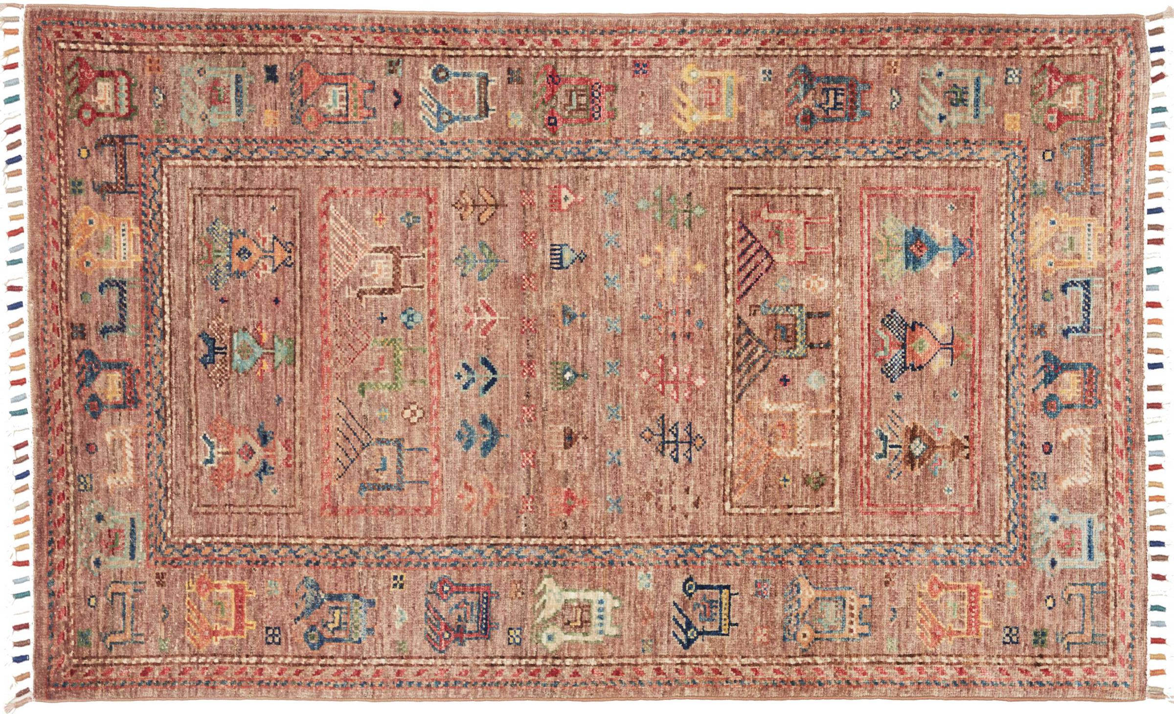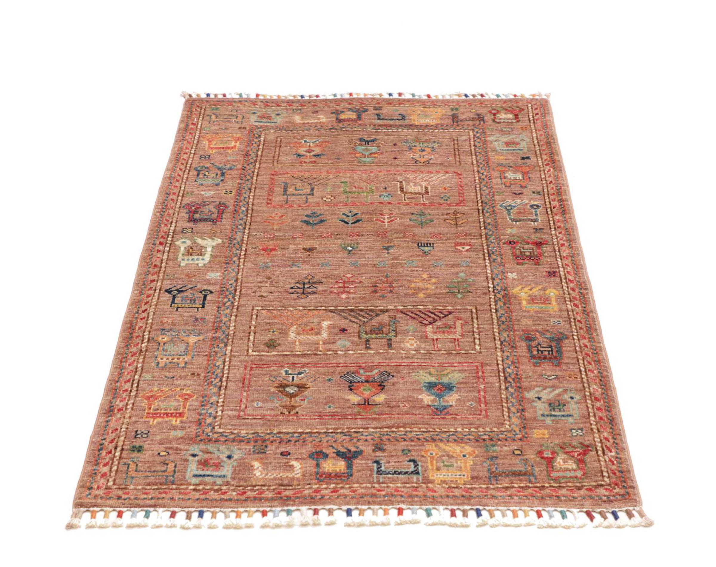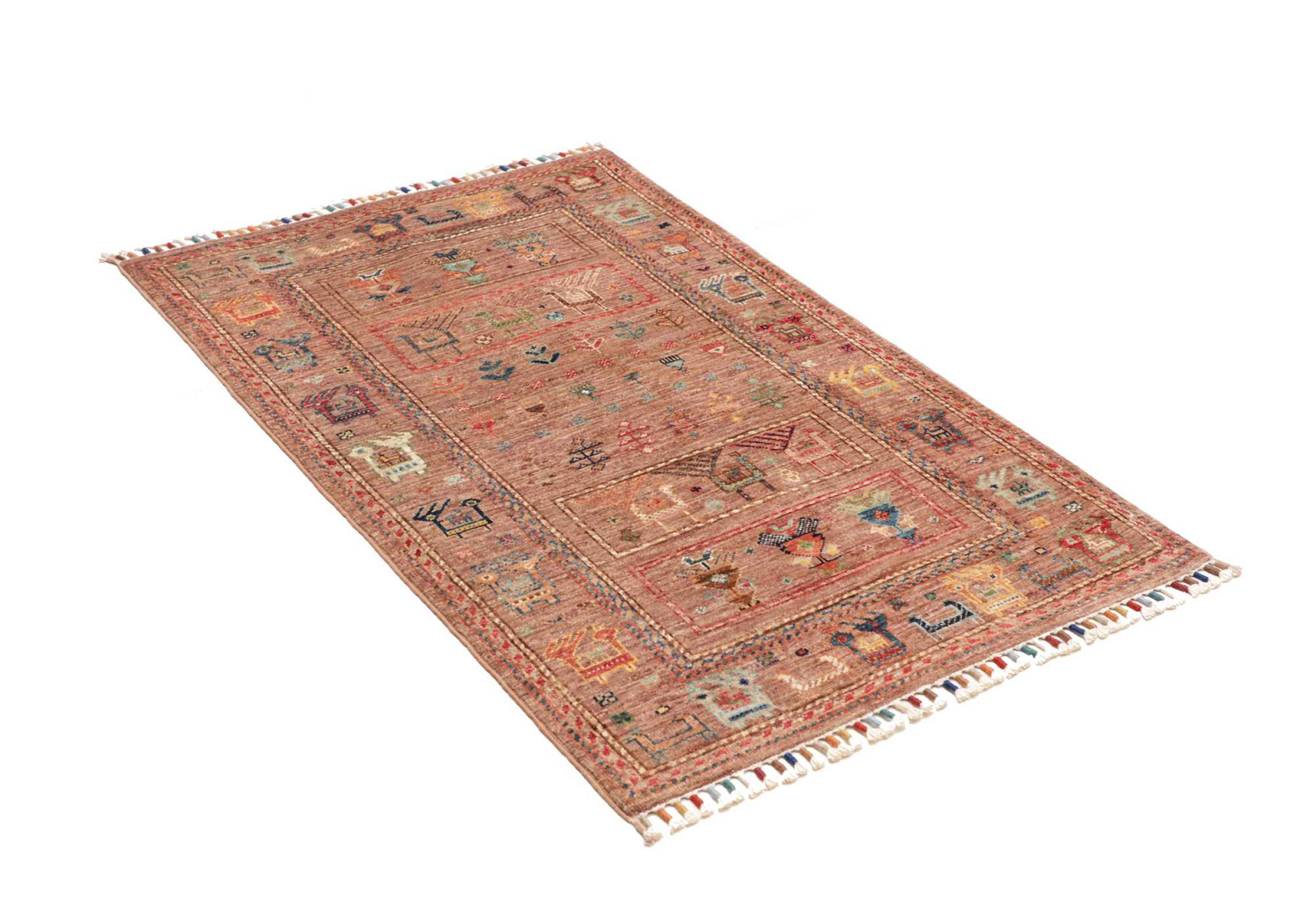 Carpet ID: 30684300785842 Size: 126x78 cm Thickness: ap. 5 mm Knot density: 128 000 - 160 000 / m² Manufacturing: Knotted by hand Pile: Handspun wool Warp: Cotton Origin: Pakistan Age: New Weight: ap. 3 kg In stock: Unique - Only 1 in stock