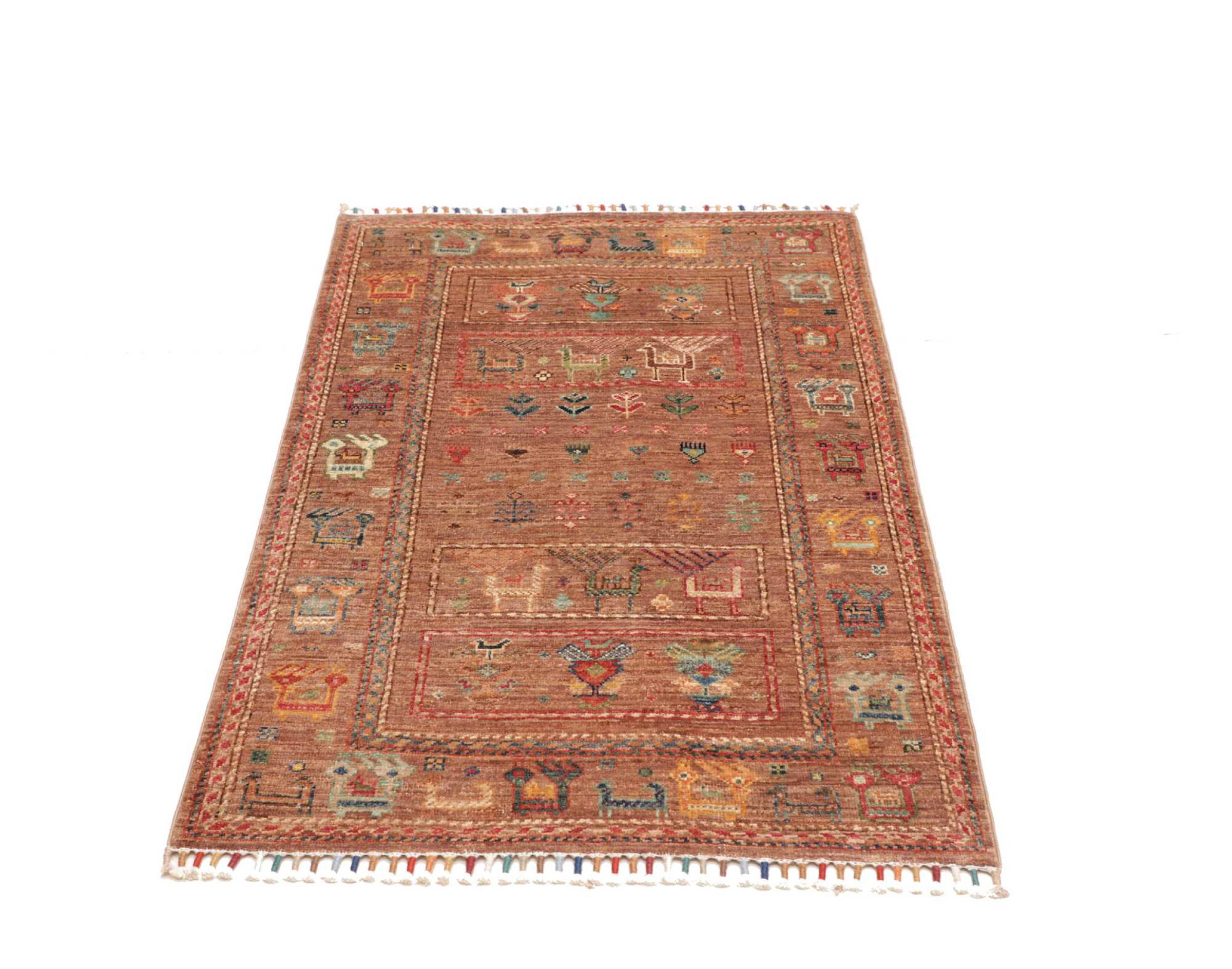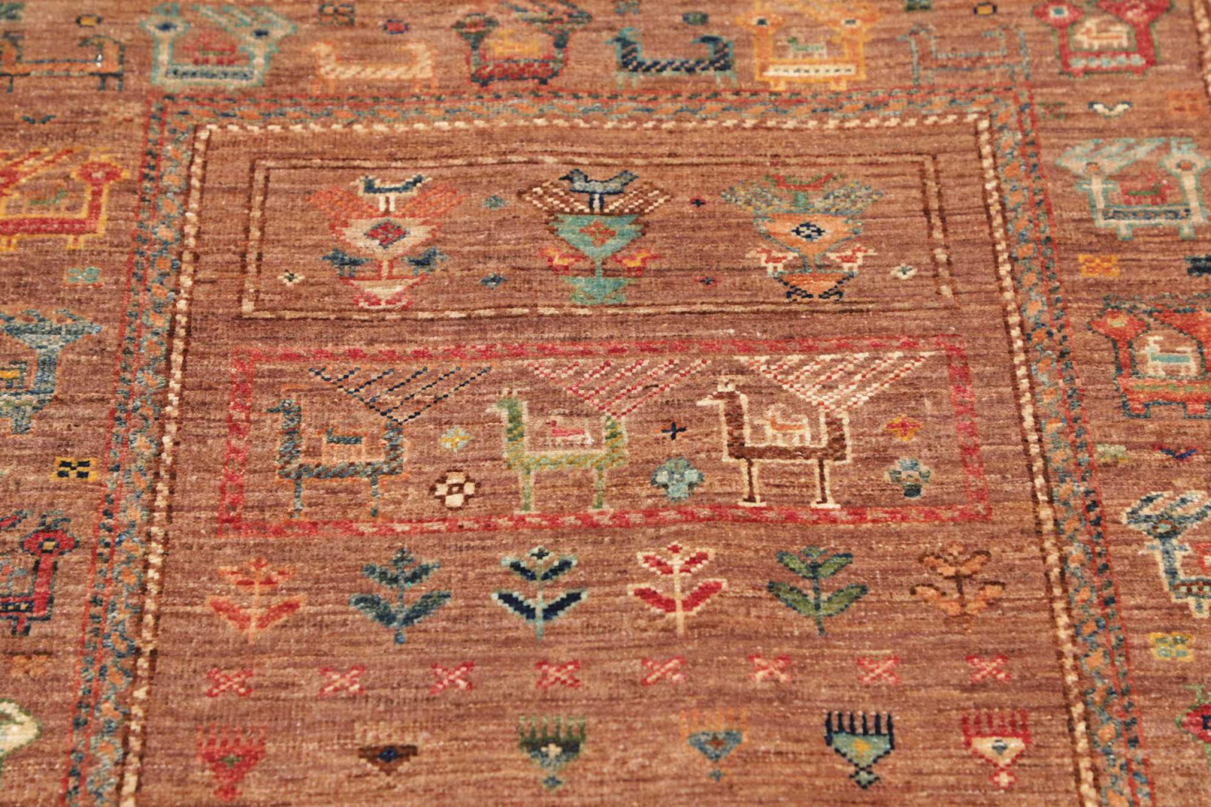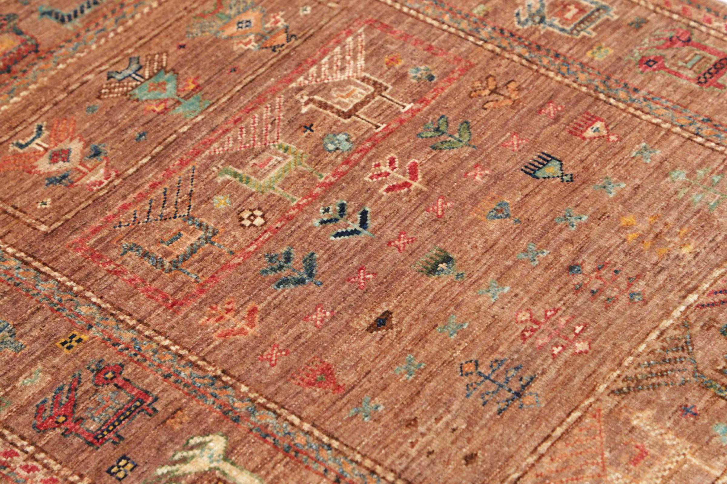 This rug is made of hand spun sheep wool of the highest quality. Especially in Iran (former Persia), Afghanistan and Pakistan wool is still spun by hand before the actual knotting of the rug begins. Wool has proven itself as a natural and extremely hard-wearing material over centuries. Among other things, it has dirt-repellent and heat-insulating properties. At the same time, wool is incomparably soft and has a natural shine.