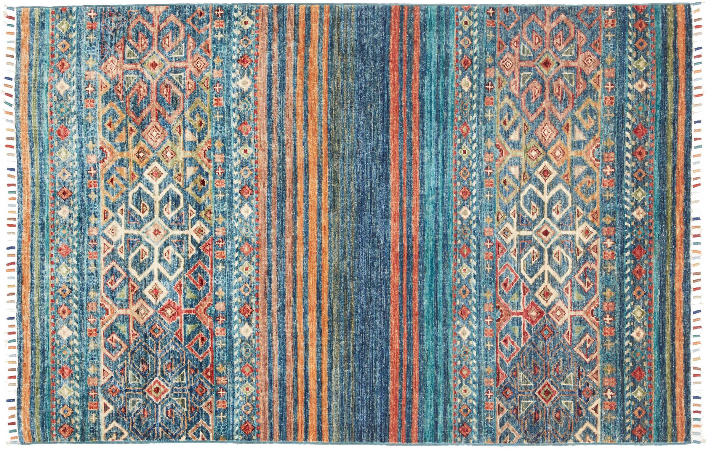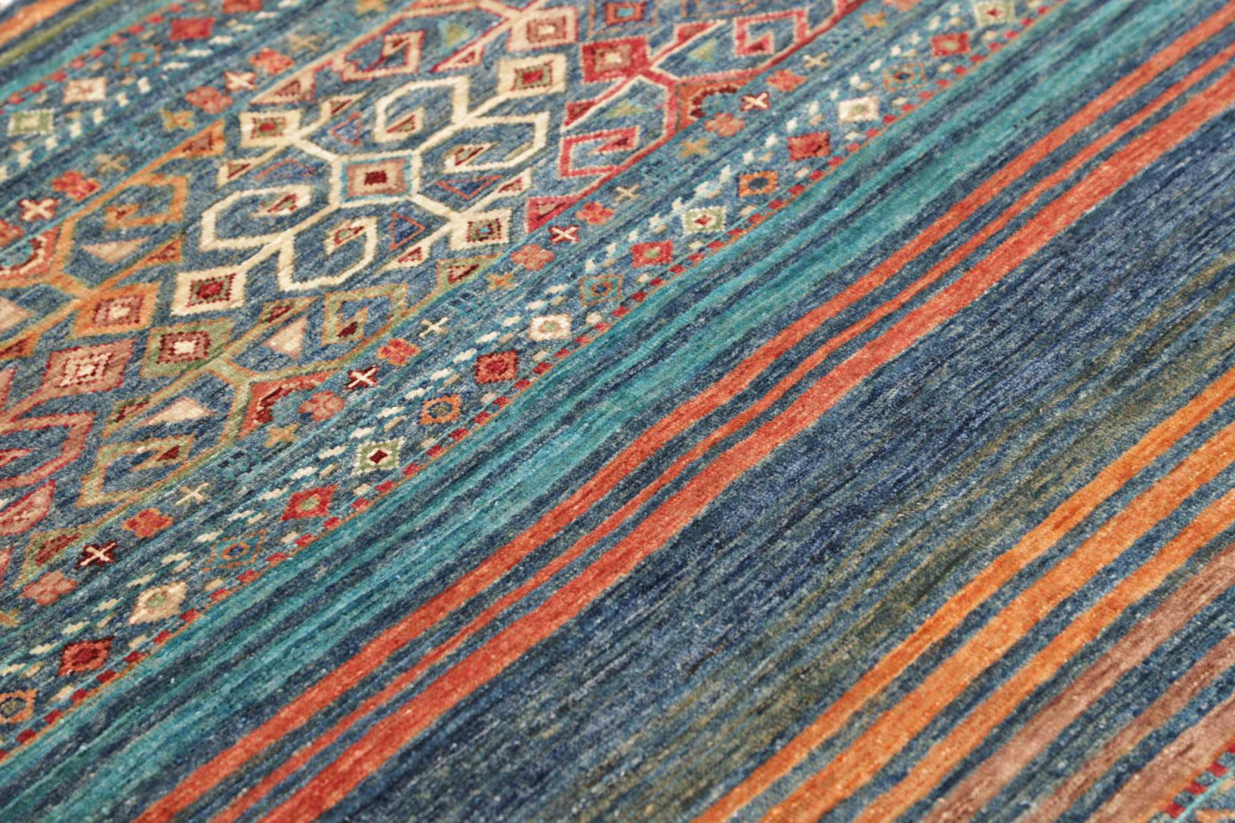 This vibrant oriental rug was hand-knotted in Pakistan - in one of the most far-reaching knotting cultures in the world. Here, the vibrant color spectrum of the Orient comes into its own. A rug like this brings joie de vivre at any time of year. The designer rug has its very own character, as it has only been hand-knotted once over a period of months.