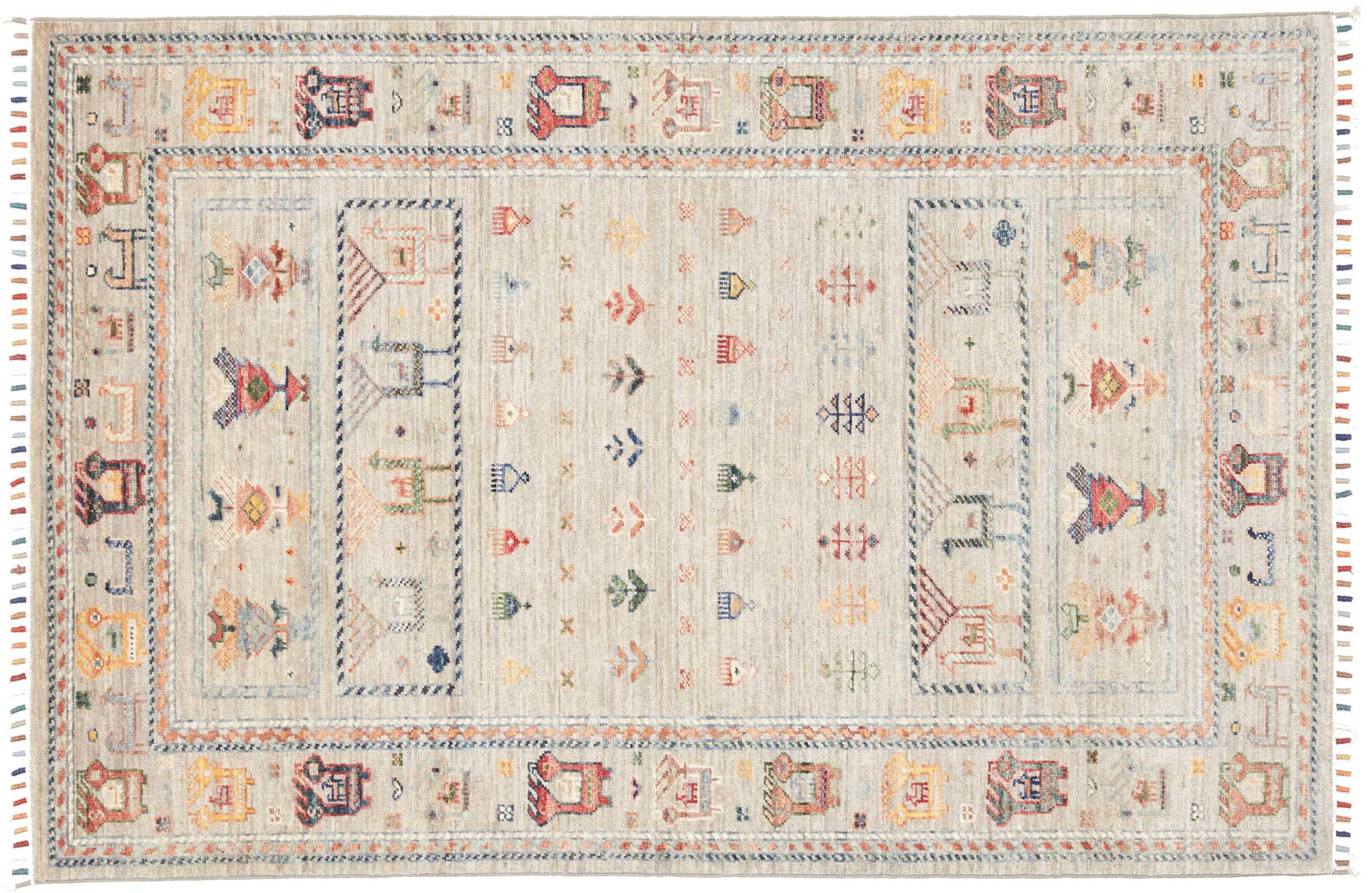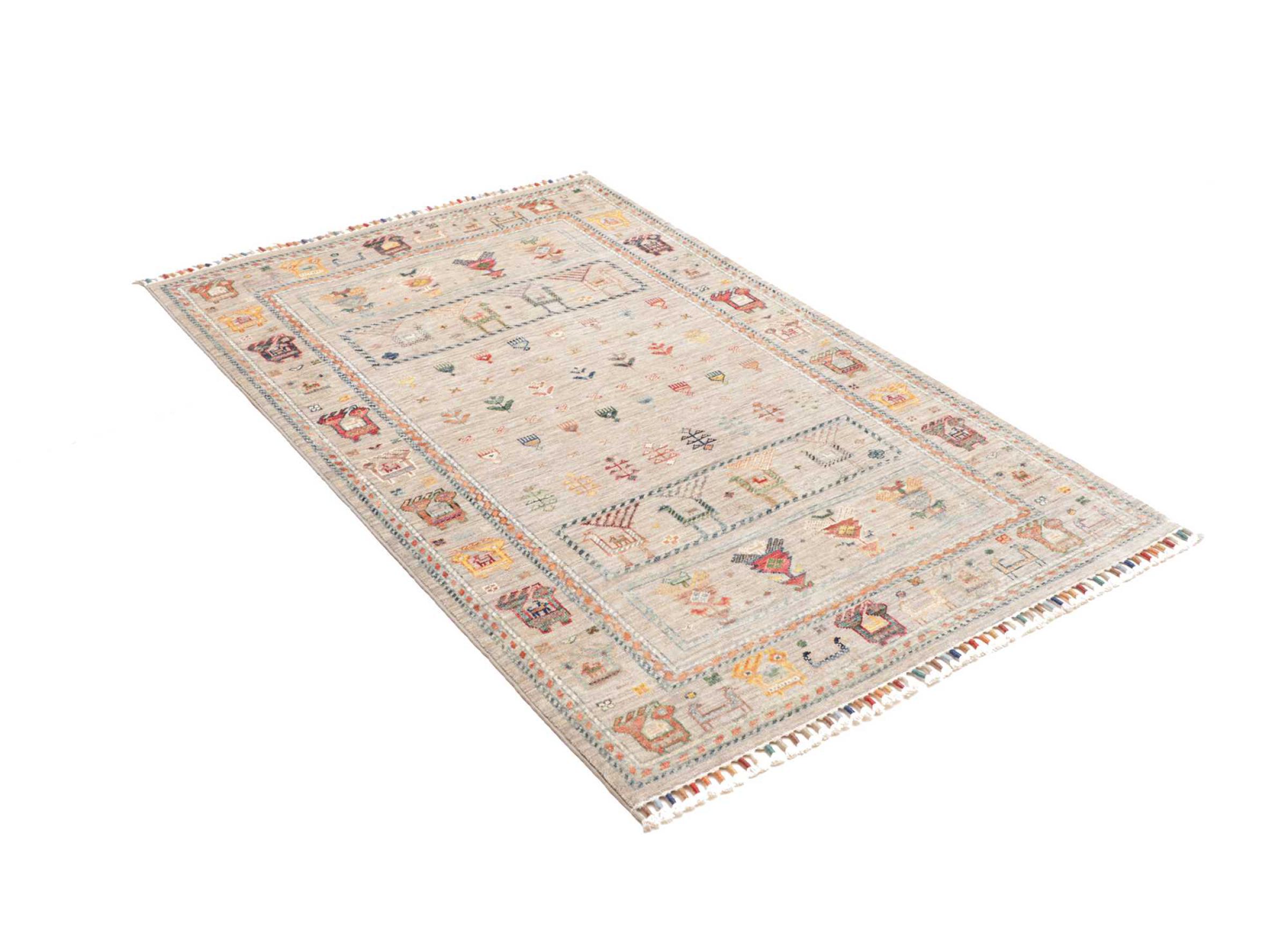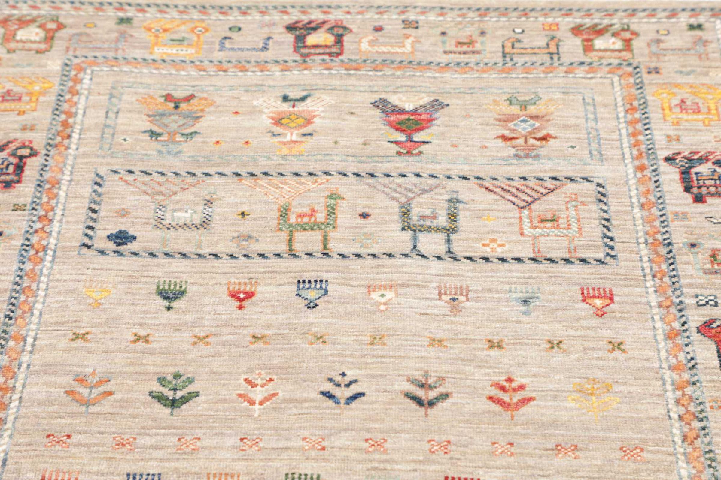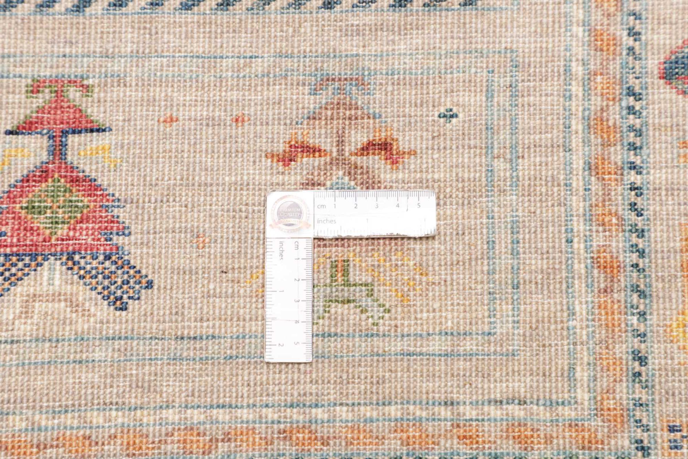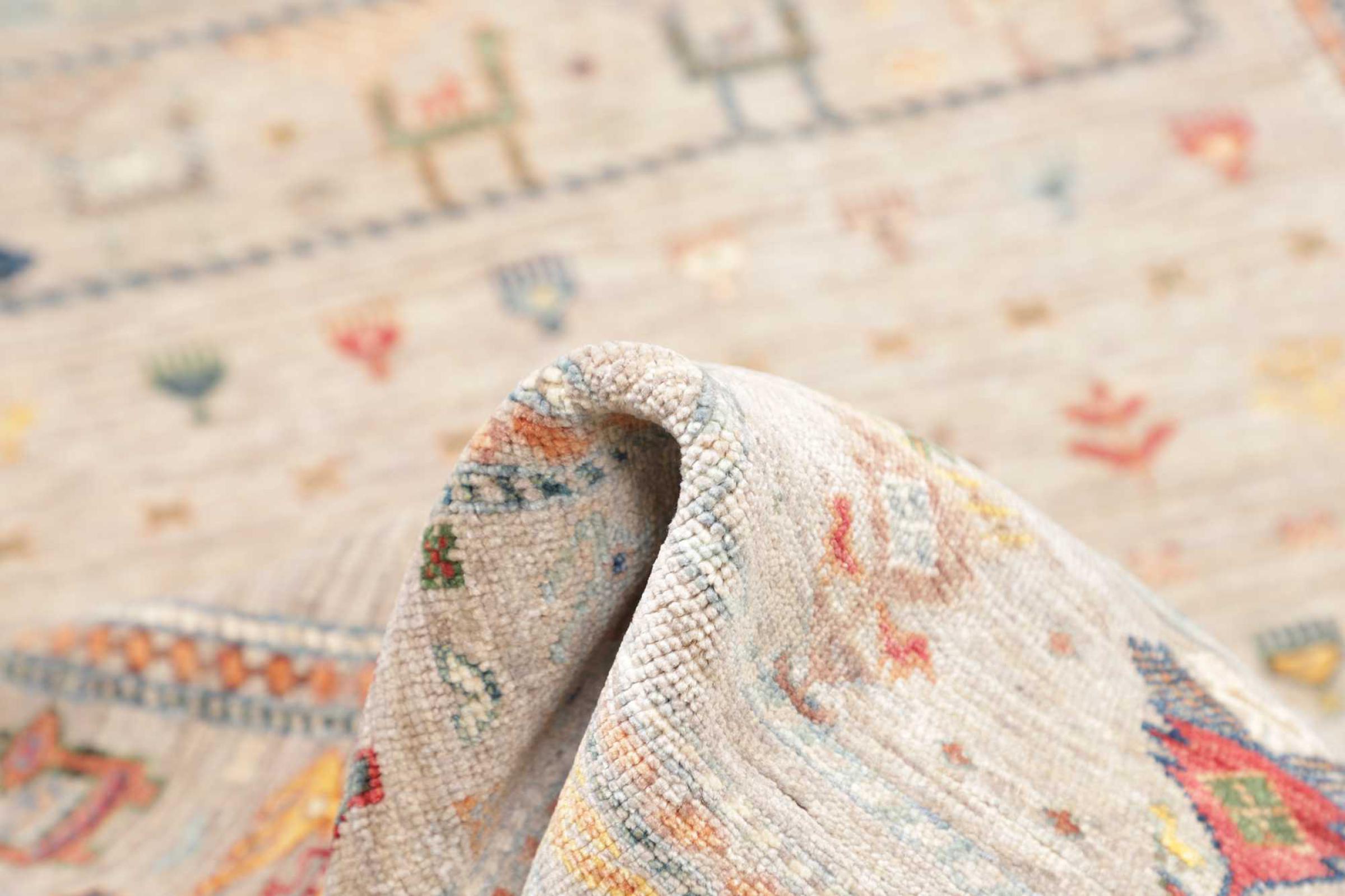 This rug is made of hand spun sheep wool of the highest quality. Especially in Iran (former Persia), Afghanistan and Pakistan wool is still spun by hand before the actual knotting of the rug begins. Wool has proven itself as a natural and extremely hard-wearing material over centuries. Among other things, it has dirt-repellent and heat-insulating properties. At the same time, wool is incomparably soft and has a natural shine.