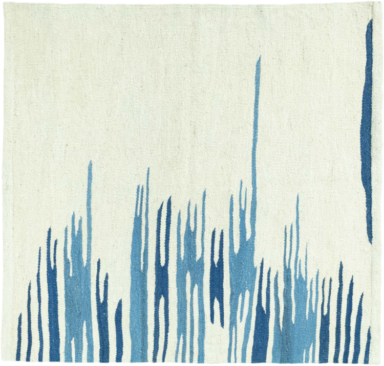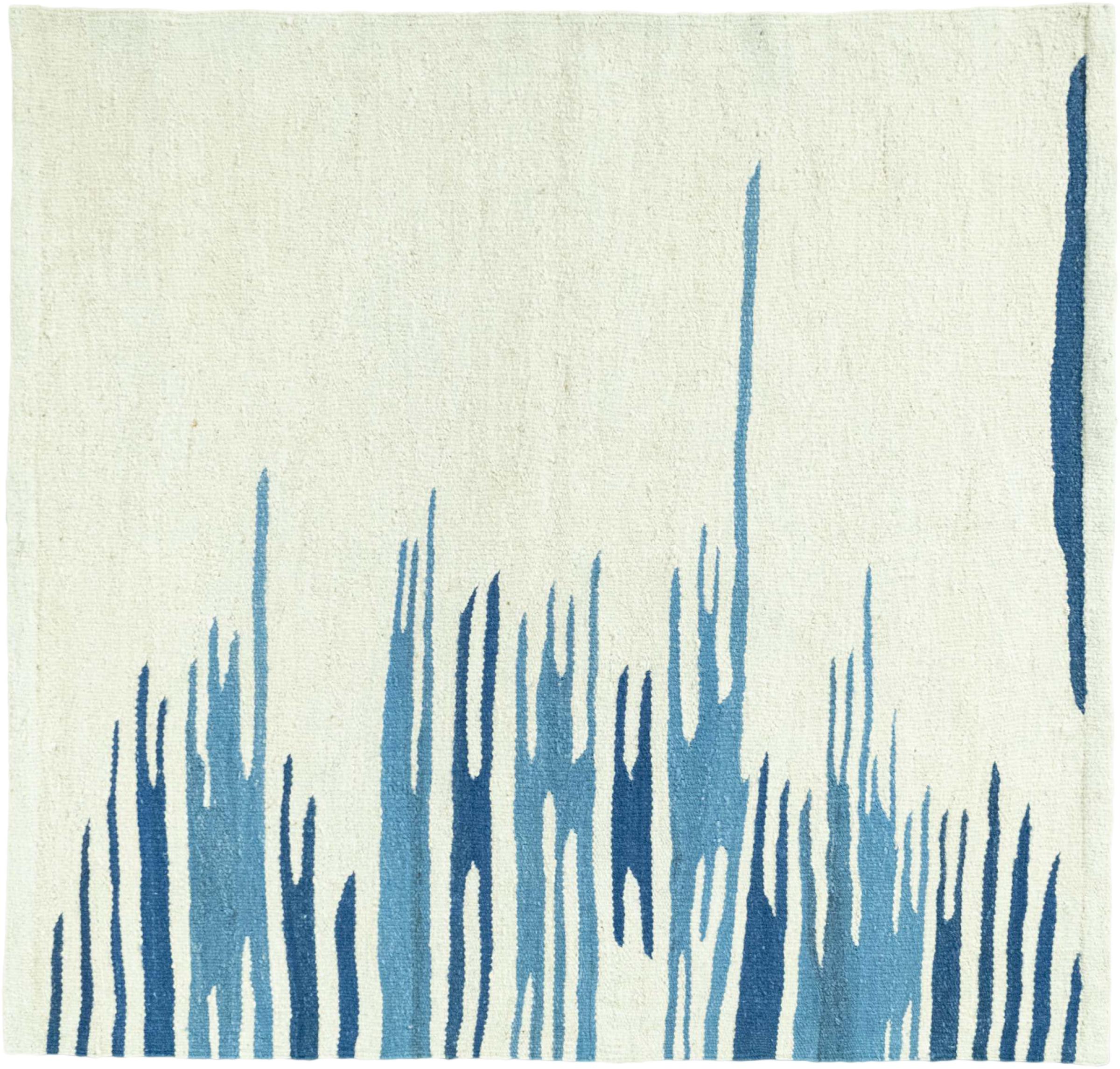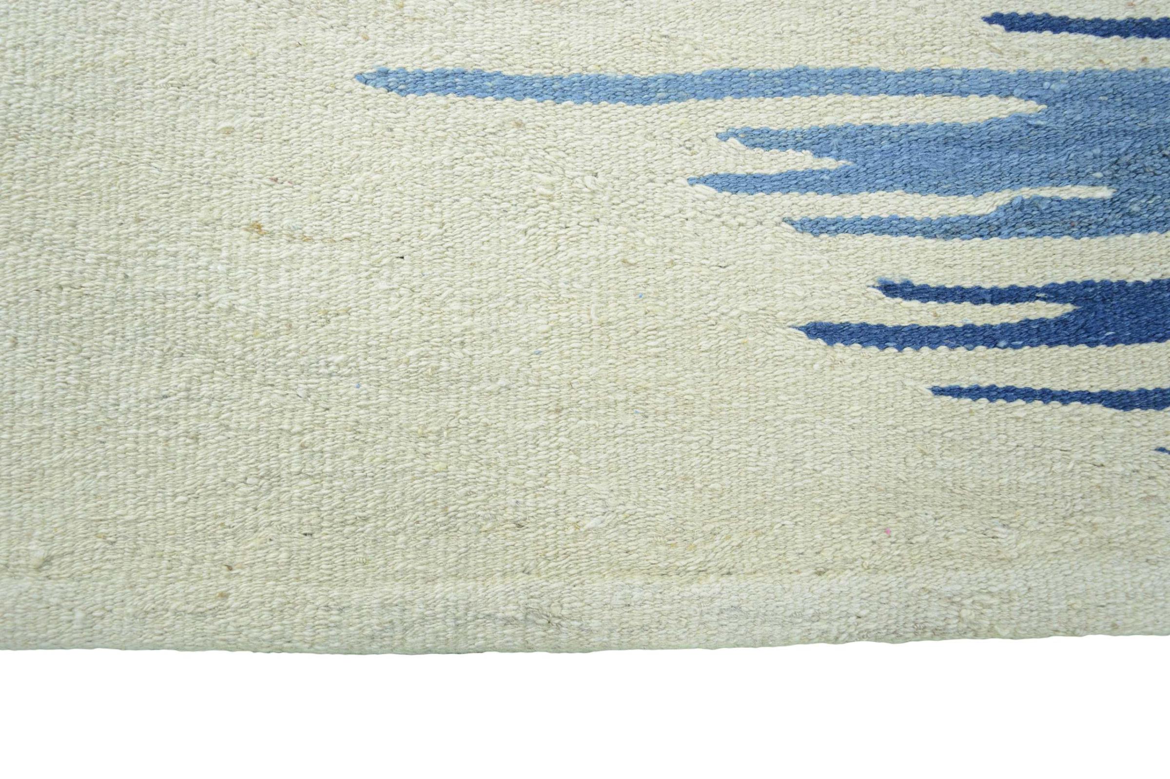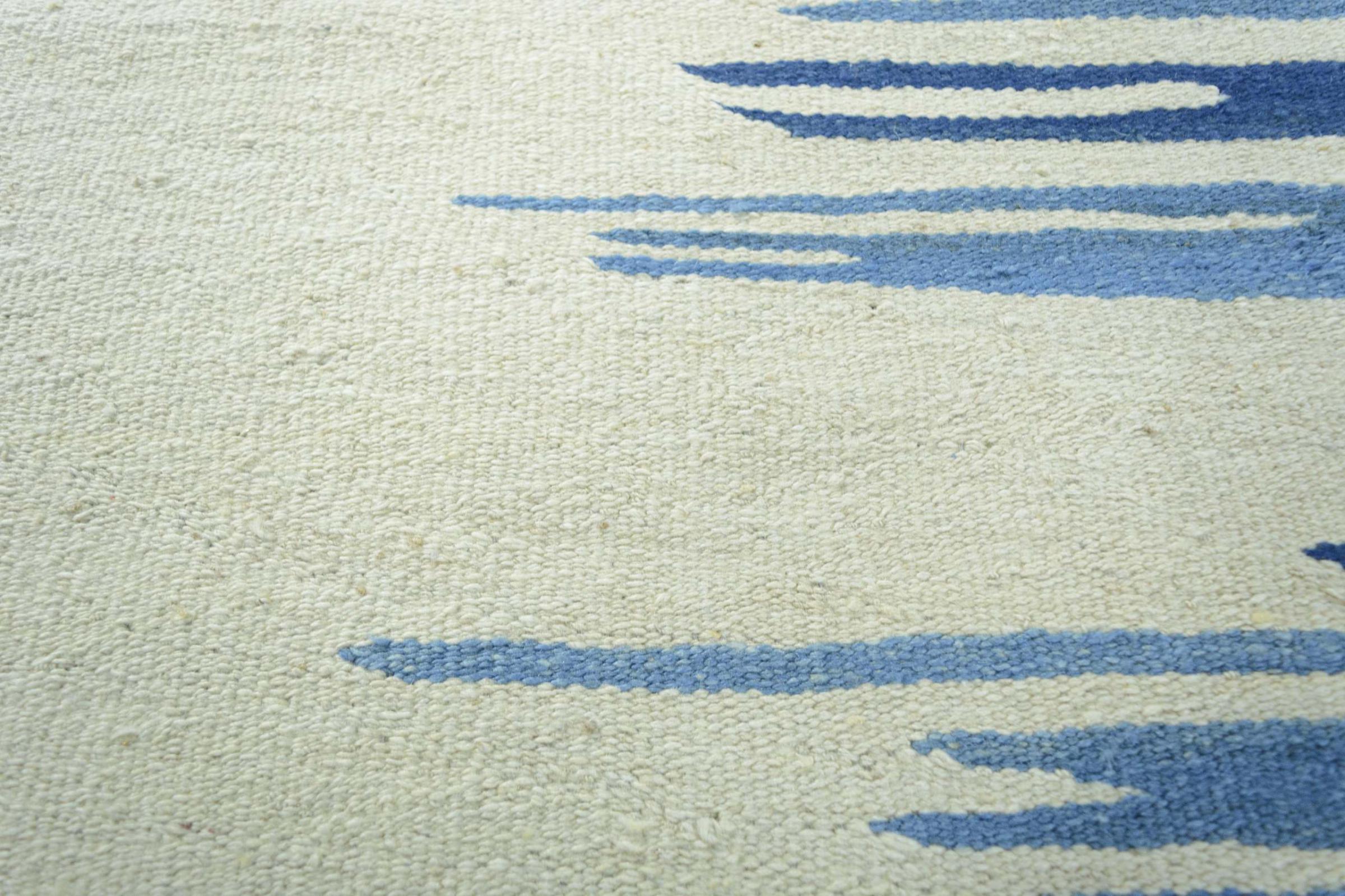 This rug was made as a flat weave by hand on a loom. Flatweave is the term used to describe rugs that have no pile. As the name promises, these rugs are woven and not knotted. This results in a flat rug with a structured surface. Flatweaves are not as soft and usually thinner than knotted rugs. At the same time they are much less complex to manufacture and can usually be laid out from both sides (front and back). Their patterns are usually geometric, which is determined by the fabric.