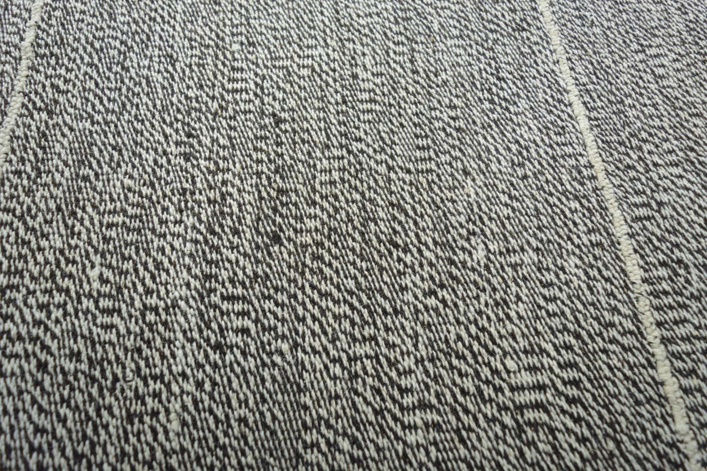 This rug was made as a flat weave by hand on a loom. Flatweave is the term used to describe rugs that have no pile. As the name promises, these rugs are woven and not knotted. This results in a flat rug with a structured surface. Flatweaves are not as soft and usually thinner than knotted rugs. At the same time they are much less complex to manufacture and can usually be laid out from both sides (front and back). Their patterns are usually geometric, which is determined by the fabric.
