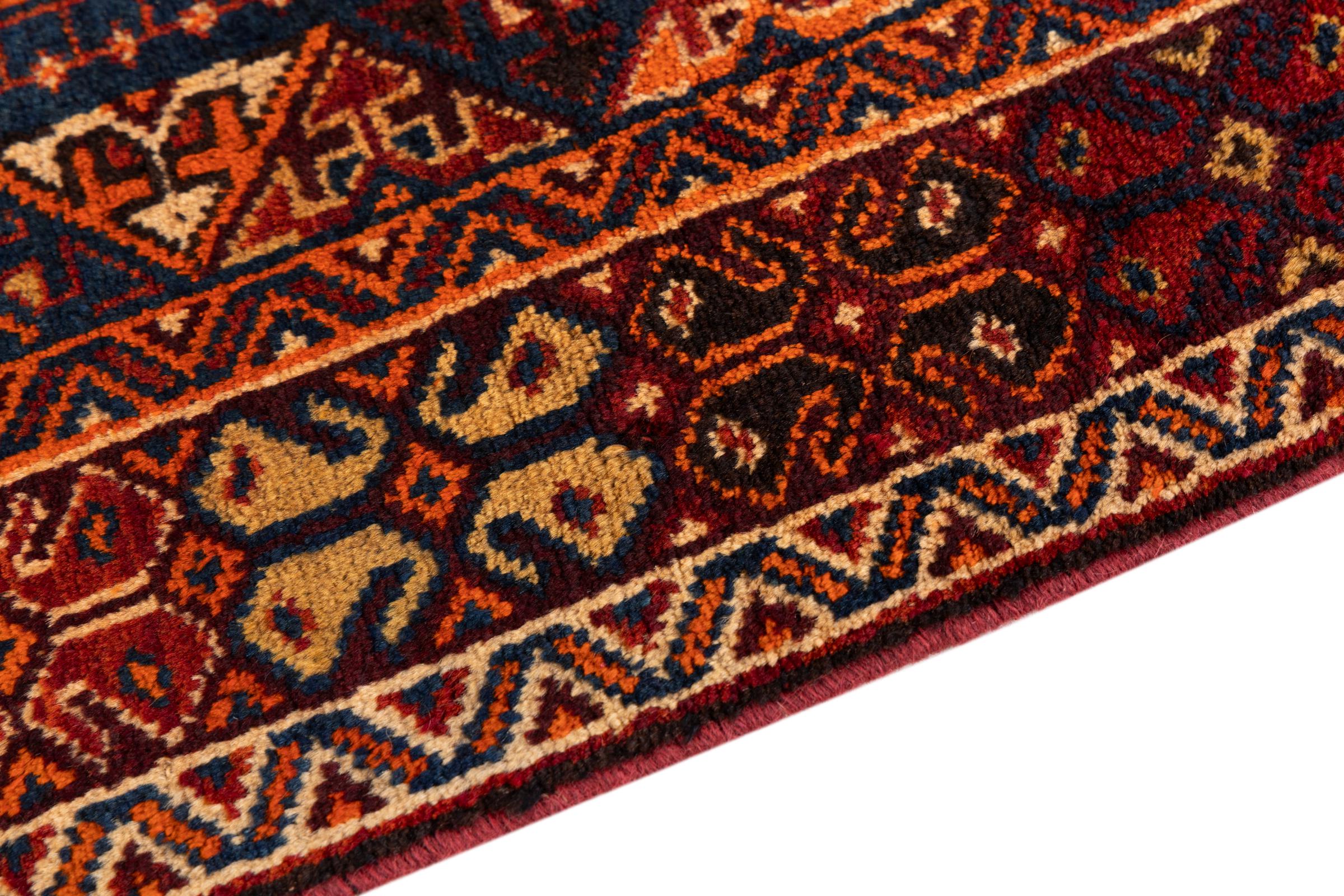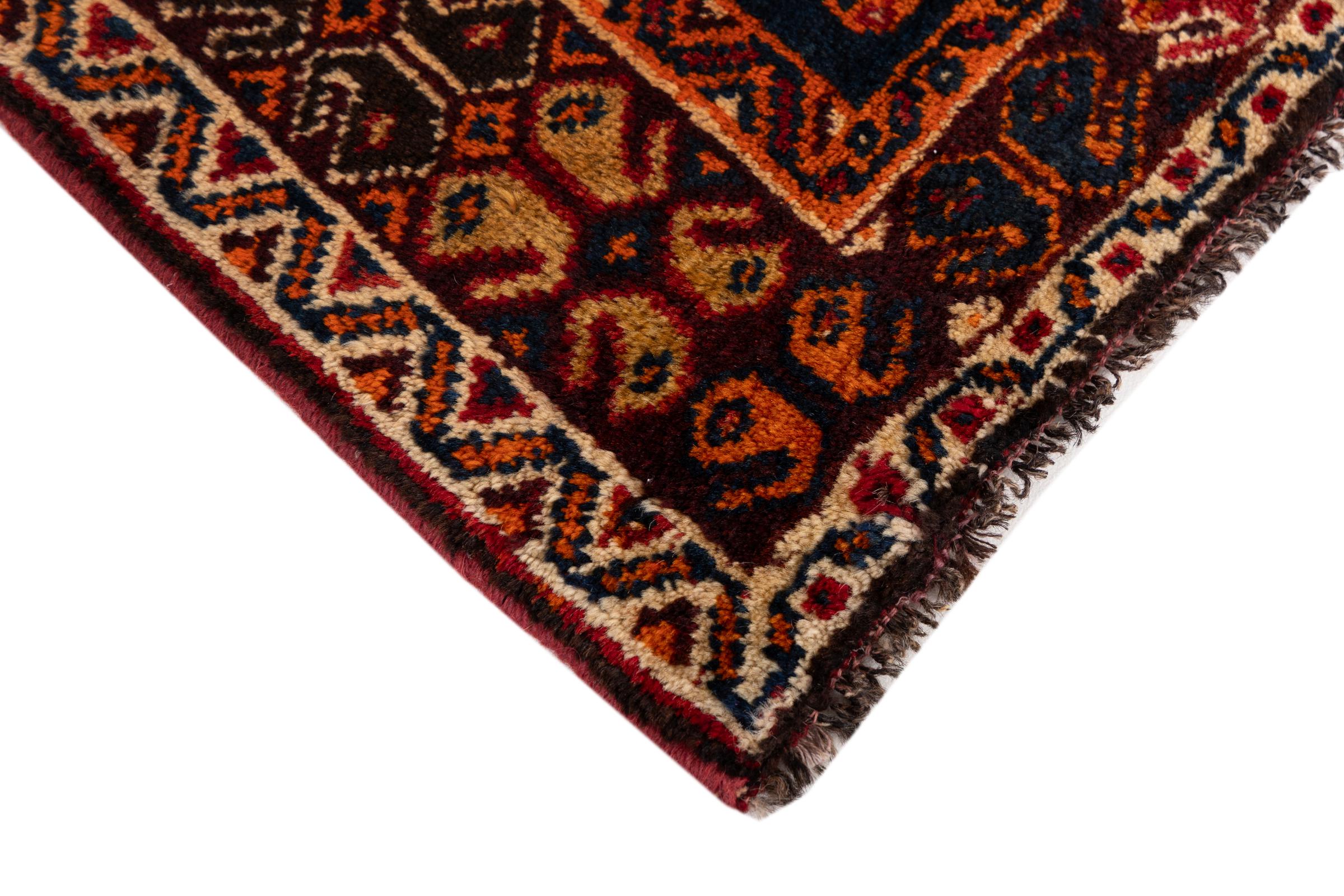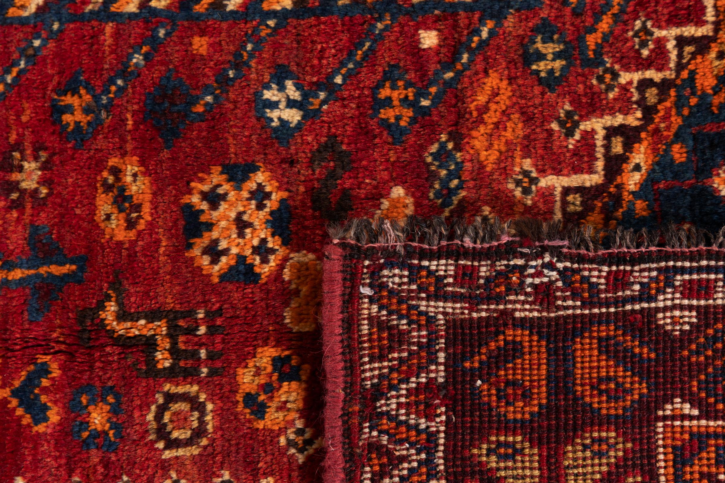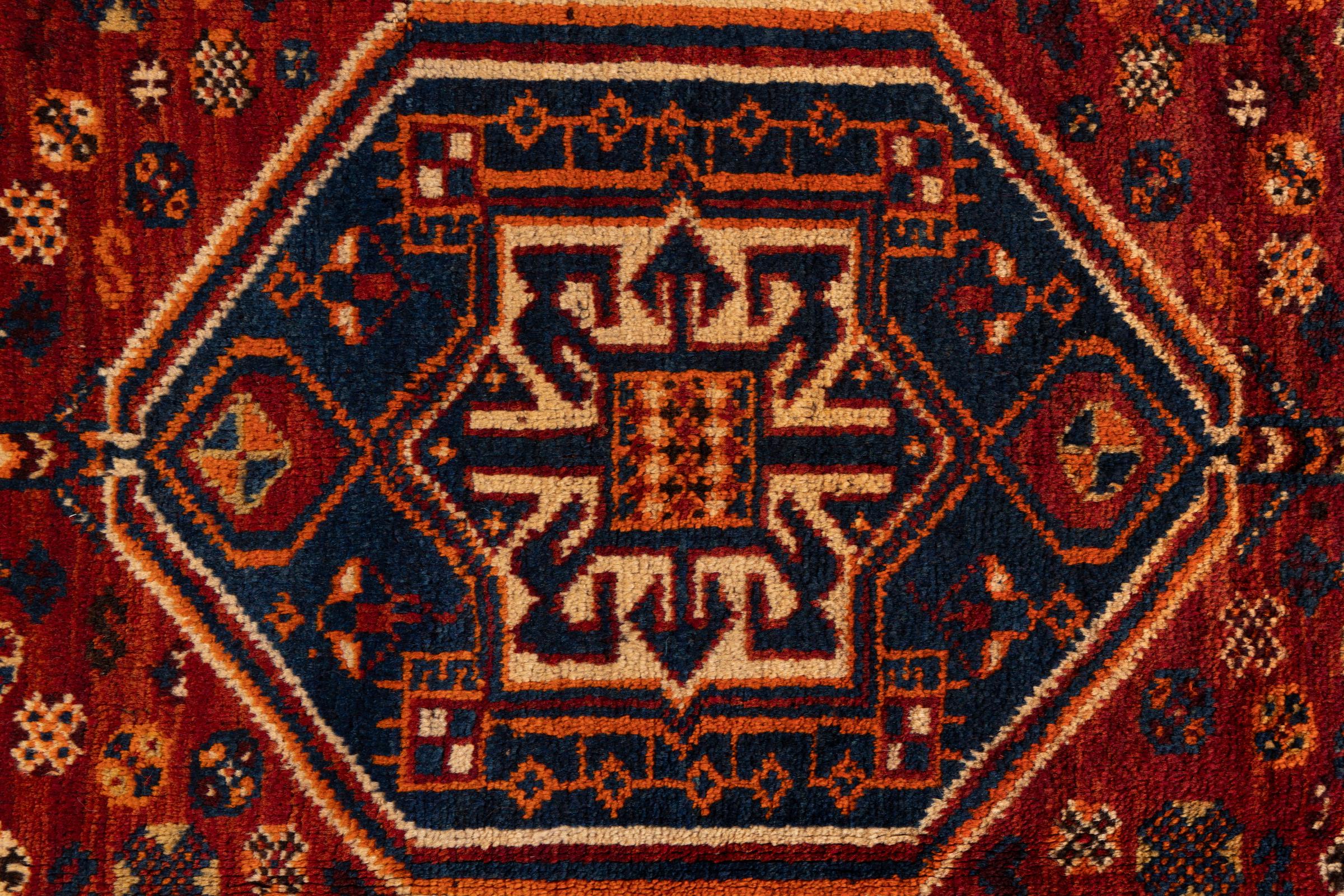 This rug belongs to village and nomadic rugs from Iran, formerly Persia. This type of rug is knotted by hand in smaller towns and villages in old tradition. Even nomads still knot Persian rugs in the open air. The rugs are knotted without a draft and completely from the mind. They are characterized by classical ornaments, which are arranged in straight and geometrical patterns. Thanks to their cultural-traditional origin, these rugs have a unique character that embodies ancient Persia.