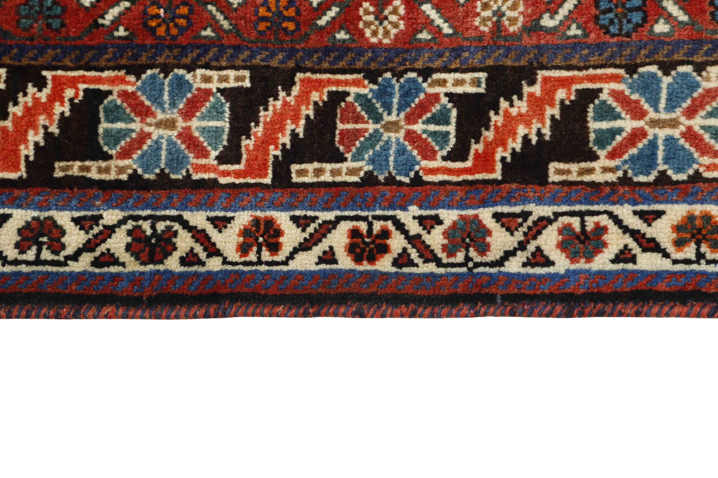 This rug belongs to village and nomadic rugs from Iran, formerly Persia. This type of rug is knotted by hand in smaller towns and villages in old tradition. Even nomads still knot Persian rugs in the open air. The rugs are knotted without a draft and completely from the mind. They are characterized by classical ornaments, which are arranged in straight and geometrical patterns. Thanks to their cultural-traditional origin, these rugs have a unique character that embodies ancient Persia.