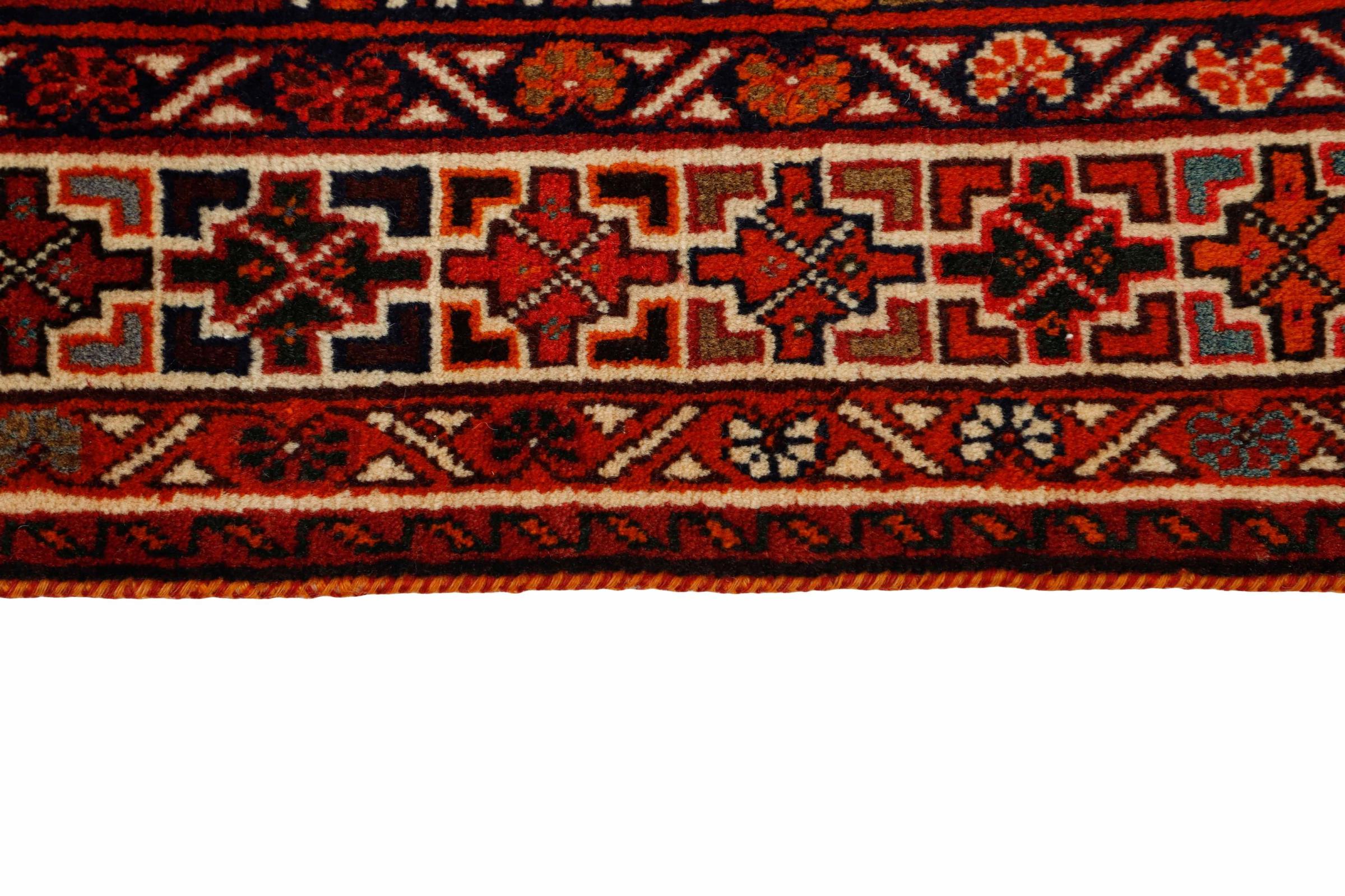 This rug belongs to village and nomadic rugs from Iran, formerly Persia. This type of rug is knotted by hand in smaller towns and villages in old tradition. Even nomads still knot Persian rugs in the open air. The rugs are knotted without a draft and completely from the mind. They are characterized by classical ornaments, which are arranged in straight and geometrical patterns. Thanks to their cultural-traditional origin, these rugs have a unique character that embodies ancient Persia.