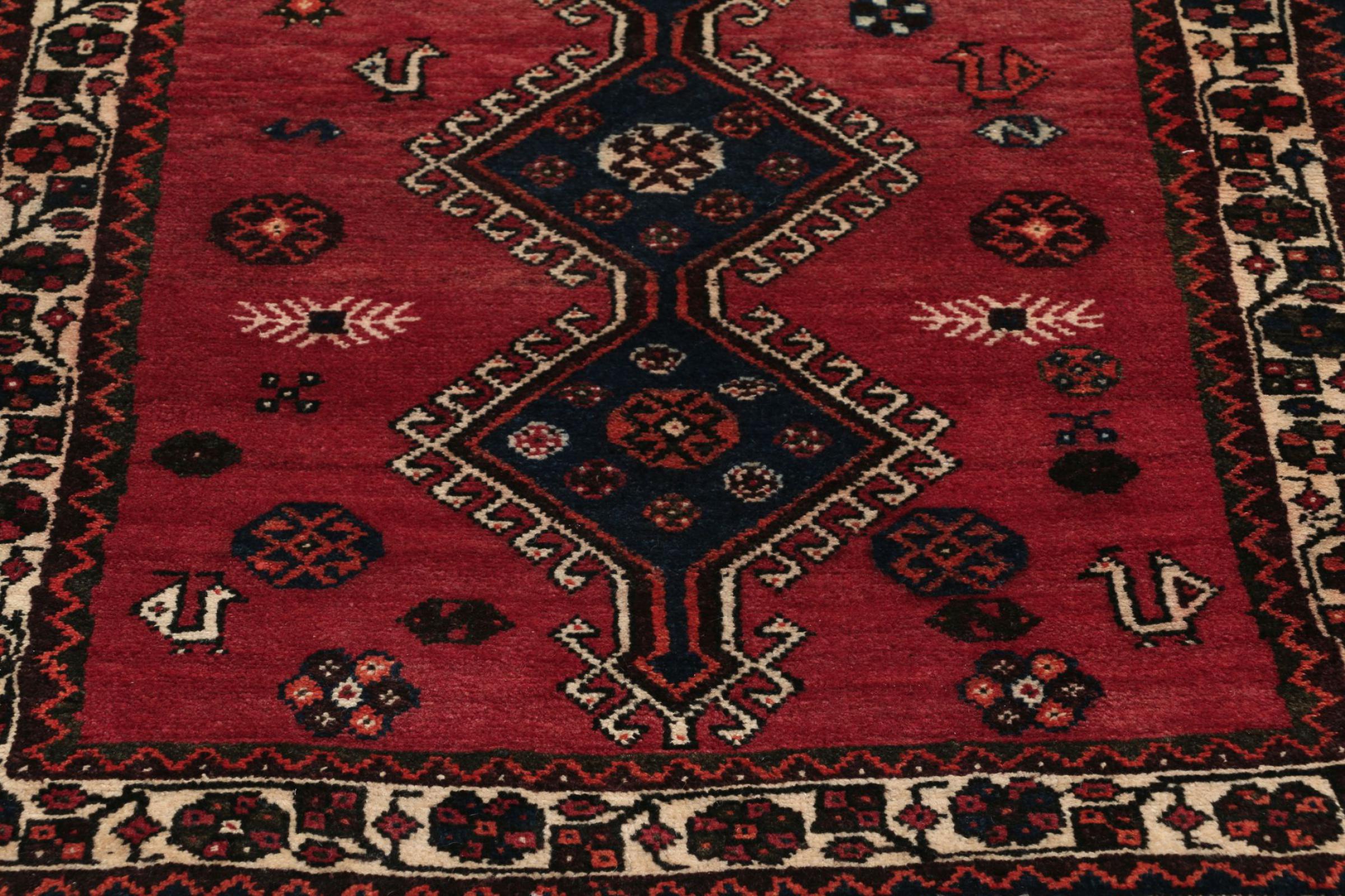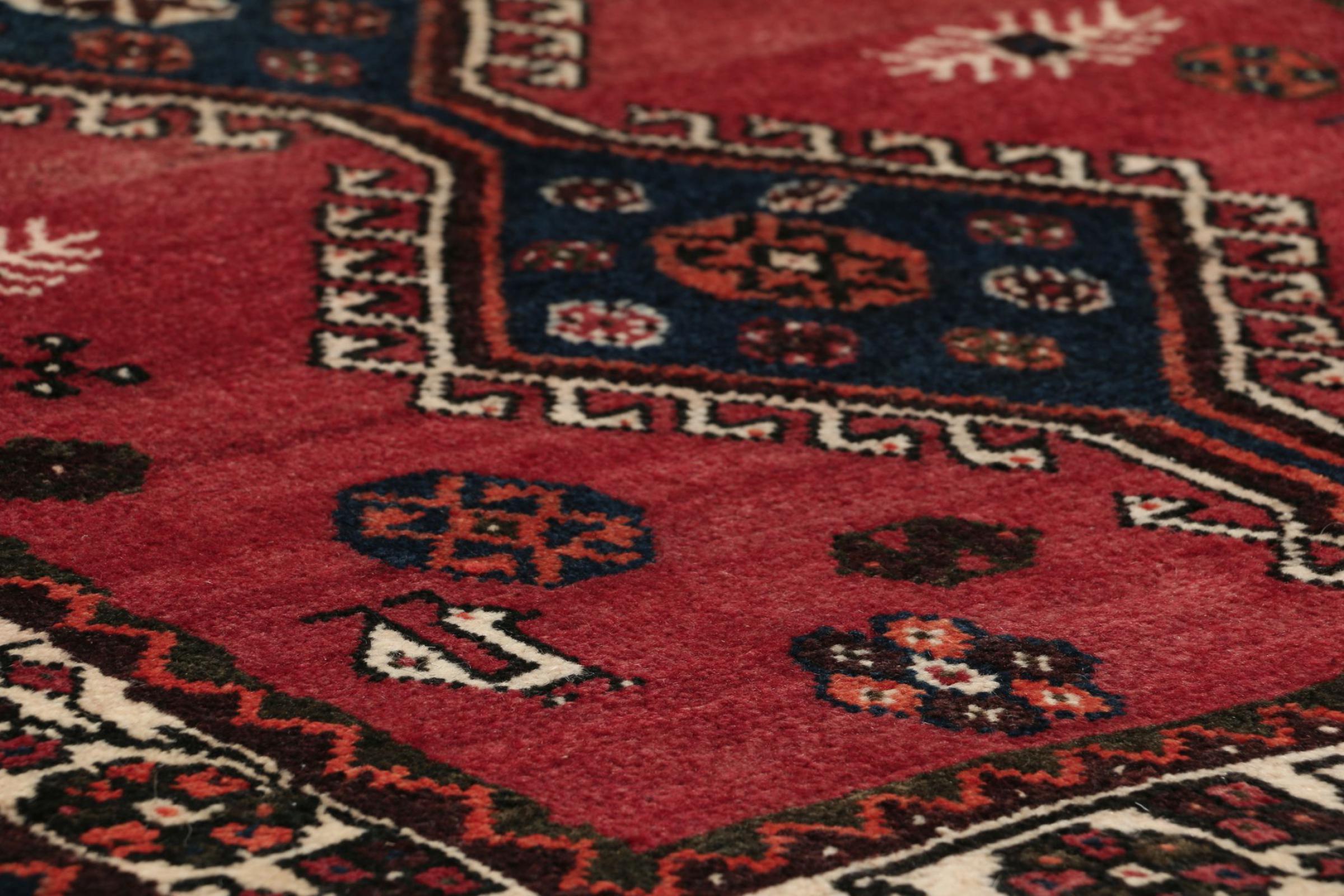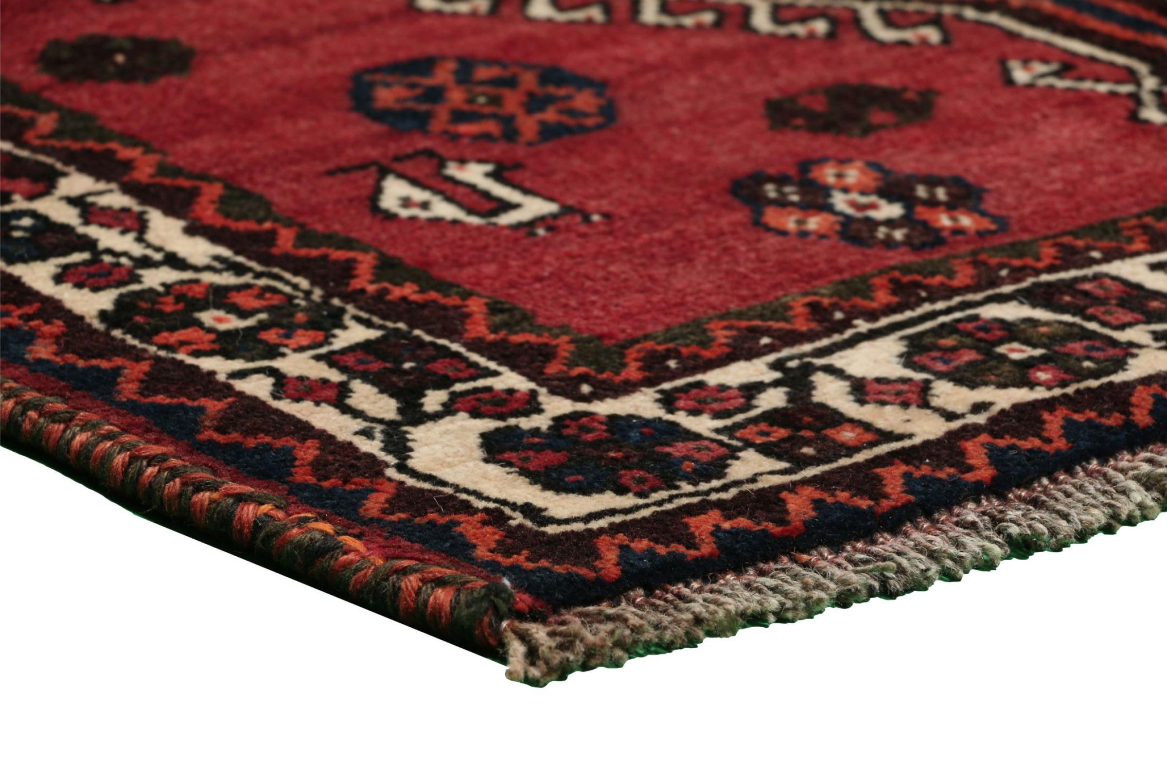 This rug belongs to village and nomadic rugs from Iran, formerly Persia. This type of rug is knotted by hand in smaller towns and villages in old tradition. Even nomads still knot Persian rugs in the open air. The rugs are knotted without a draft and completely from the mind. They are characterized by classical ornaments, which are arranged in straight and geometrical patterns. Thanks to their cultural-traditional origin, these rugs have a unique character that embodies ancient Persia.