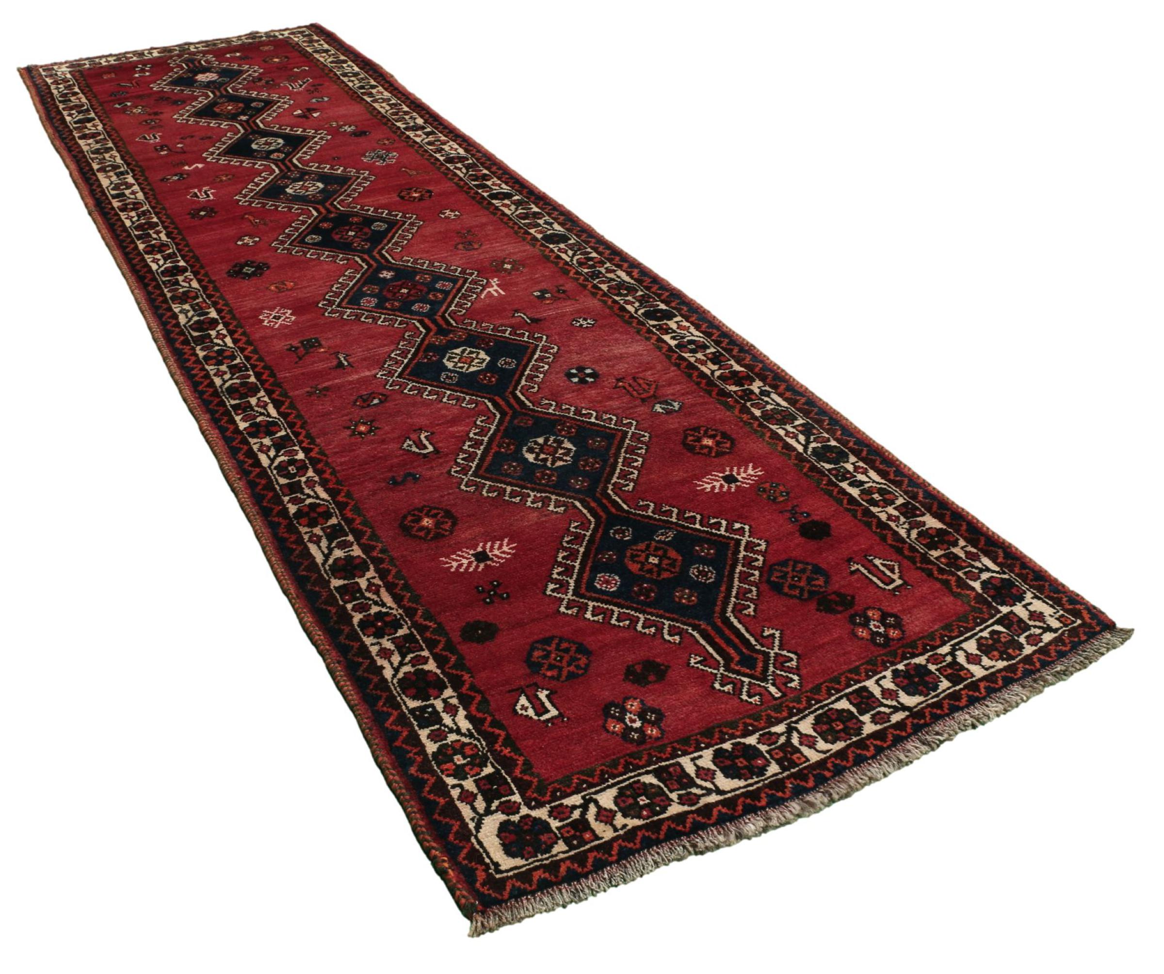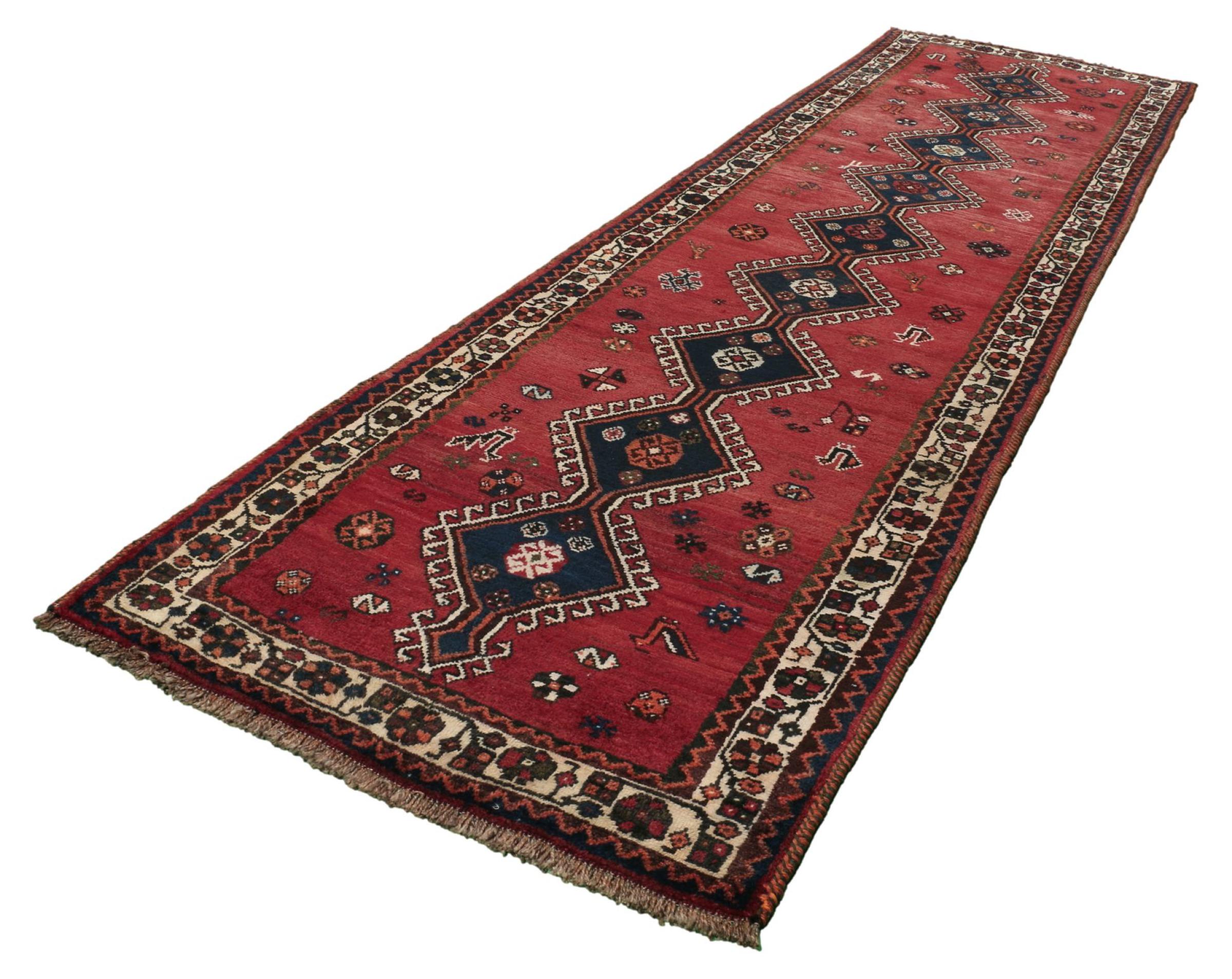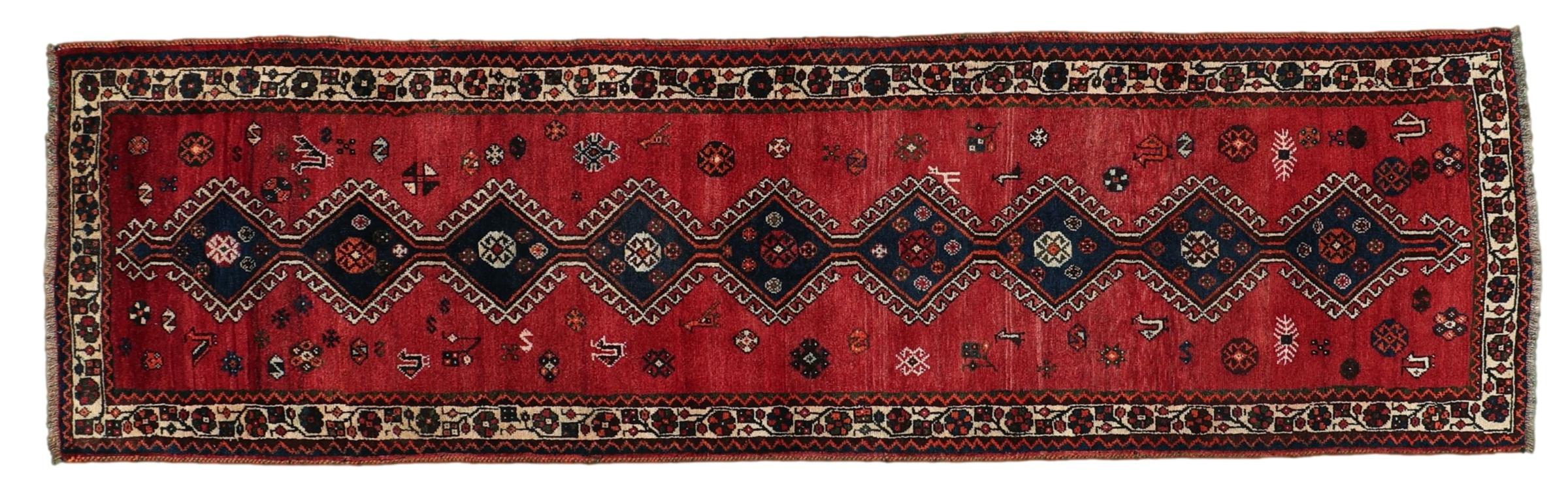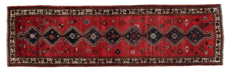 Carpet ID: 309548004077974 Size: 321x91 cm Thickness: ap. 12 mm Knot density: 200 000 - 250 000 / m² Manufacturing: Knotted by hand Pile: Handspun wool Warp: Sheep wool Origin: Persia Age: New Weight: ap. 10 kg Also know as Qashqai, Gaschgai, Gashghai, Kashgai In stock: Unique - Only 1 in stock