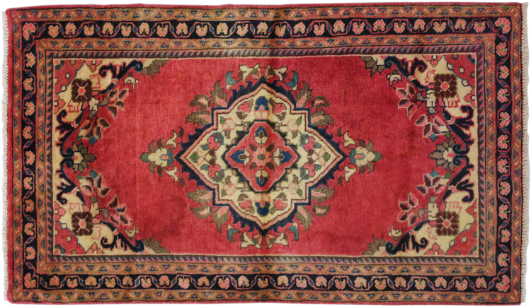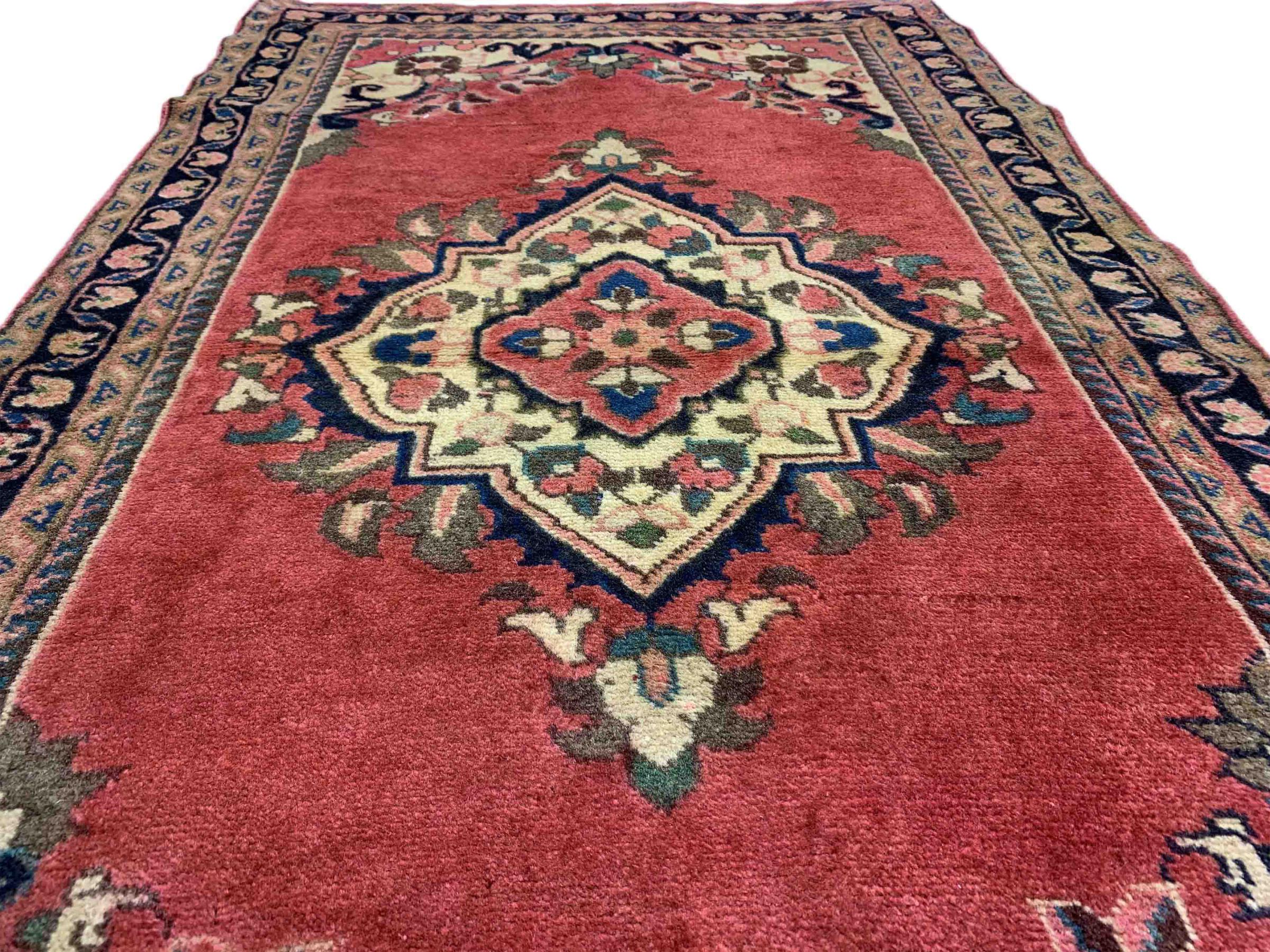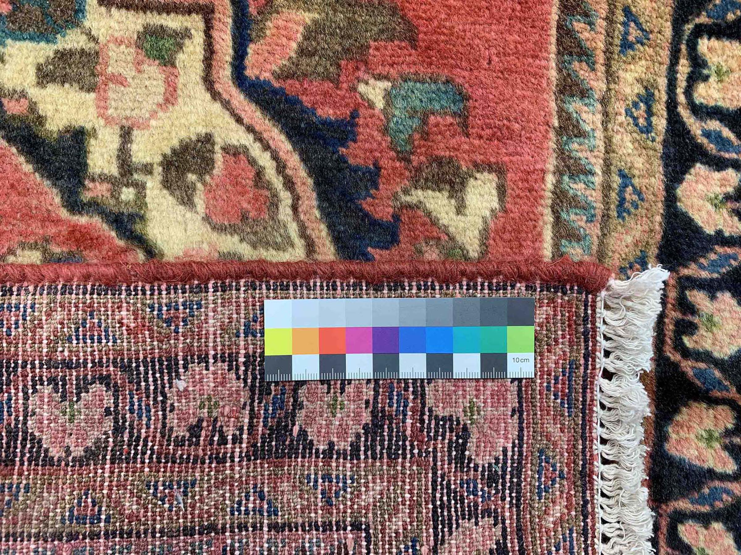 Carpet ID: 317473004233400 Size: 129x72 cm Thickness: ap. 12 mm Knot density: 128 000 - 160 000 / m² Manufacturing: Knotted by hand Pile: Handspun wool Warp: Cotton Origin: Persia Age: New Weight: ap. 4 kg Also know as Huseinabad In stock: Unique - Only 1 in stock