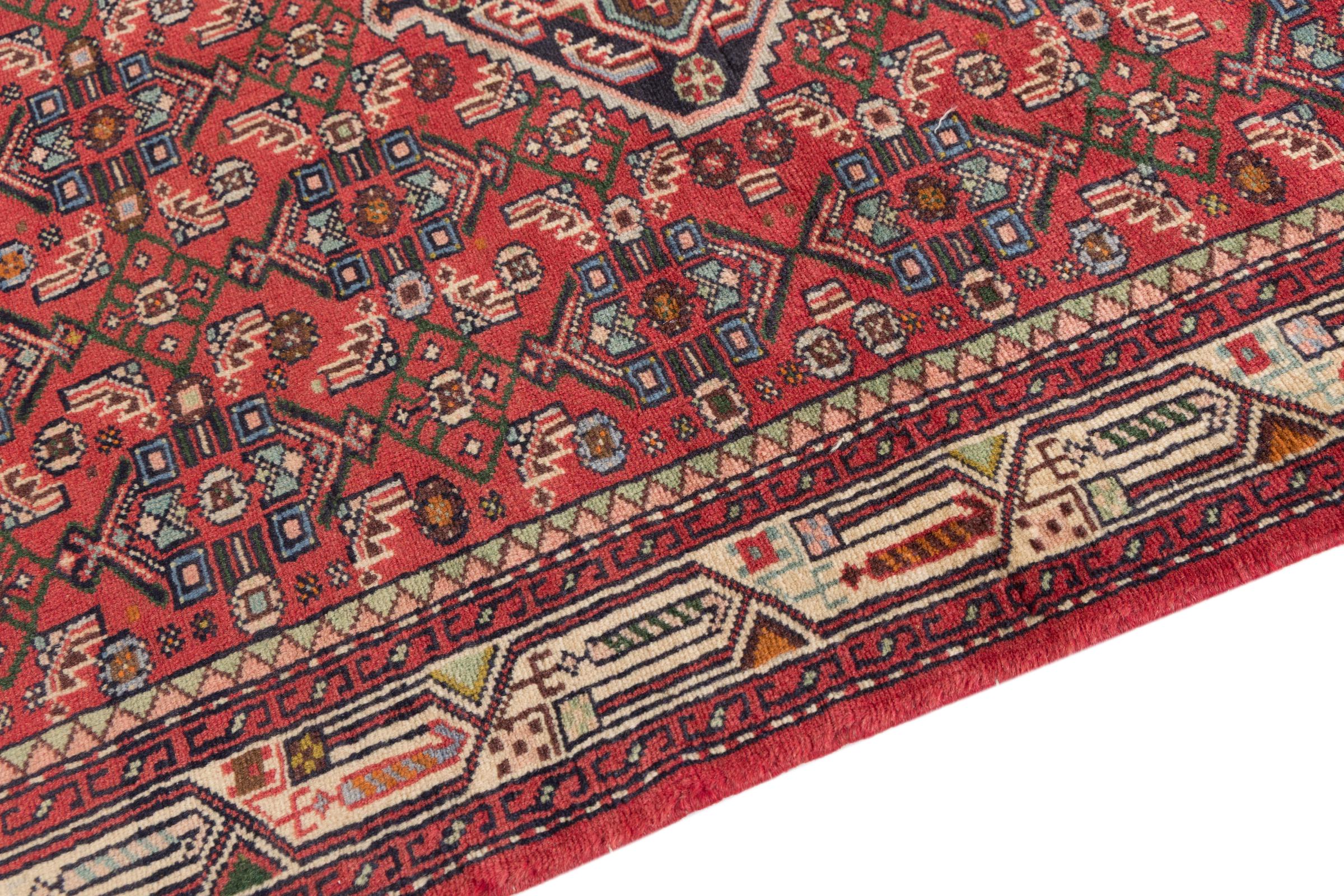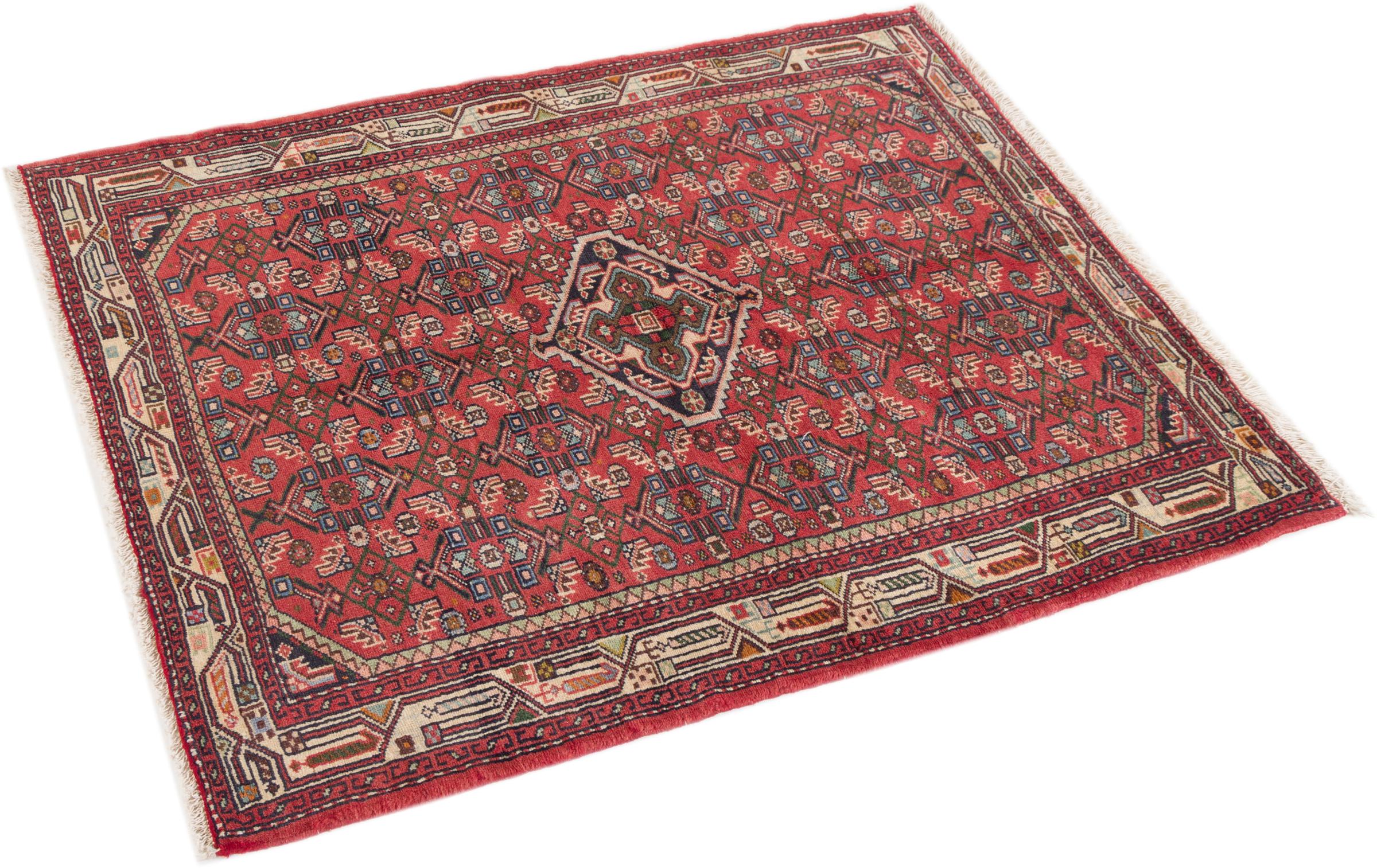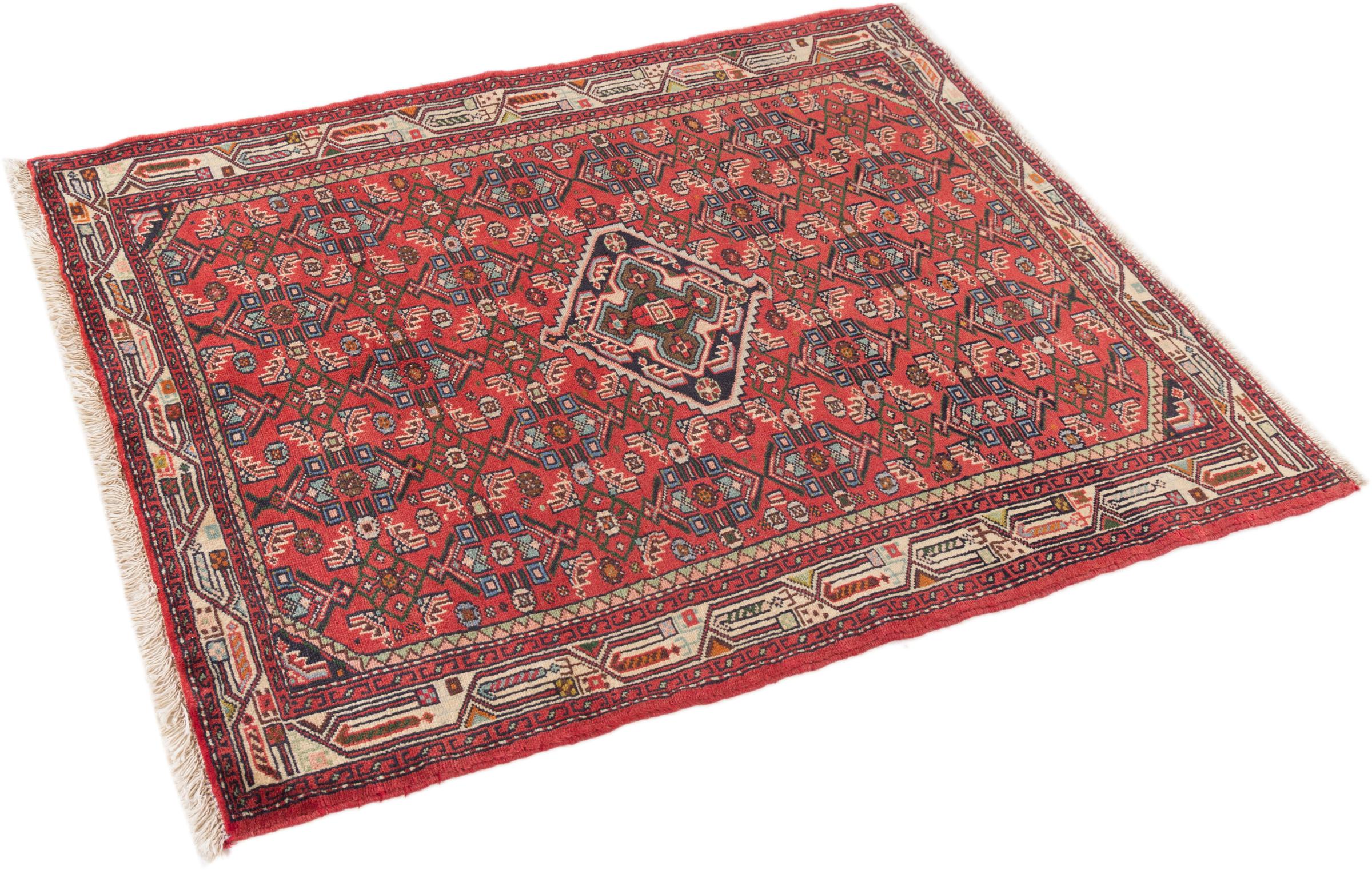 This rug belongs to village and nomadic rugs from Iran, formerly Persia. This type of rug is knotted by hand in smaller towns and villages in old tradition. Even nomads still knot Persian rugs in the open air. The rugs are knotted without a draft and completely from the mind. They are characterized by classical ornaments, which are arranged in straight and geometrical patterns. Thanks to their cultural-traditional origin, these rugs have a unique character that embodies ancient Persia.