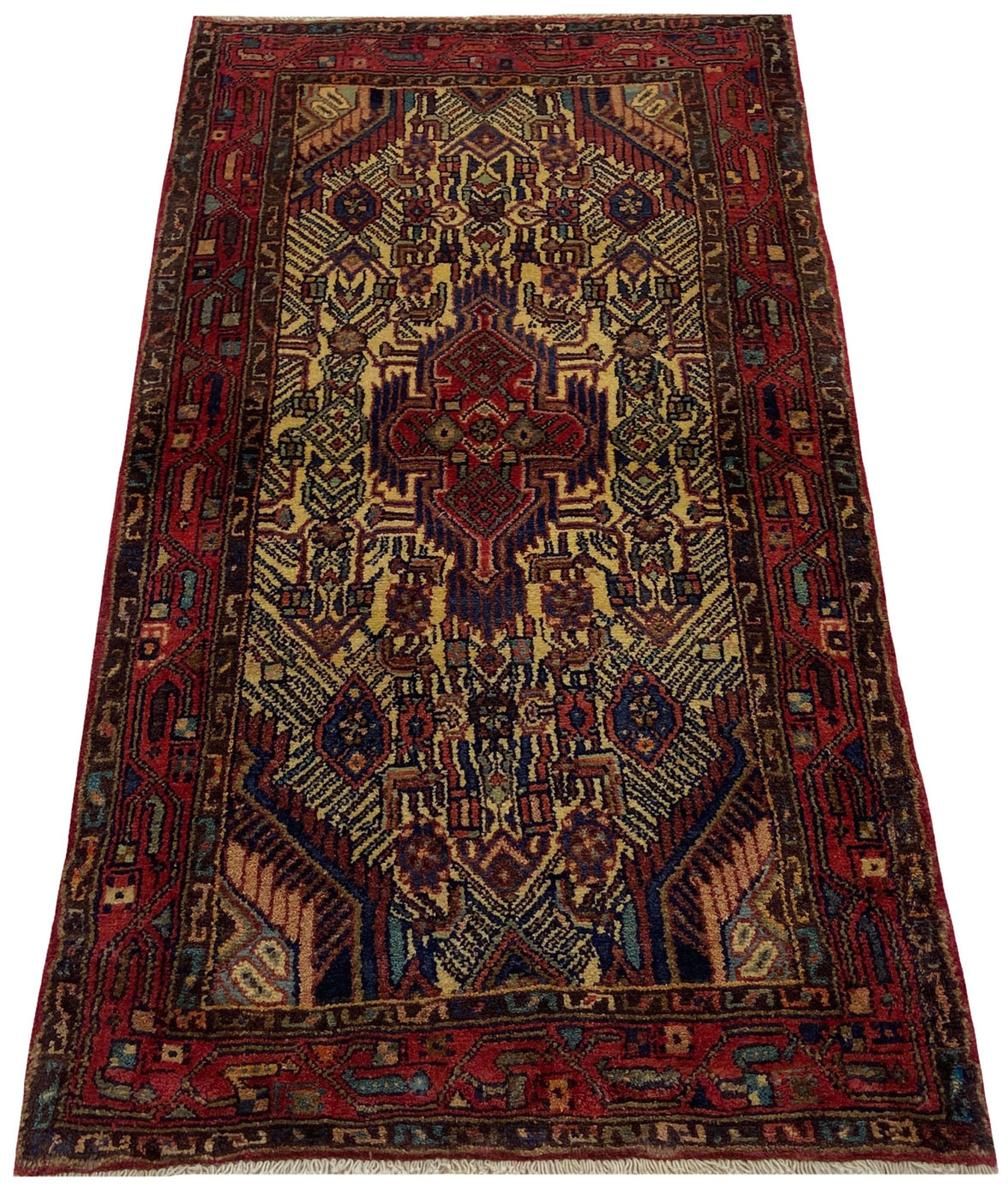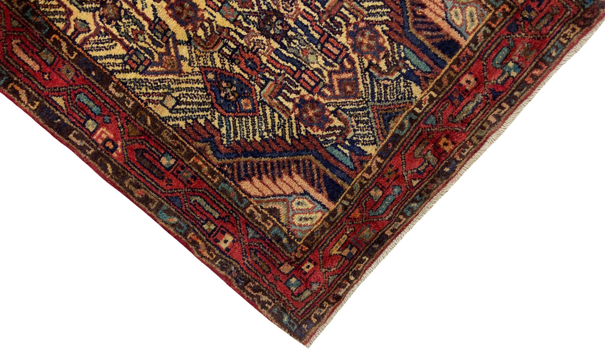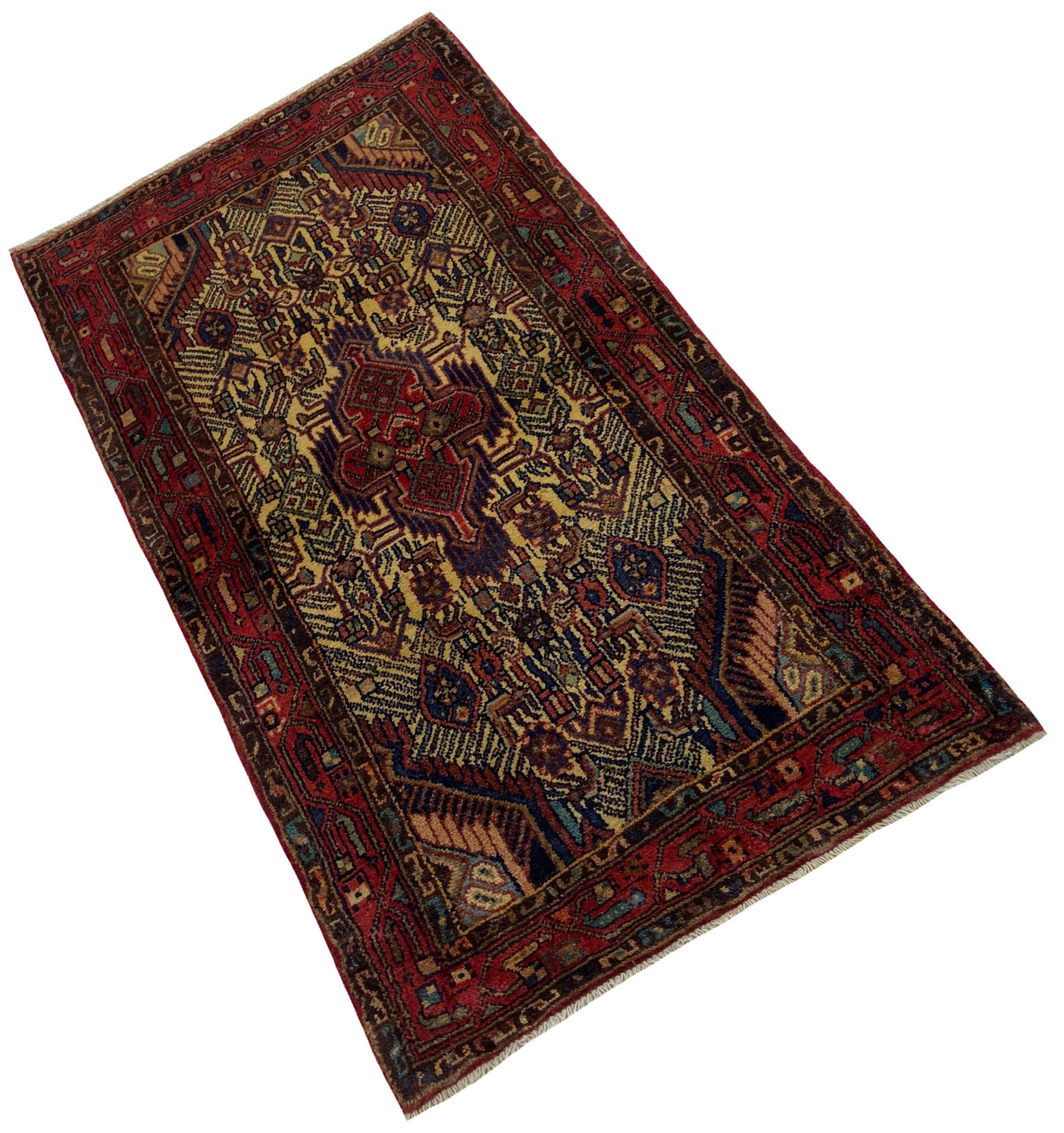 This rug belongs to village and nomadic rugs from Iran, formerly Persia. This type of rug is knotted by hand in smaller towns and villages in old tradition. Even nomads still knot Persian rugs in the open air. The rugs are knotted without a draft and completely from the mind. They are characterized by classical ornaments, which are arranged in straight and geometrical patterns. Thanks to their cultural-traditional origin, these rugs have a unique character that embodies ancient Persia.