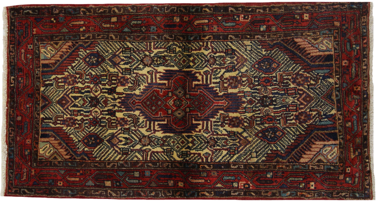 Carpet ID: 318319005687363 Size: 152x83 cm Thickness: ap. 12 mm Knot density: 128 000 - 160 000 / m² Manufacturing: Knotted by hand Pile: Handspun wool Warp: Cotton Origin: Persia Age: New Weight: ap. 5 kg Also know as Huseinabad In stock: Unique - Only 1 in stock