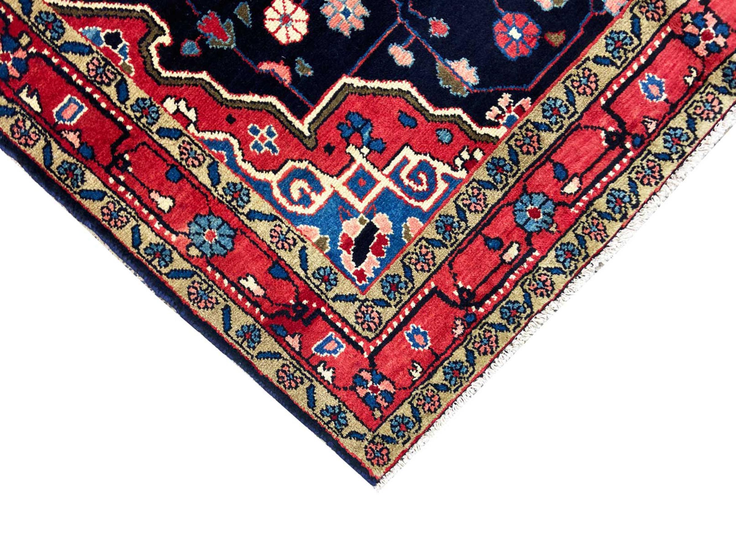 This rug belongs to village and nomadic rugs from Iran, formerly Persia. This type of rug is knotted by hand in smaller towns and villages in old tradition. Even nomads still knot Persian rugs in the open air. The rugs are knotted without a draft and completely from the mind. They are characterized by classical ornaments, which are arranged in straight and geometrical patterns. Thanks to their cultural-traditional origin, these rugs have a unique character that embodies ancient Persia.