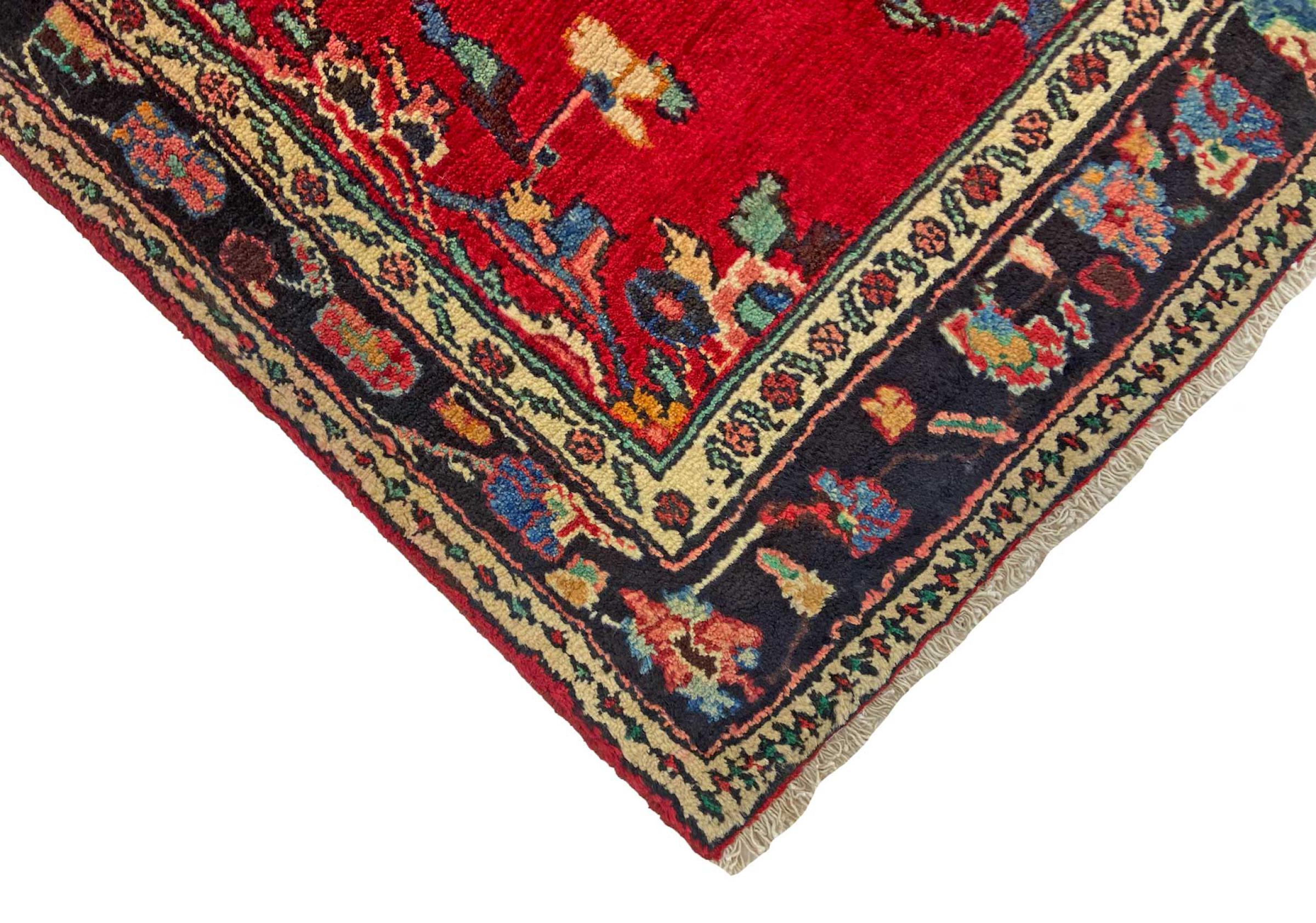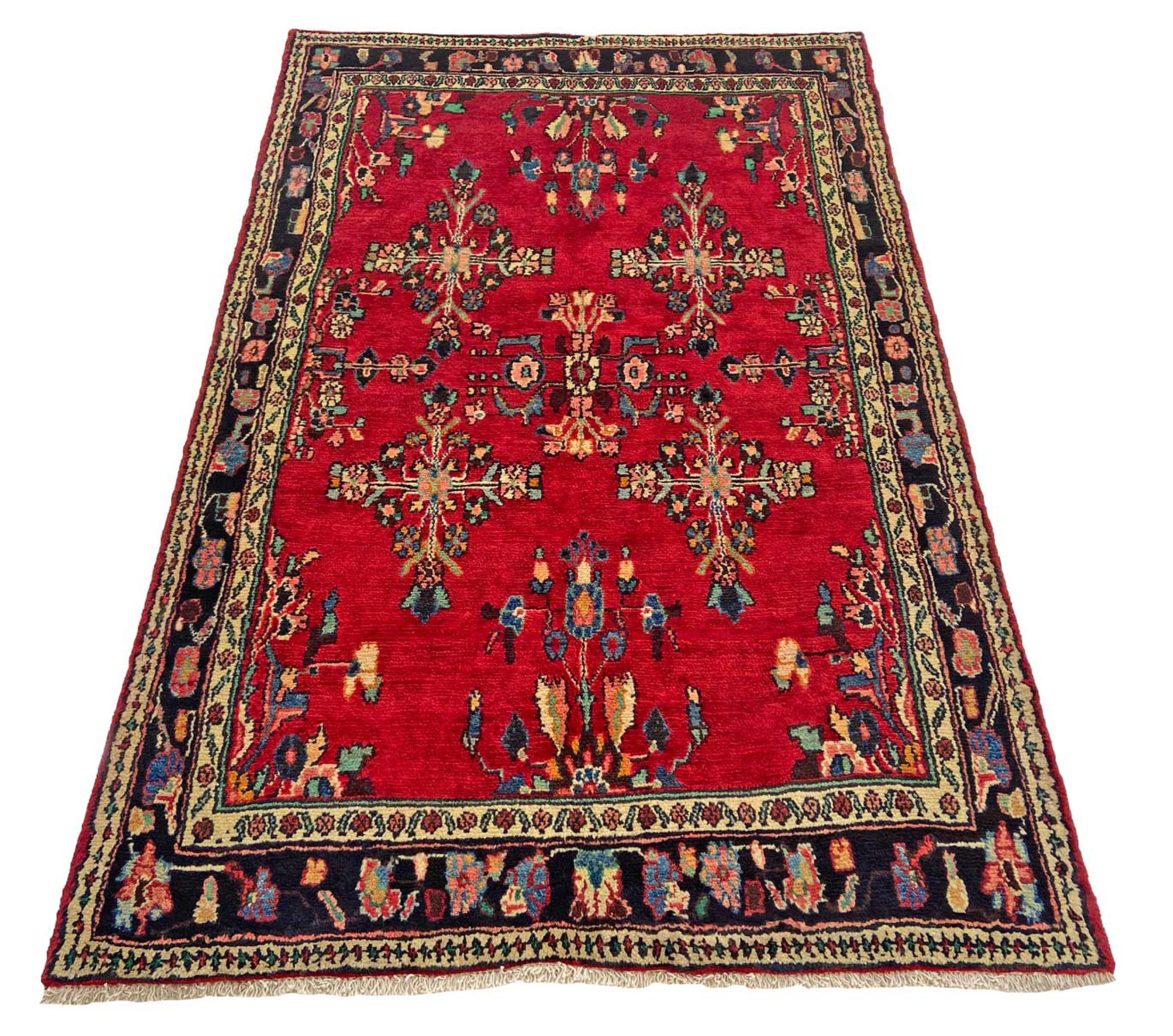 This rug belongs to village and nomadic rugs from Iran, formerly Persia. This type of rug is knotted by hand in smaller towns and villages in old tradition. Even nomads still knot Persian rugs in the open air. The rugs are knotted without a draft and completely from the mind. They are characterized by classical ornaments, which are arranged in straight and geometrical patterns. Thanks to their cultural-traditional origin, these rugs have a unique character that embodies ancient Persia.