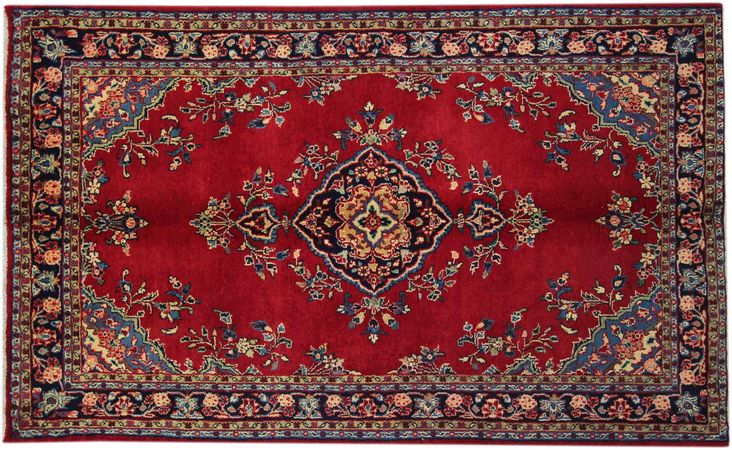 Carpet ID: 318237003928464 Size: 216x136 cm Thickness: ap. 12 mm Knot density: 128 000 - 160 000 / m² Manufacturing: Knotted by hand Pile: Handspun wool Warp: Cotton Origin: Persia Age: New Weight: ap. 12 kg Also know as Huseinabad In stock: Unique - Only 1 in stock