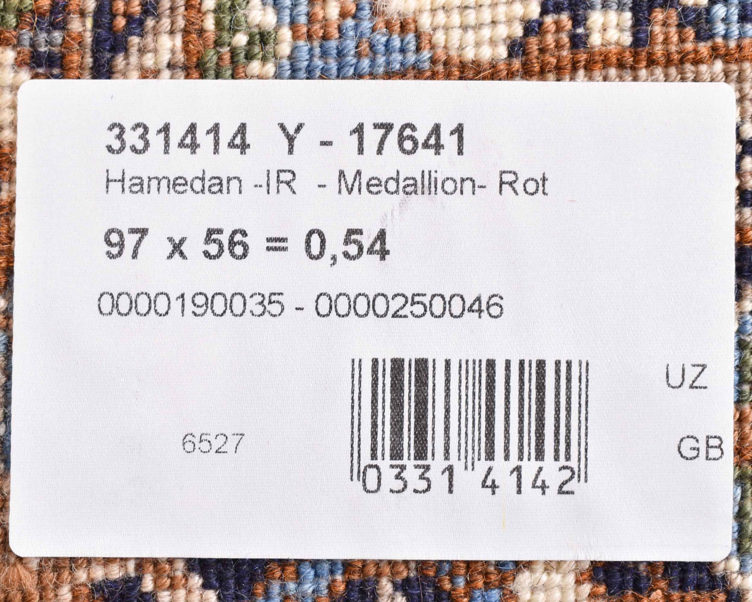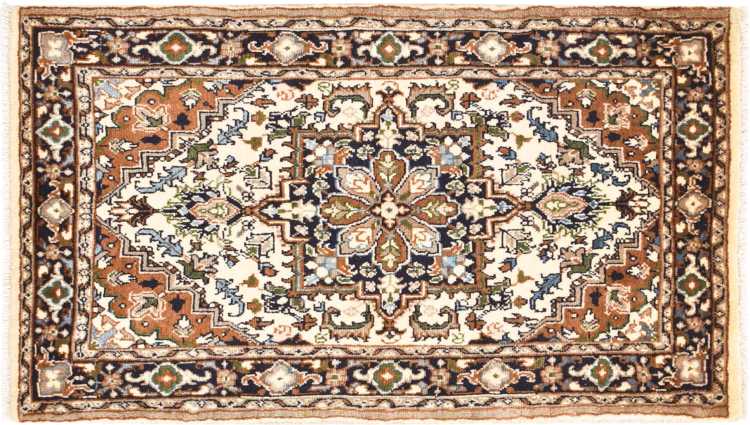 Carpet ID: 301072005024321 Size: 98x55 cm Thickness: ap. 8 mm Knot density: 128 000 - 160 000 / m² Manufacturing: Knotted by hand Pile: Handspun wool Warp: Cotton Origin: Persia Age: New Weight: ap. 2 kg Also know as Huseinabad In stock: Unique - Only 1 in stock