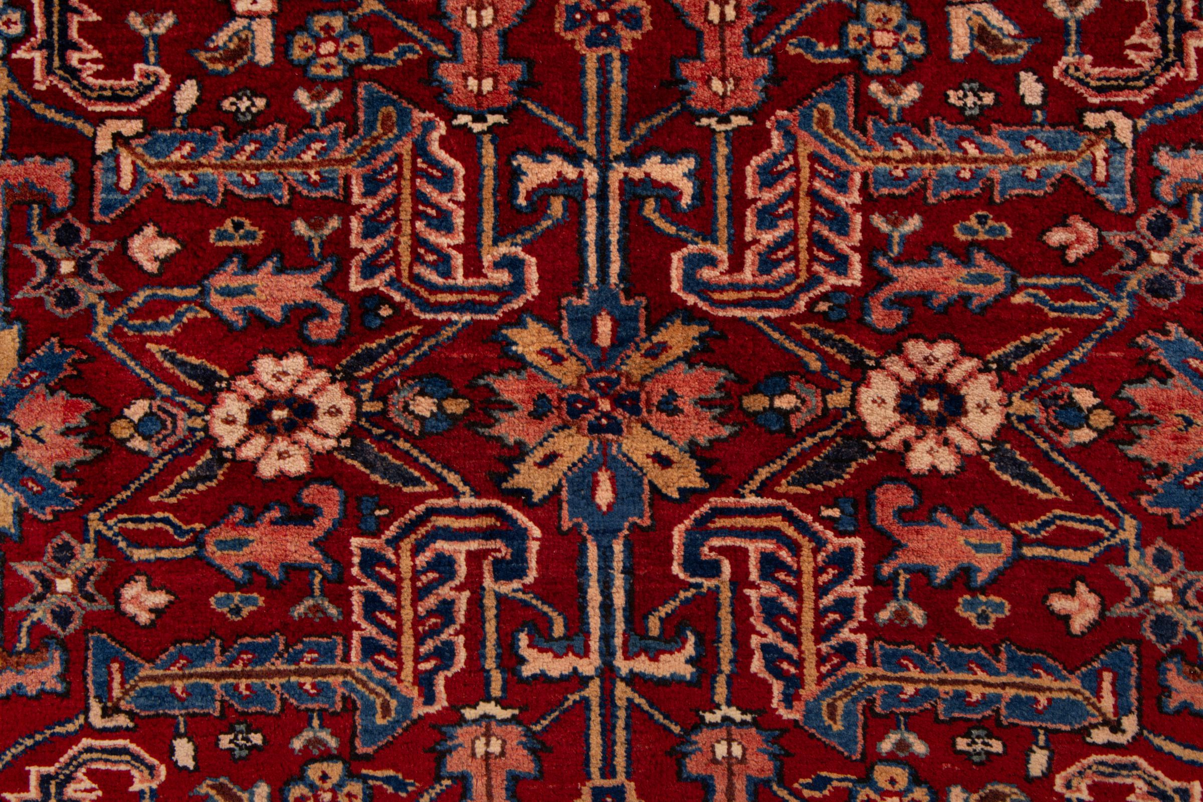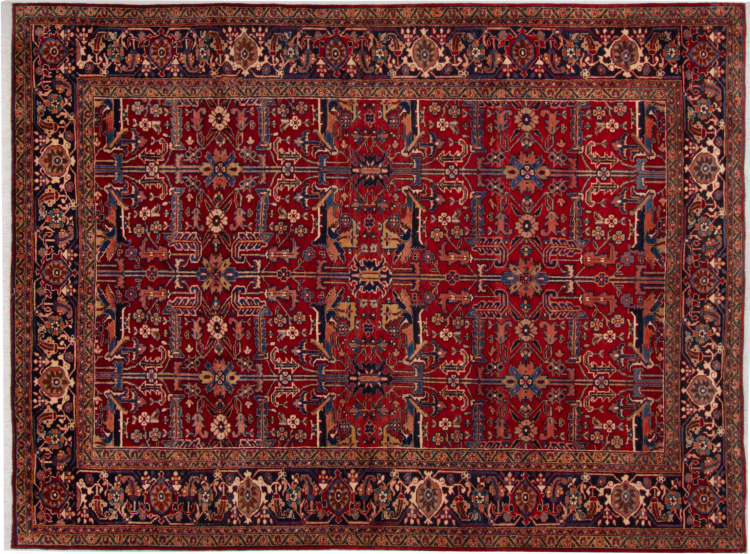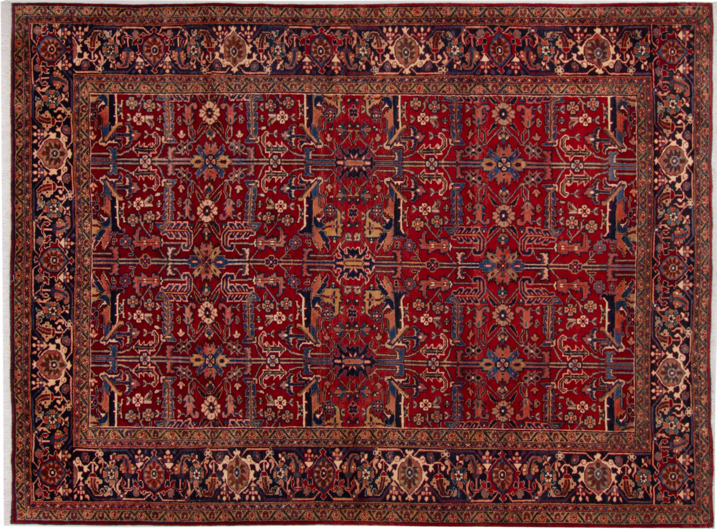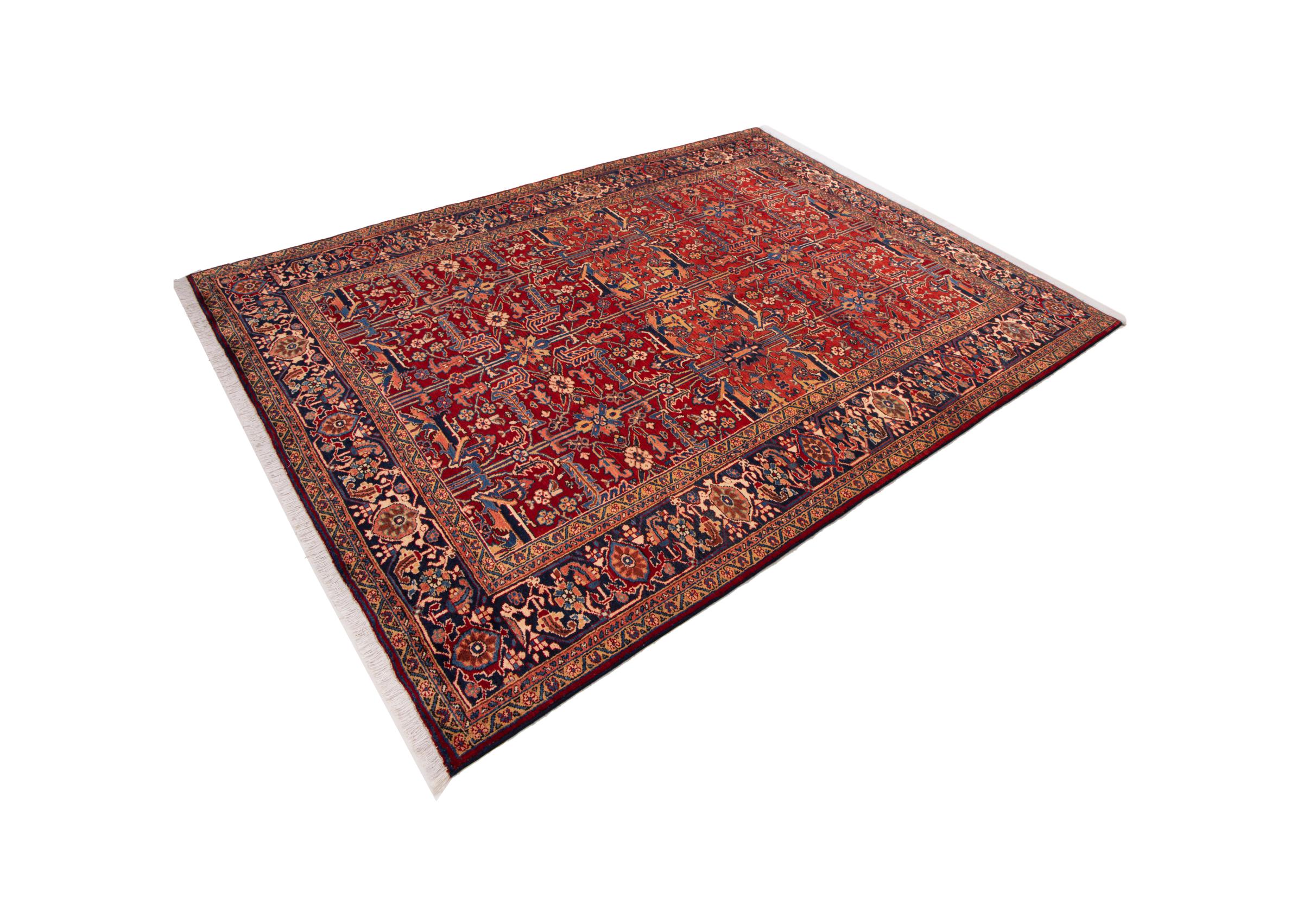 This Heriz carpet is a beautiful example of Persian carpet craftsmanship. Its rustic design is a testament to its durability. It was hand-knotted in the city of Heriz, which is located near Tabriz in north-west Iran. Anyone looking for a Persian rug that will give pleasure for a long time and is highly modern will love this Heriz. The ornaments of Heriz rugs are extremely popular today and are seen as very modern. You will never give up a rug like this again.