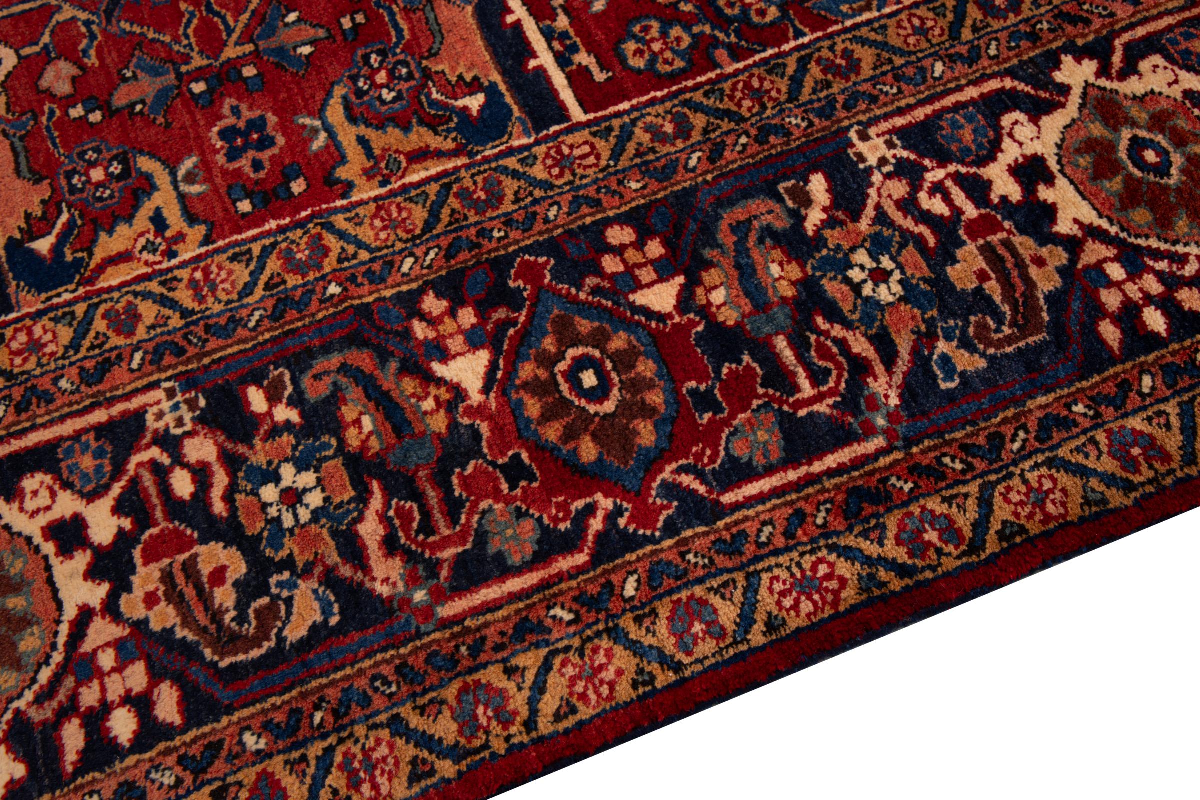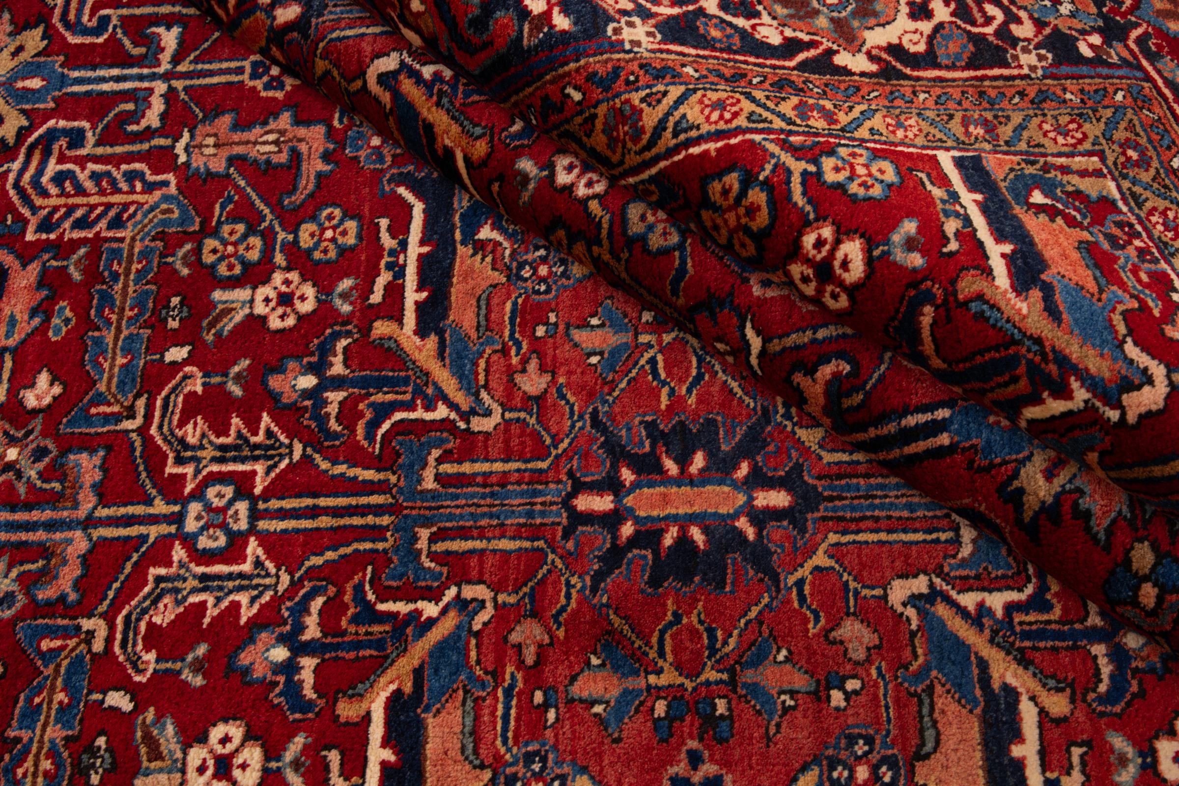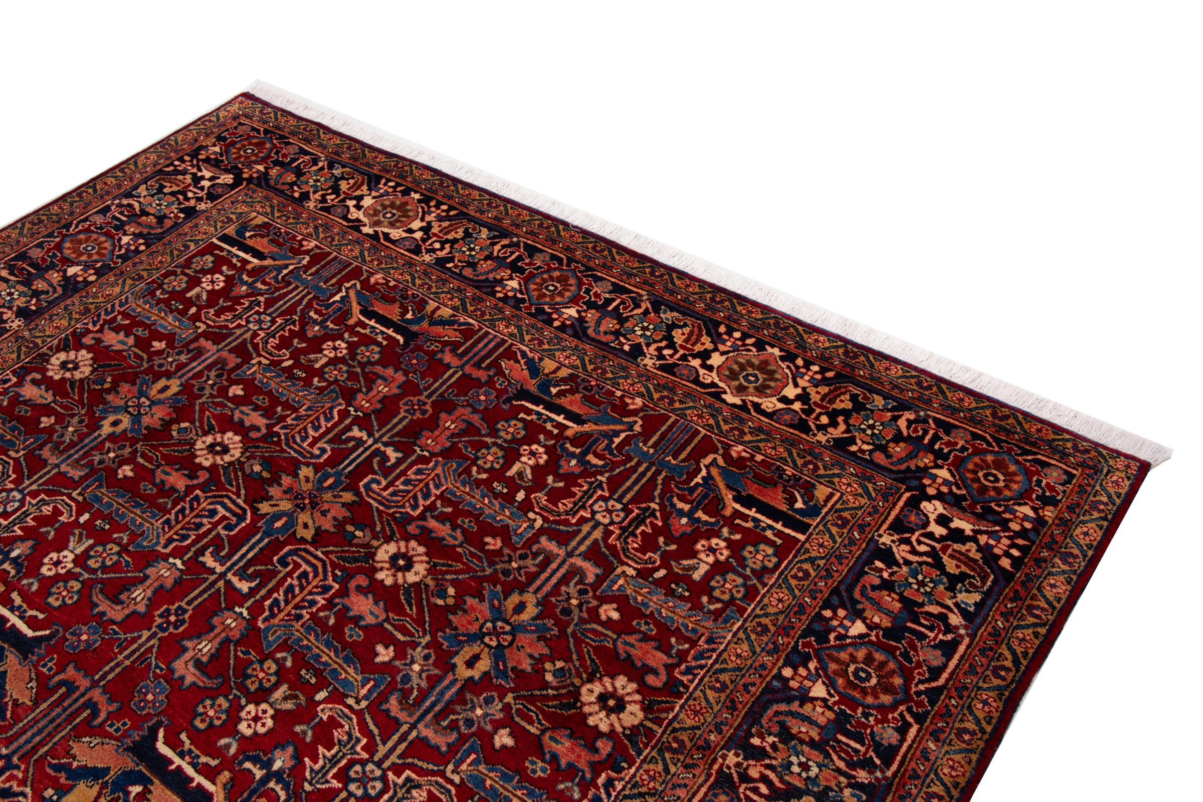 This Heriz carpet is a beautiful example of Persian carpet craftsmanship. Its rustic design is a testament to its durability. It was hand-knotted in the city of Heriz, which is located near Tabriz in north-west Iran. Anyone looking for a Persian rug that will give pleasure for a long time and is highly modern will love this Heriz. The ornaments of Heriz rugs are extremely popular today and are seen as very modern. You will never give up a rug like this again.