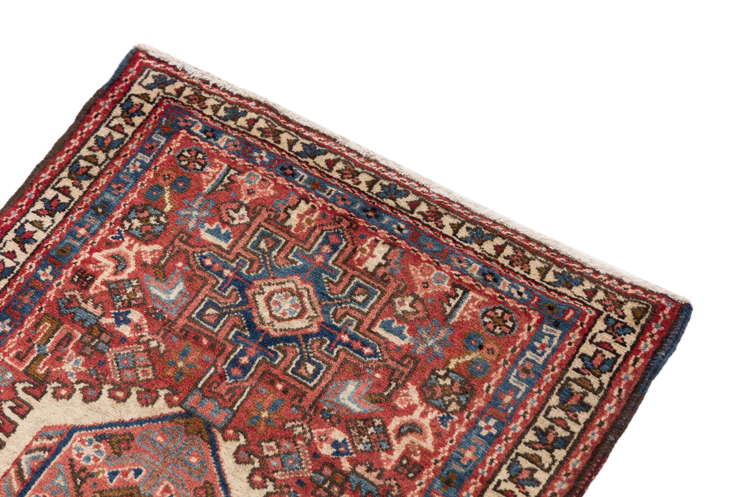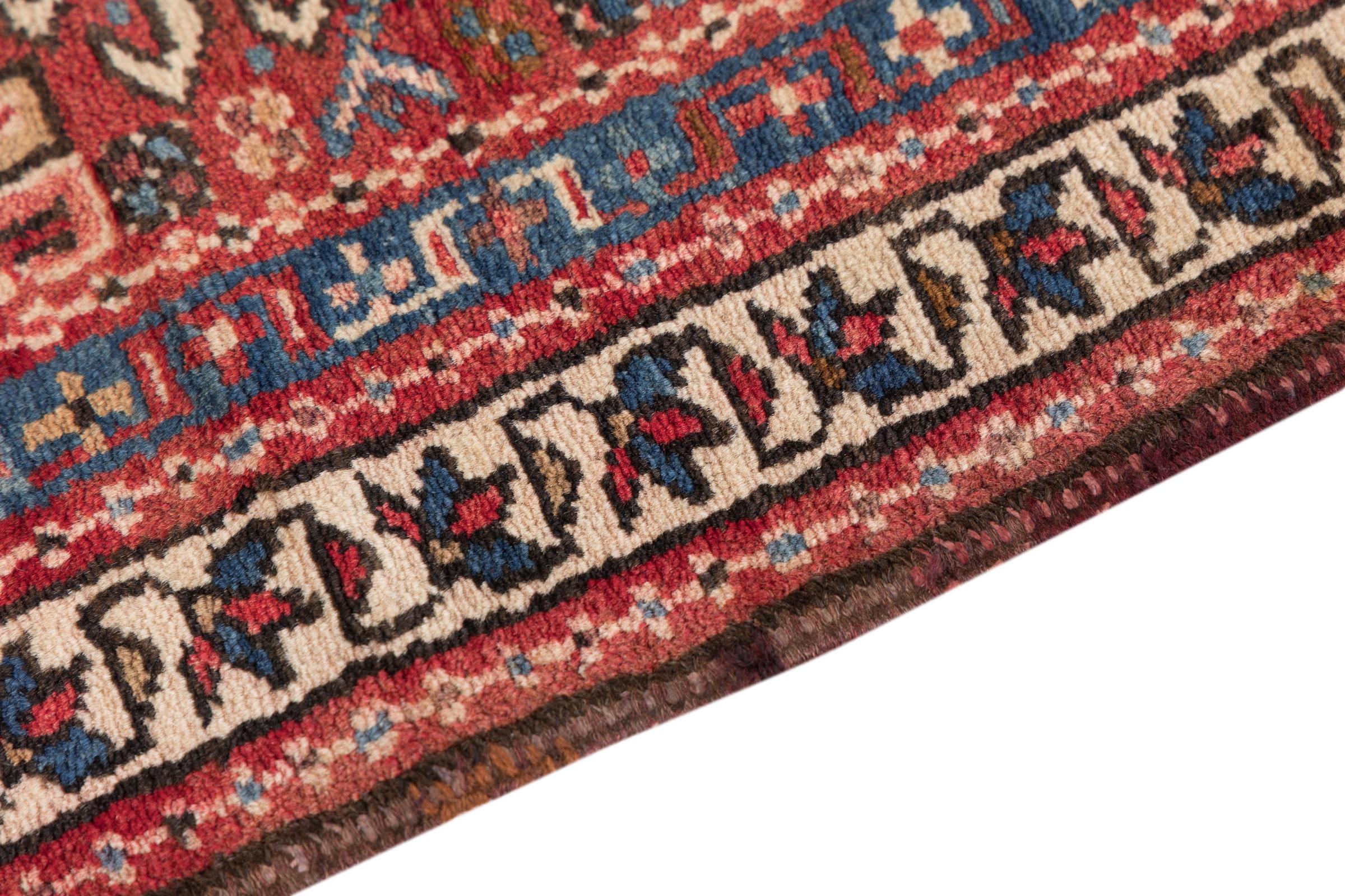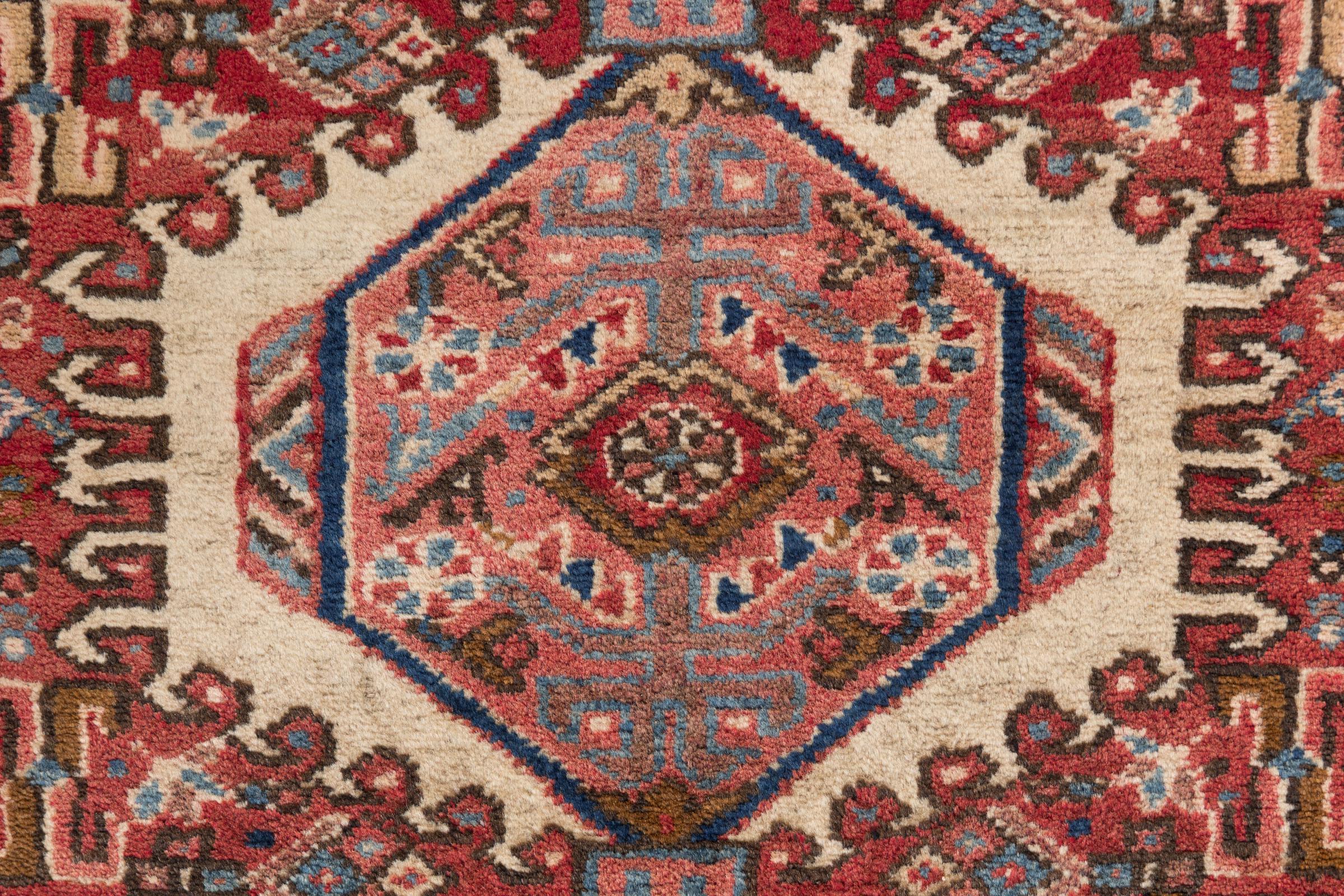 This Heriz carpet is a beautiful example of Persian carpet craftsmanship. Its rustic design is a testament to its durability. It was hand-knotted in the city of Heriz, which is located near Tabriz in north-west Iran. Anyone looking for a Persian rug that will give pleasure for a long time and is highly modern will love this Heriz. The ornaments of Heriz rugs are extremely popular today and are seen as very modern. You will never give up a rug like this again.